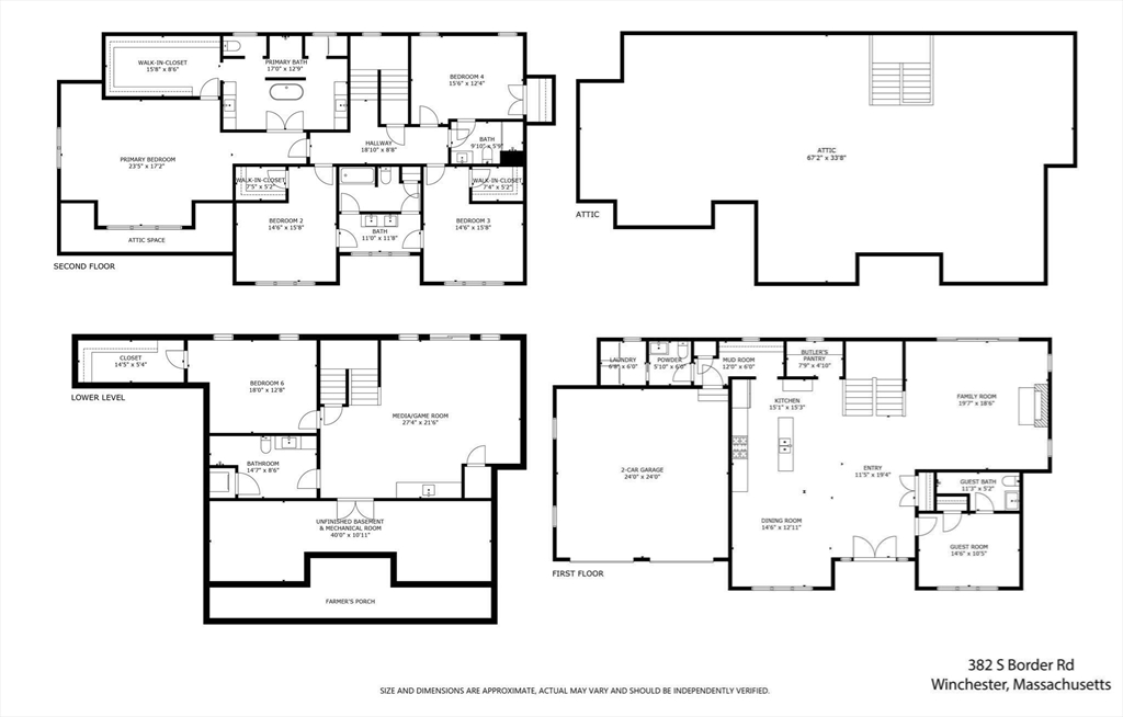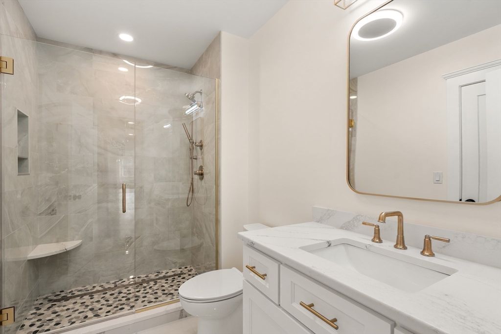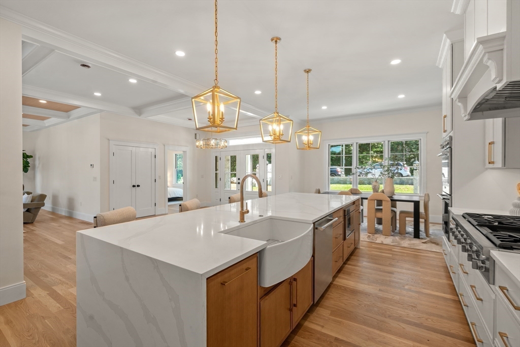 NEW HIGH-END CONSTRUCTION - 12 Rms - 6 BD's - 5.5 BA's You will be captivated by the grand entrance - attention to detail - high coffered 10' ceilings and excellent flow that leads you to the magnificent Open Floor Plan - custom-designed Kitchen which is the heart of this home. no expense was spared; custom Cabinets, Thermador appliances, oversized Center Island; Living Rm/Great Rm w/FP, Dining Rm, Butler Pantry, Mud Rm, Laundry, Powder Rm and Guest BD w/BA. The 2nd flr offers 4 BD's w/BA's, gorgeous Master Suite w/BA and Laundry, FP and custom-designed oversized Walk-in Closet. Finished Lower Level has spacious Family/Game Rm w/custom cabinets and Bar, Office/Exercise Rm and full BA - perfect space for a NANNY/IN-LAW SUITE. Professionally landscaped Yard, Patio - Deck - oversized 2-Car Garage - plenty of land for a pool; Enjoy Winchester amenities, minutes to Center, top-rated Schools, Fells Reservation, Parks, Restaurants, Shopping, Commuter Train, major routes - 8 miles to Boston.