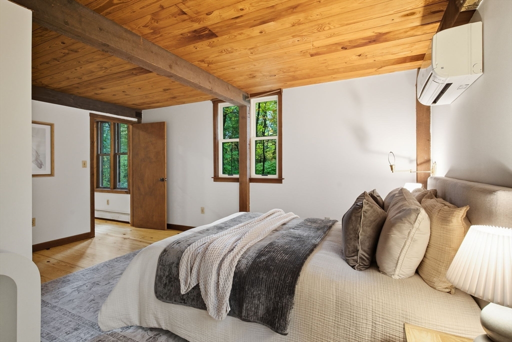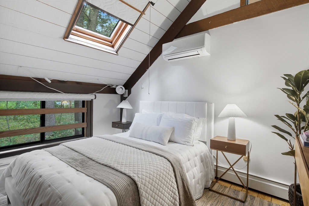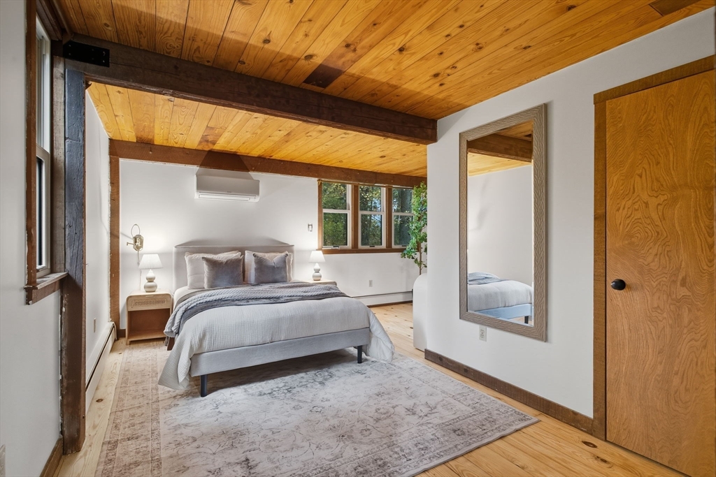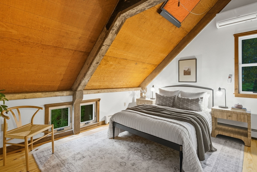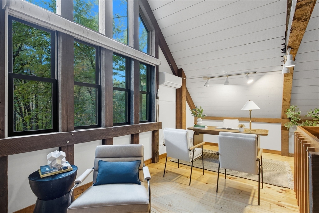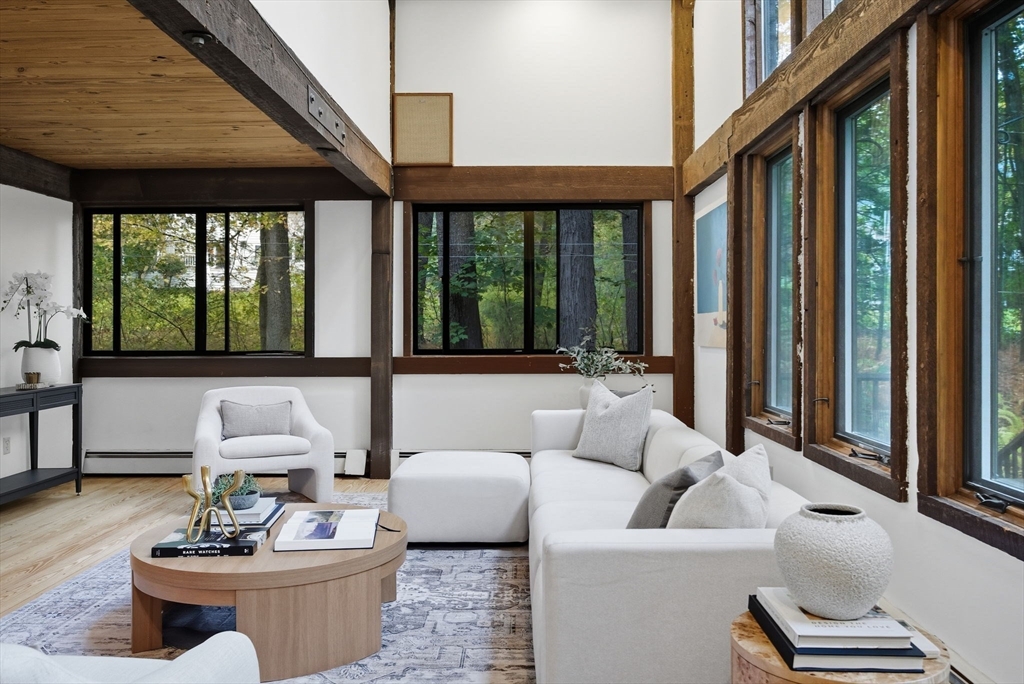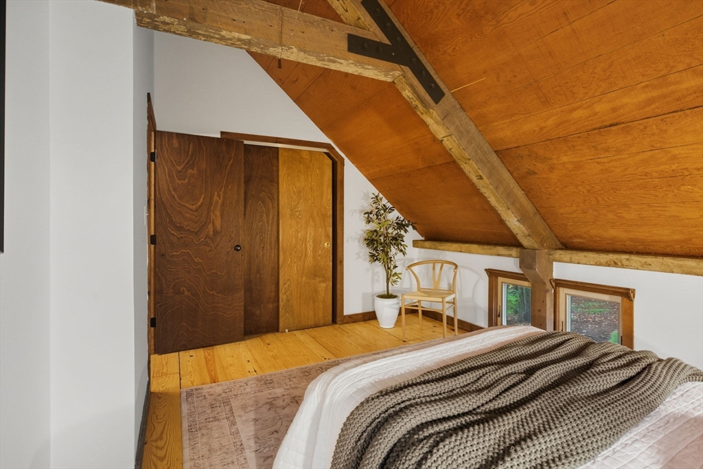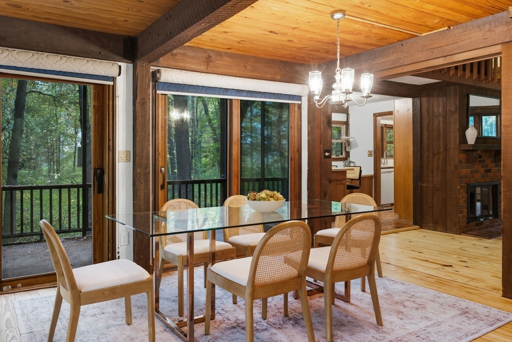 Truly a spectacular home in an incredible neighborhood at the end of a quiet dead-end street, surrounded by conservation land. This custom Yankee Barn Home showcases the timeless quality and craftsmanship the brand is known for; post and beam construction with the finest materials for durability, weather protection, and energy efficiency. Inside, soaring cathedral ceilings highlight the stunning living room with fireplace and dramatic loft above. The dining room opens to a screened porch and an expansive deck running the length of the home. A bright family room with a wall of windows overlooks the serene setting. The first-floor primary suite offers convenience and privacy, while there are four additional bedrooms upstairs, each feature charming nooks/lofts. Freshly painted throughout with refinished floors, newer heating system, and efficient mini splits providing air conditioning to every room, plus a spacious 2+ car garage complete this special property!