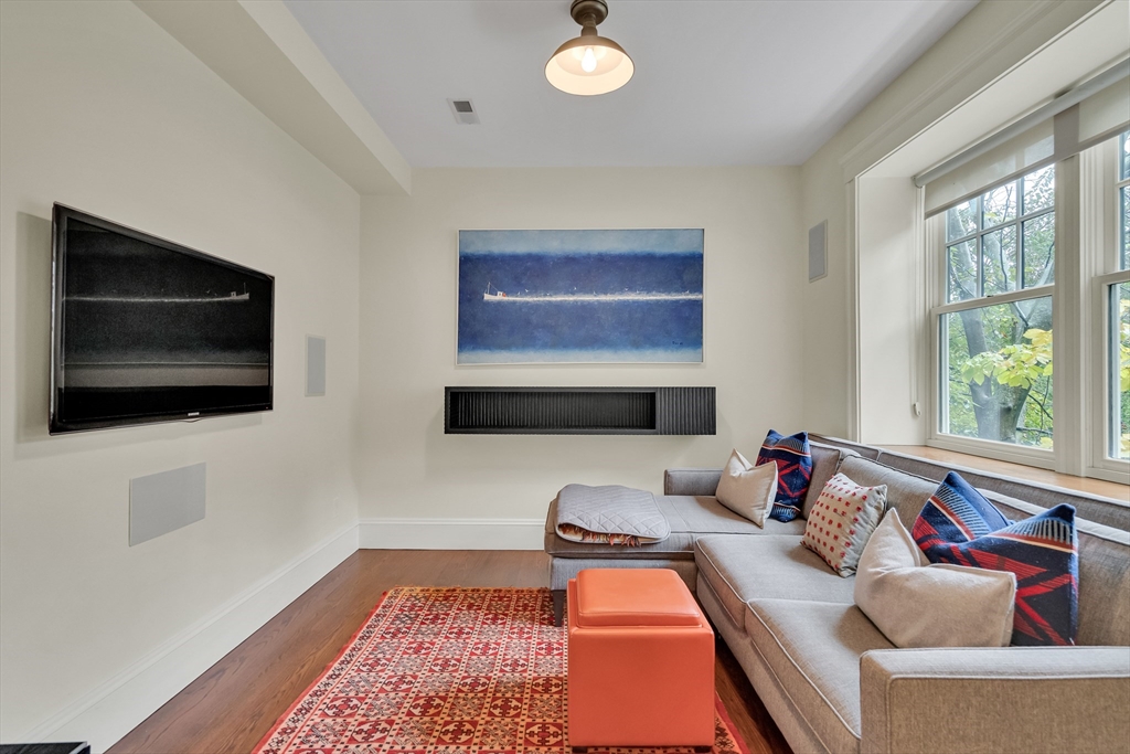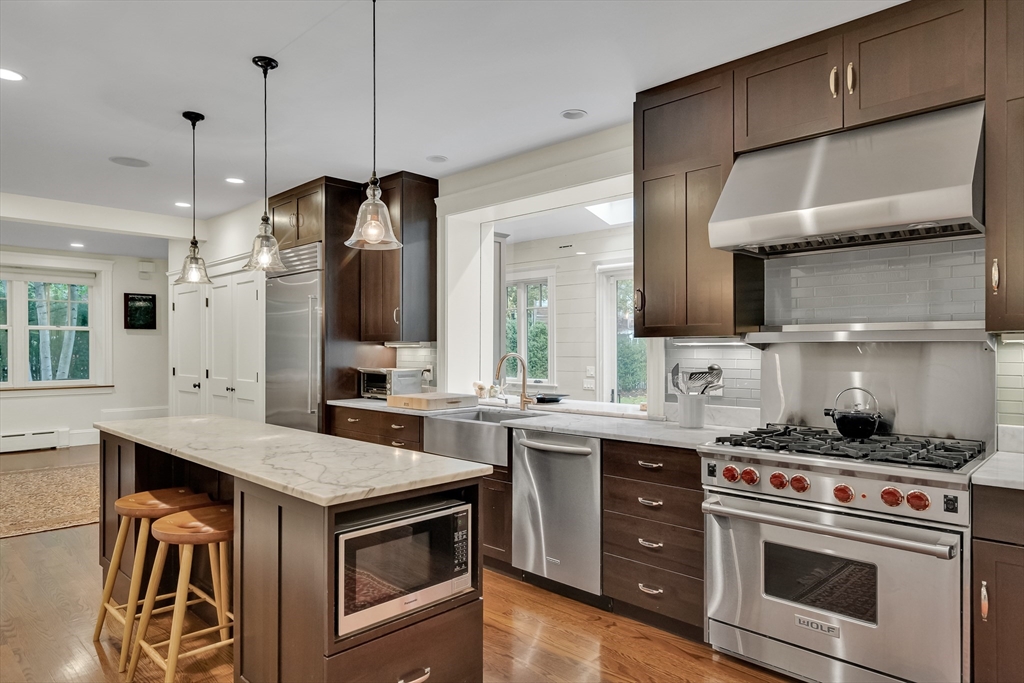 Discover a harmonious mix of style and practicality in this renovated Brookline residence set on a peaceful, tree-lined street. This unique home spans two floors, featuring four bedrooms and two bathrooms. The Chef’s Kitchen includes a subzero refrigerator, Wolf range, Carrara marble countertops, and a generous central island. A versatile sunroom boasts custom built-in storage and twin sub-zero wine fridges, leading directly to a professionally landscaped, irrigated double lot. The living room has a working wood-burning stove with soap stone inlay, and offers custom built-in shelving, cubbies, and storage throughout. The first floor showcases soaring 10-foot ceilings, while gleaming hardwood flooring extends across all living areas. Additional amenities include central air conditioning and two off-street parking spaces. Enjoy the vibrant lifestyle that Brookline provides—recently recognized as the "No.1 Place to Live for Quality of Life in the U.S." by Travel and Leisure.