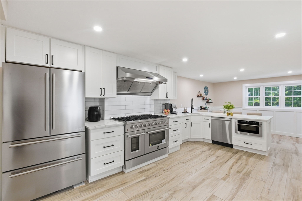Experience the perfect blend of historic charm and modern luxury in the heart of Bradford! This extensively renovated 4-bedroom, 2.5-bath townhouse-style condo offers over 2,400 sq. ft. of stunning living space across three levels, with no condo fee. The open-concept layout features an impressive chef-style kitchen with quartz counters, tiled backsplash, and a commercial-grade 8-burner Forno gas stove—perfect for those who love to cook and entertain. Enjoy beautiful, wide pine and hardwood floors, coffered & high ceilings, recessed lighting, and custom-tiled bathrooms with glass doors, air conditioning, and in-unit laundry. Step outside to a private fenced yard, or relax on the rear deck, with additional space in the basement for a workshop and storage. Located close to the commuter rail, downtown Haverhill, and with access to I-95 and I-495. With every detail thoughtfully designed, this Condo truly stands out as one of the finest condos on the market. See it for yourself today!