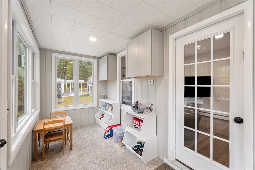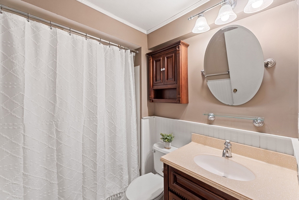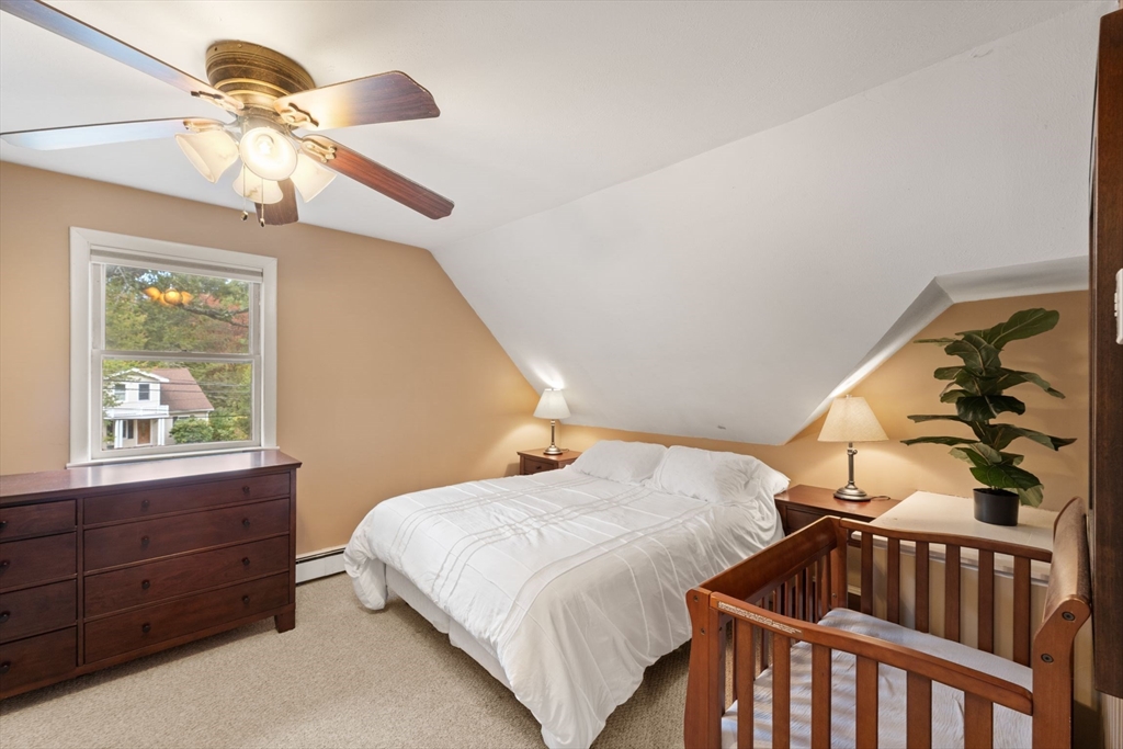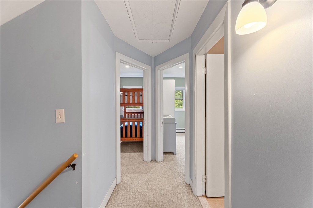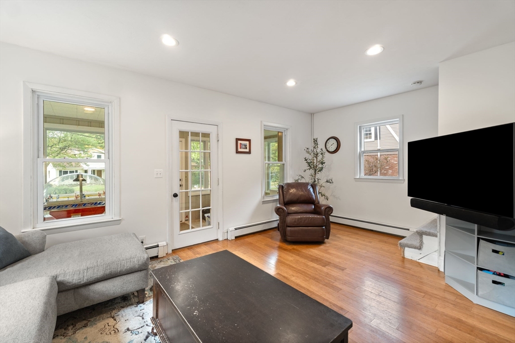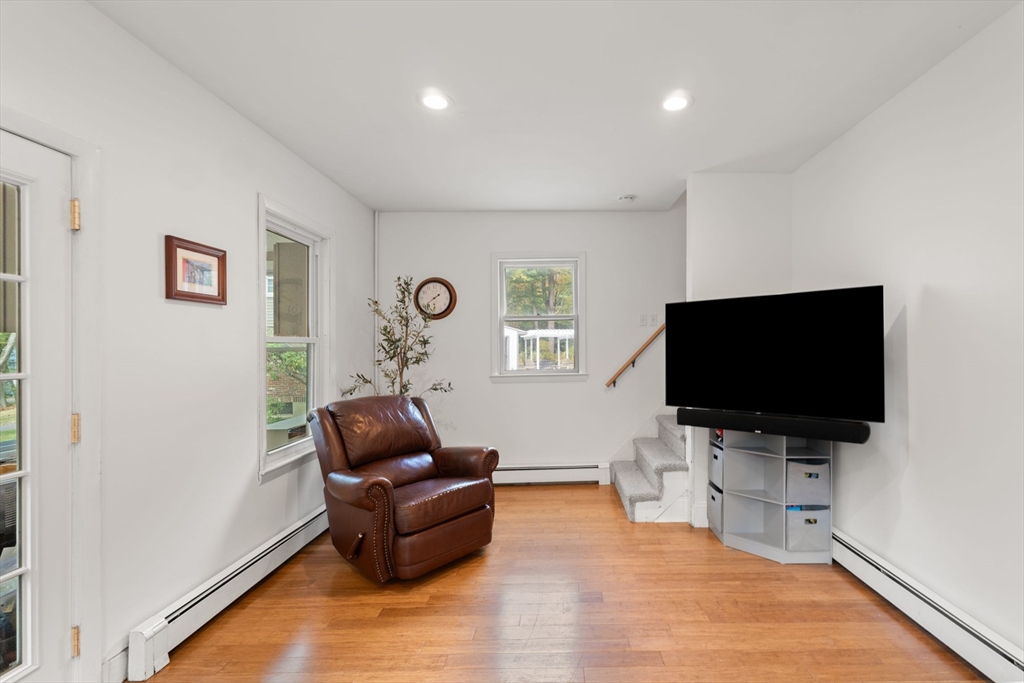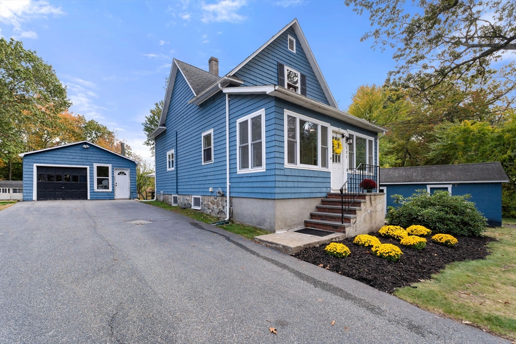 Charming 3 bedroom, 1.5 bathroom New England Colonial nestled on over 2 acres of land in the Montrose neighborhood. Step into a bright four-season sunroom that leads into a cozy and freshly painted open living room. The formal living room/dining room has hardwood floors, recessed lighting and a new mini split wall unit. The galley kitchen offers ample cabinet space, gas cooking, and a dishwasher. Off the mudroom is a half bathroom with ample closet space. On the second floor you'll find three bedrooms with great closet space and a full bathroom featuring a soaking tub/shower. Outside, enjoy a peaceful and private yard with a patio perfect for outdoor entertaining. The expansive backyard features a small pond—perfect for skipping rocks in the summer or skating in winter. Two separate garages and a large shed provide abundant storage. Certified lead free would make a perfect starter home or investment. Dolbeare School district, Lynnfield Marketplace and interstate 95 at your front door.