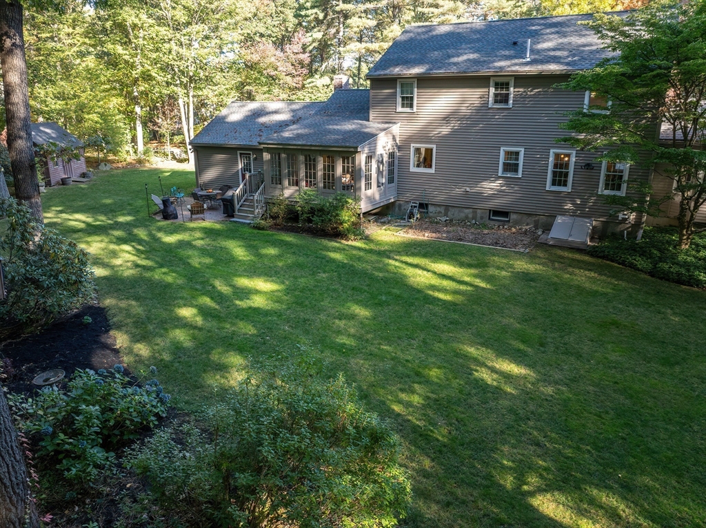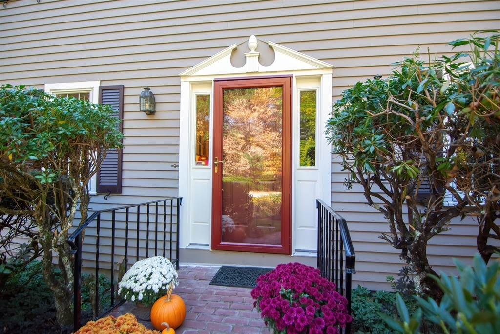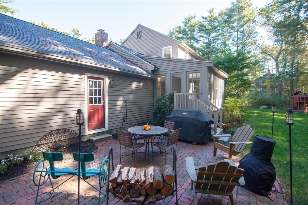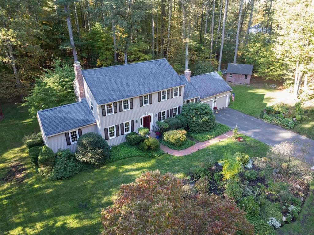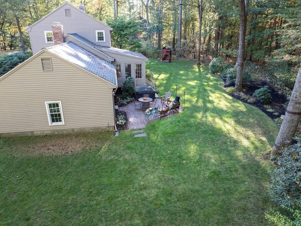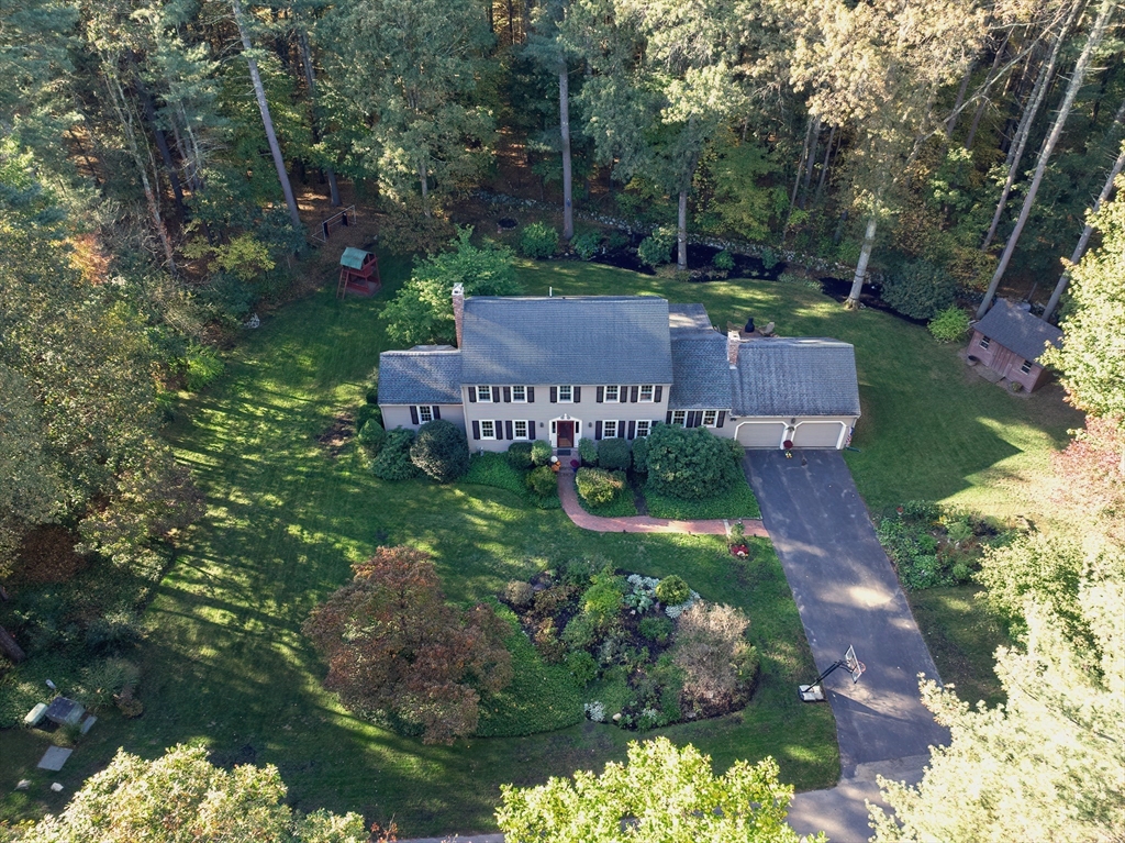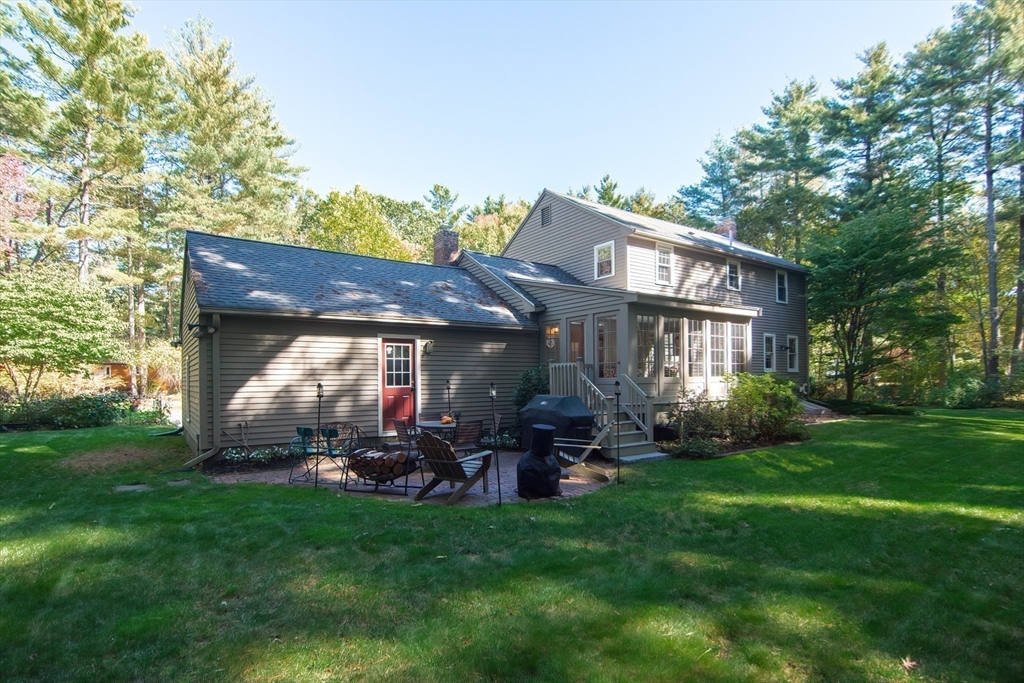 RARE FIND!!! This Classic Colonial is tucked away in a North Sudbury neighborhood cul-de-sac on the border of Concord. Relax in the beautifully landscaped level yard with stone walls, brick patio and lovely gardens that look out onto protected woods and nature. The interior features a traditional floor plan with an elegant office with cathedral ceilings, front to back fireplaced living room, formal dining room, eat-in kitchen, half bath and fireplaced family room which opens to a 3 season porch as well as a 2-car attached garage. The second floor boasts 4 bedrooms and 2 full bathrooms. The lower level has a spacious finished playroom. Close to schools, rail trail, quaint shops, restaurants, rich history and access to major routes and commuter rail.