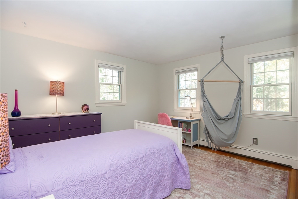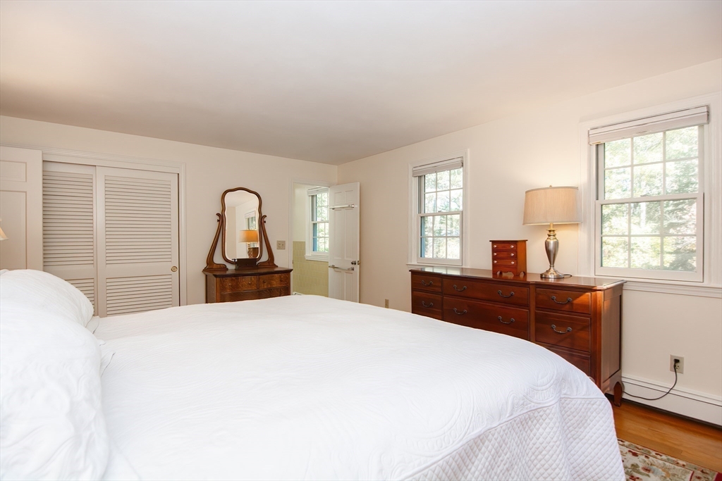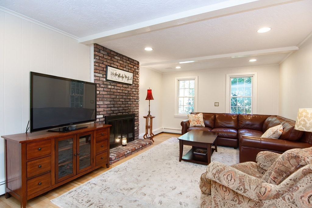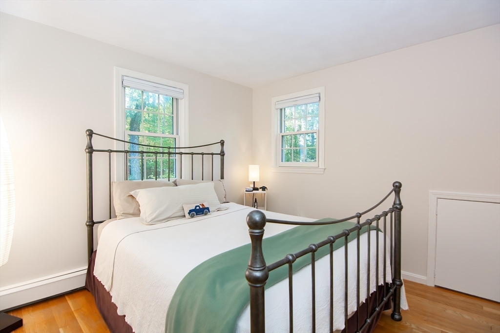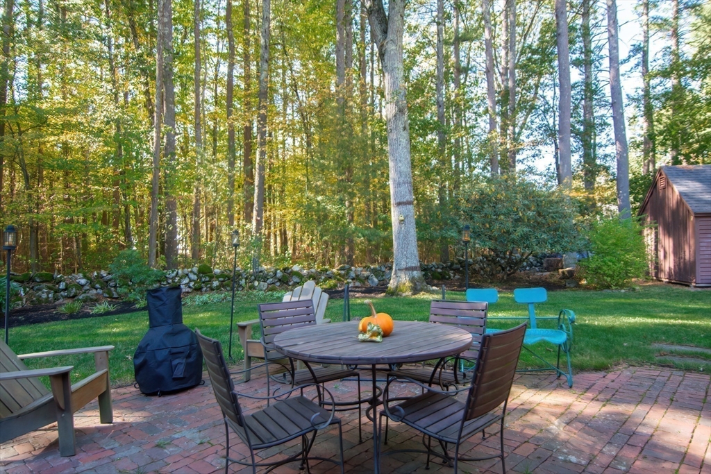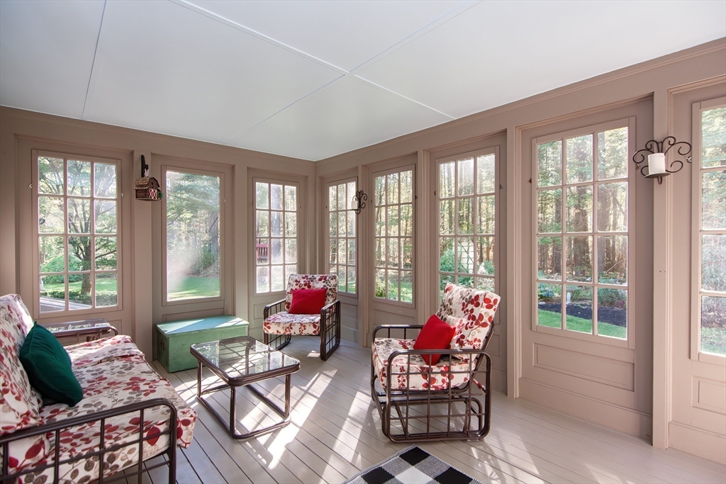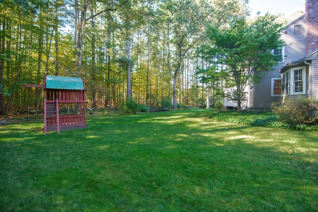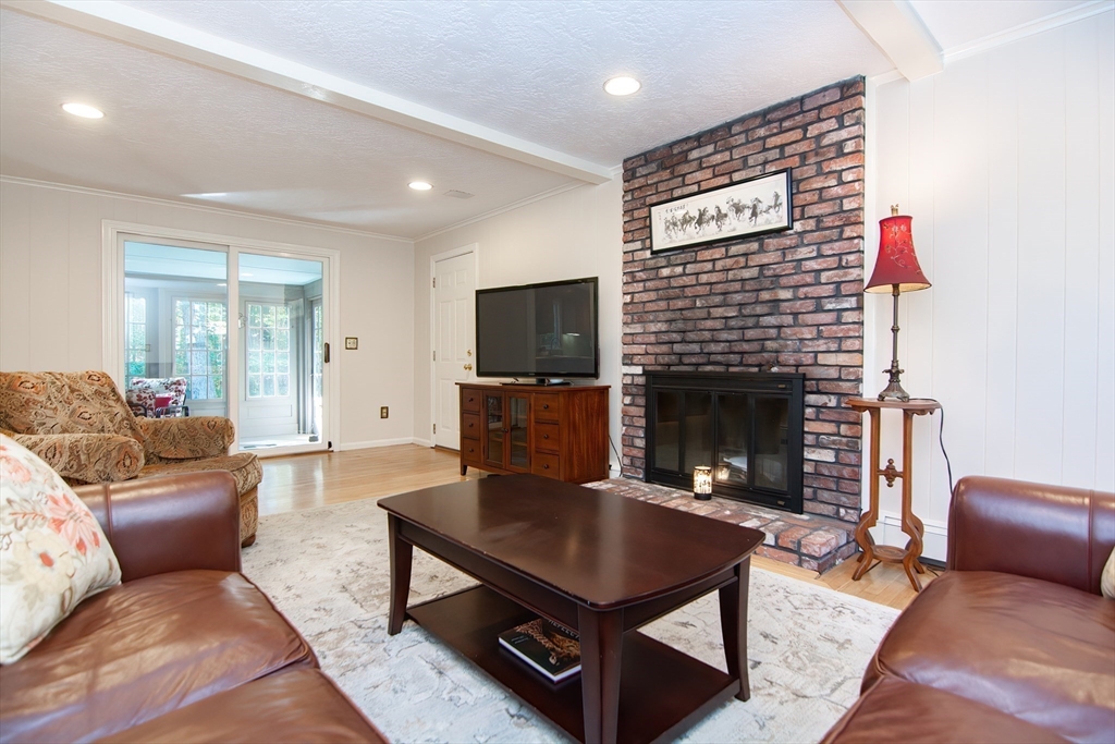 RARE FIND!!! This Classic Colonial is tucked away in a North Sudbury neighborhood cul-de-sac on the border of Concord. Relax in the beautifully landscaped level yard with stone walls, brick patio and lovely gardens that look out onto protected woods and nature. The interior features a traditional floor plan with an elegant office with cathedral ceilings, front to back fireplaced living room, formal dining room, eat-in kitchen, half bath and fireplaced family room which opens to a 3 season porch as well as a 2-car attached garage. The second floor boasts 4 bedrooms and 2 full bathrooms. The lower level has a spacious finished playroom. Close to schools, rail trail, quaint shops, restaurants, rich history and access to major routes and commuter rail.