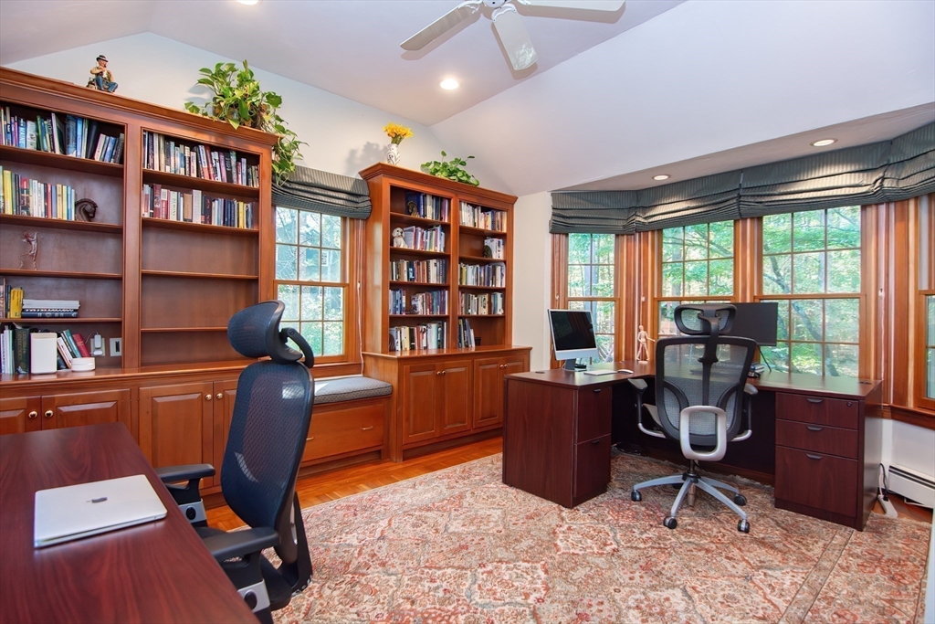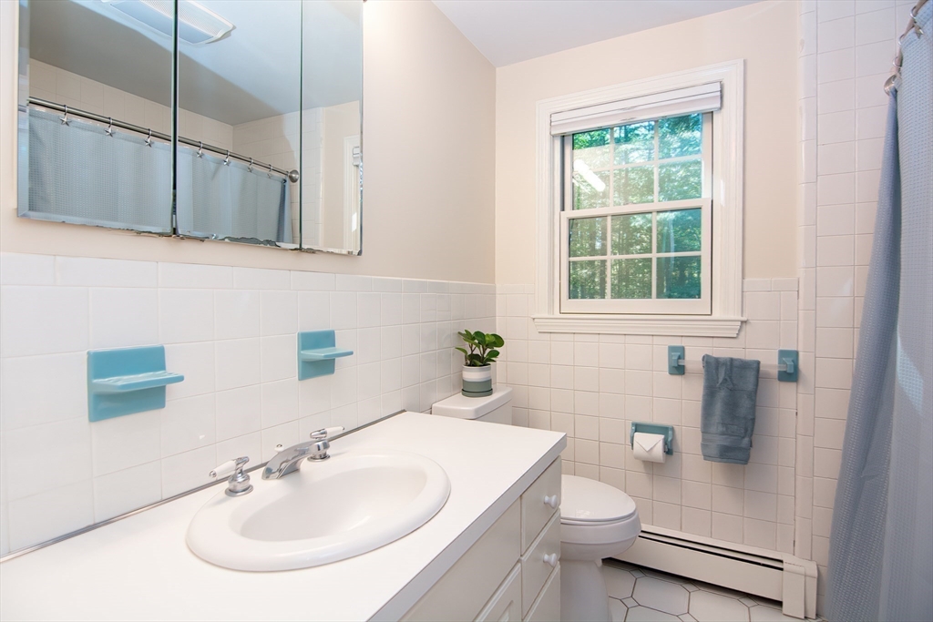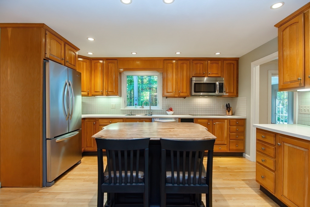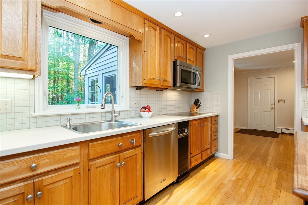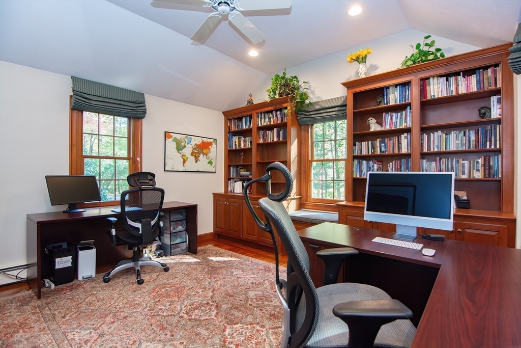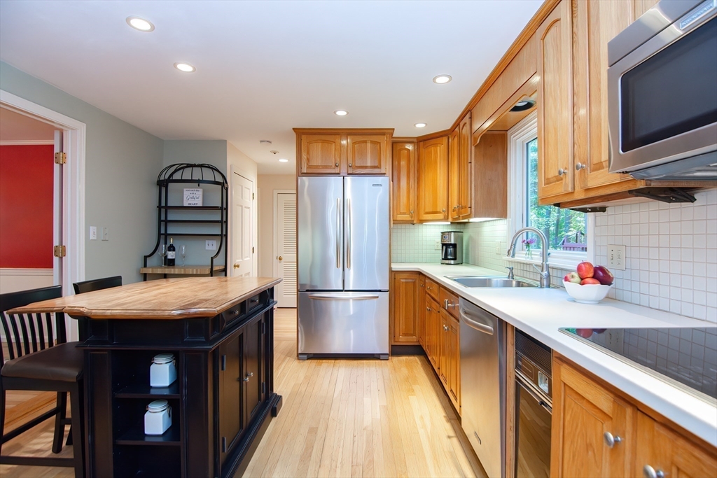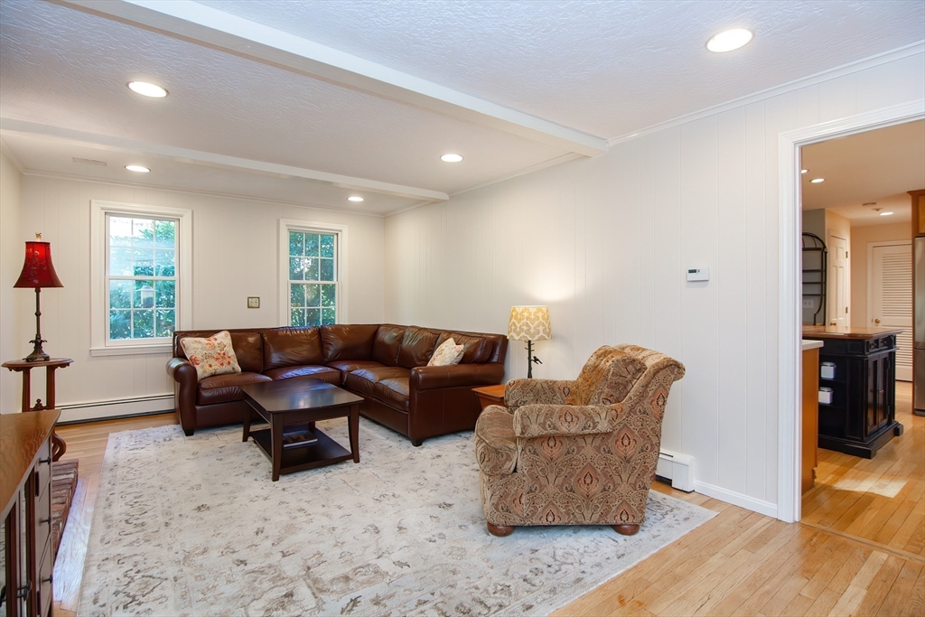 RARE FIND!!! This Classic Colonial is tucked away in a North Sudbury neighborhood cul-de-sac on the border of Concord. Relax in the beautifully landscaped level yard with stone walls, brick patio and lovely gardens that look out onto protected woods and nature. The interior features a traditional floor plan with an elegant office with cathedral ceilings, front to back fireplaced living room, formal dining room, eat-in kitchen, half bath and fireplaced family room which opens to a 3 season porch as well as a 2-car attached garage. The second floor boasts 4 bedrooms and 2 full bathrooms. The lower level has a spacious finished playroom. Close to schools, rail trail, quaint shops, restaurants, rich history and access to major routes and commuter rail.