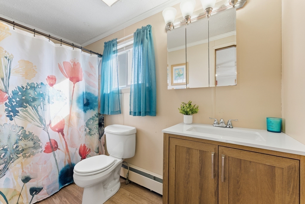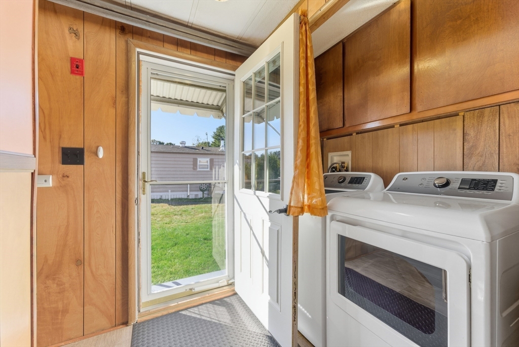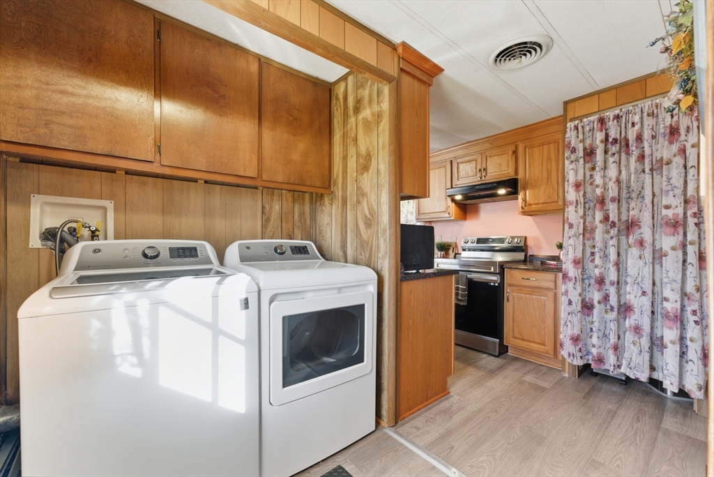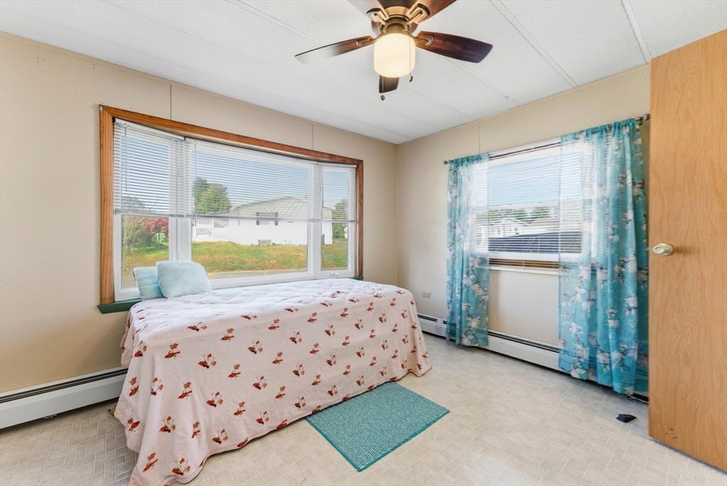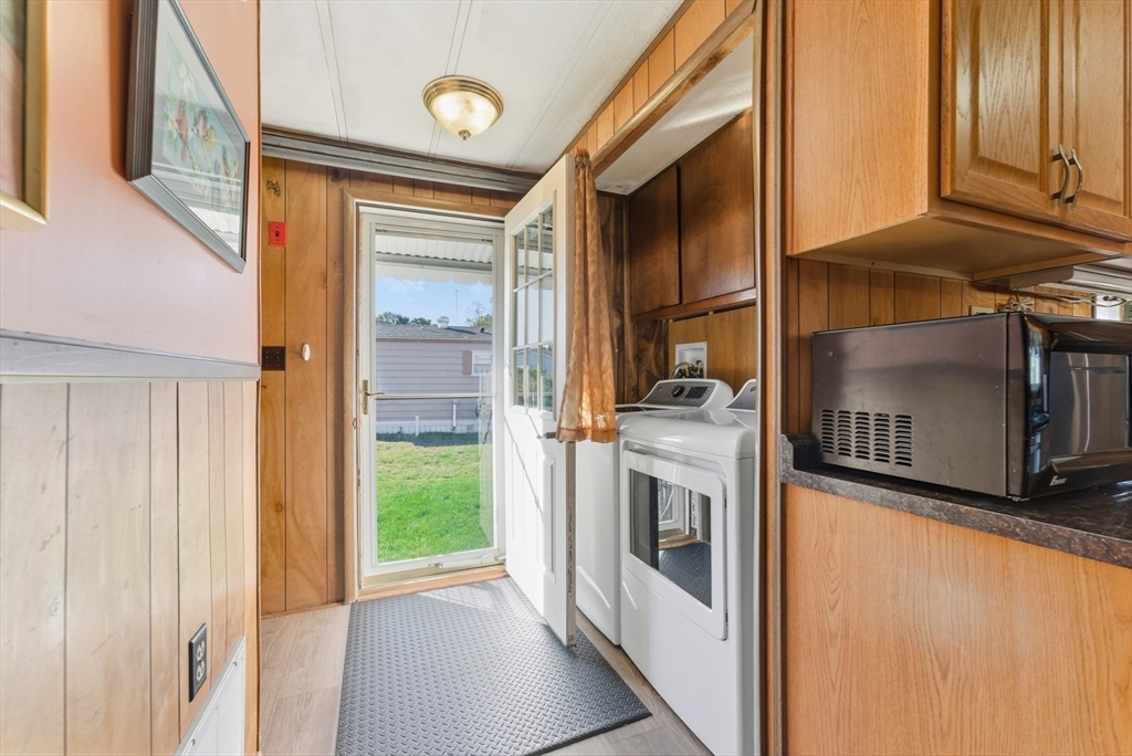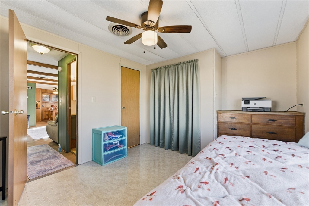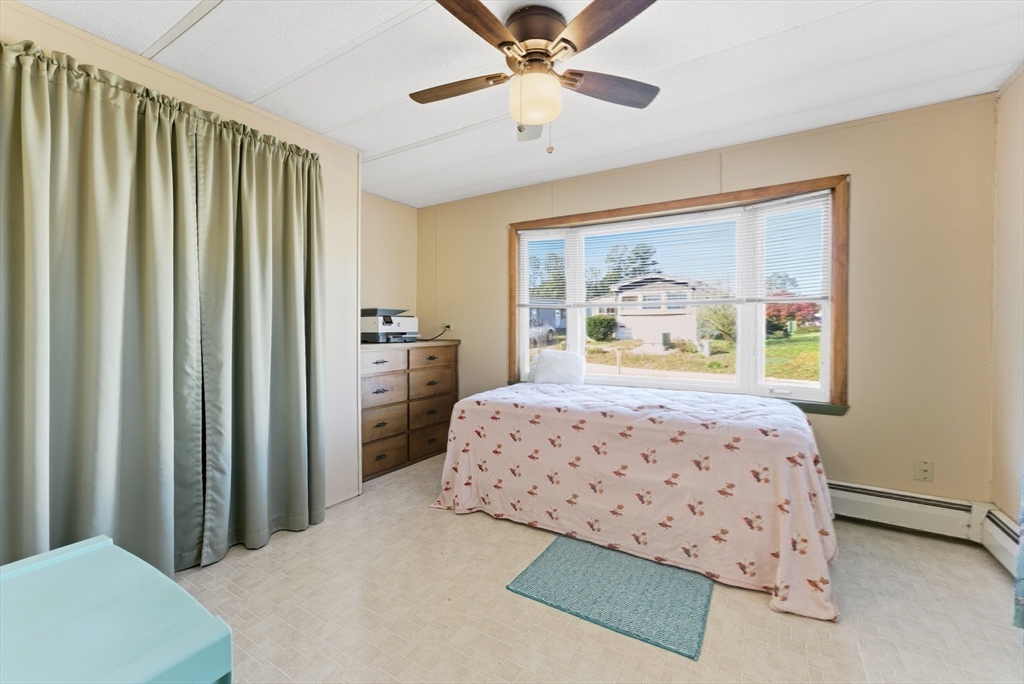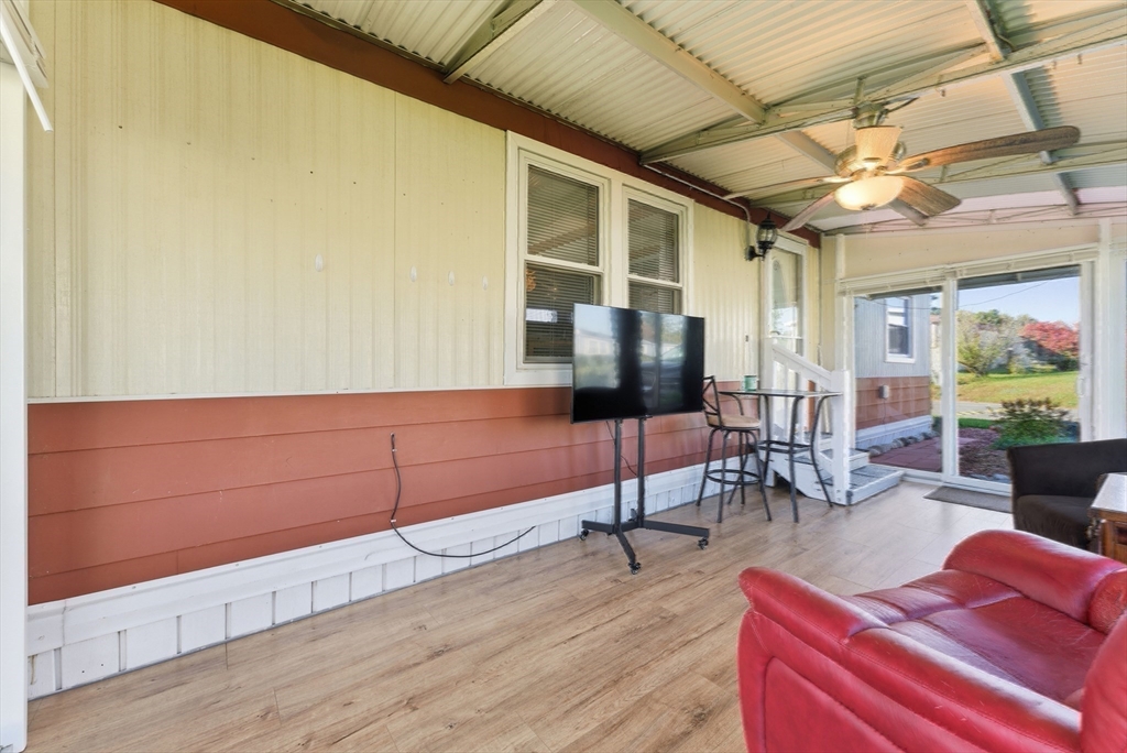 Easy living abounds! In sought after 55+ Hampden Village, this well maintained, single wide mobile home is ready for you to call it home! From the moment you arrive, the tasteful landscaping and lush green grass beckons you to come inside. Enter into a sunny 3 season porch and into this BEAUTIFUL home with so many updates. The spacious living room really shows off the cozy wood burning fireplace w/ so much natural light. The renovated kitchen has elegant stainless steel appliances, with tons of beautiful cabinetry. The kitchen free flows to the dining space with built in cabinets for even more storage! Each bedroom has ample space with new updated ceiling fans. Not one, but TWO full size baths complete this charming home. New stylish LVP floors throughout most of the home really modernize the space! Floors & subfloor replaced 2025, gas furnace 2018, central air 2022, appliances 2023, roof 2010, kitchen updated 2012, HW heater 2014, porch sliders 2022, and many newer windows!