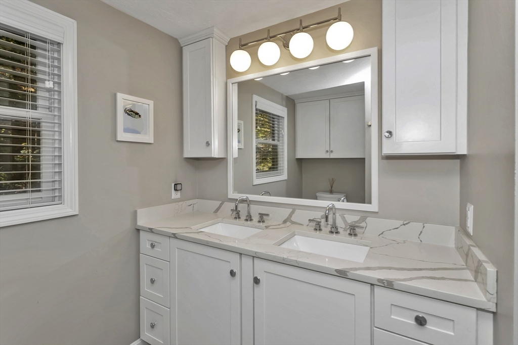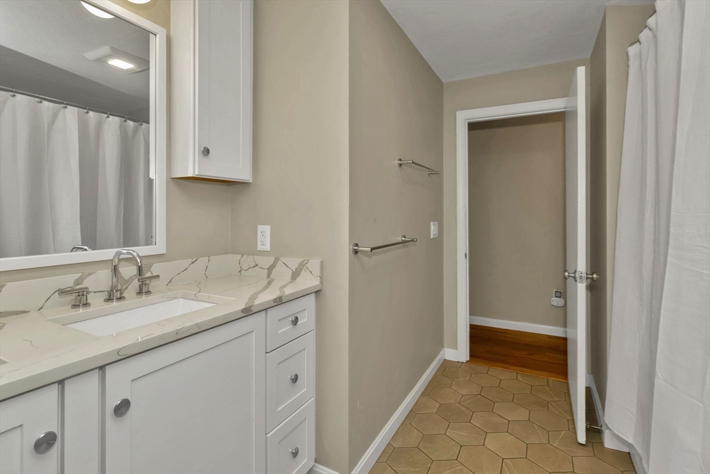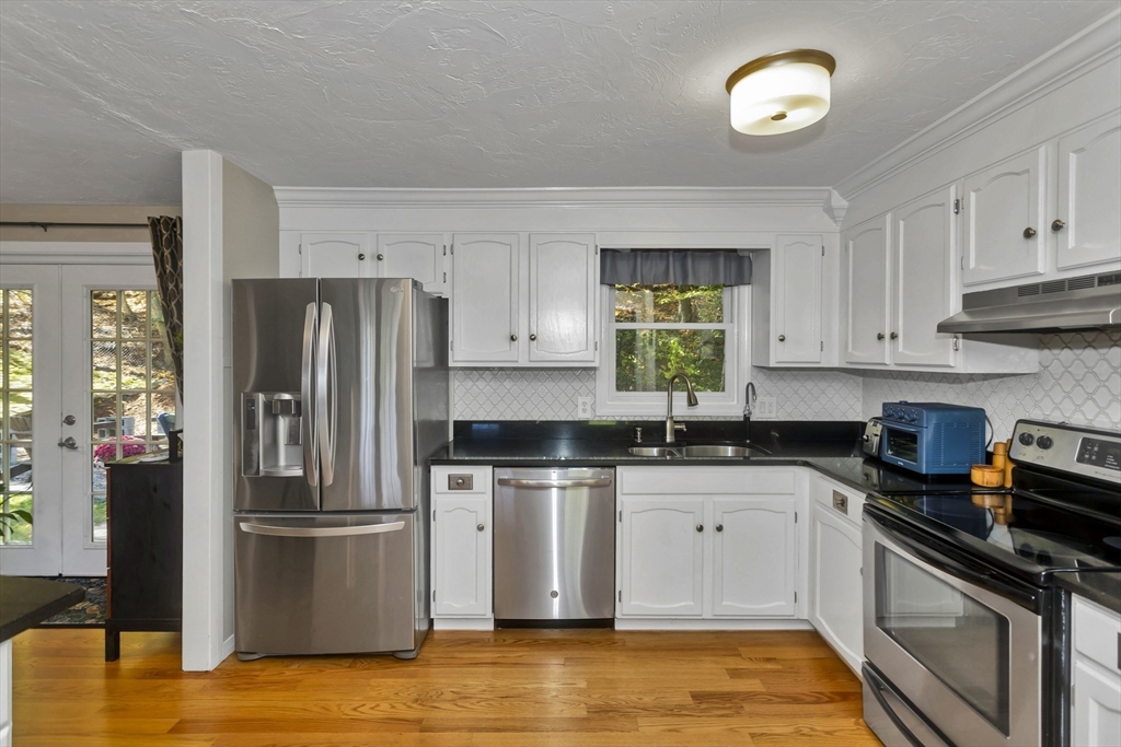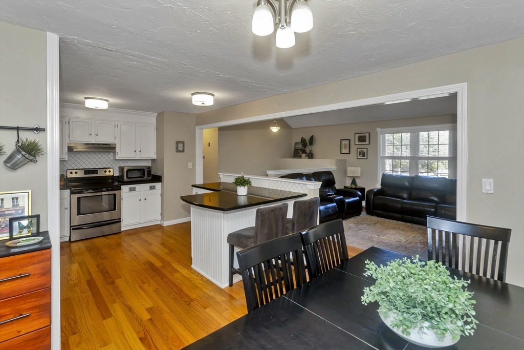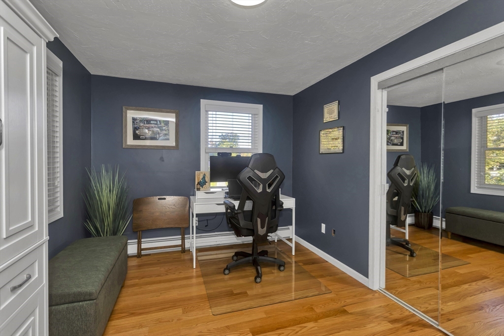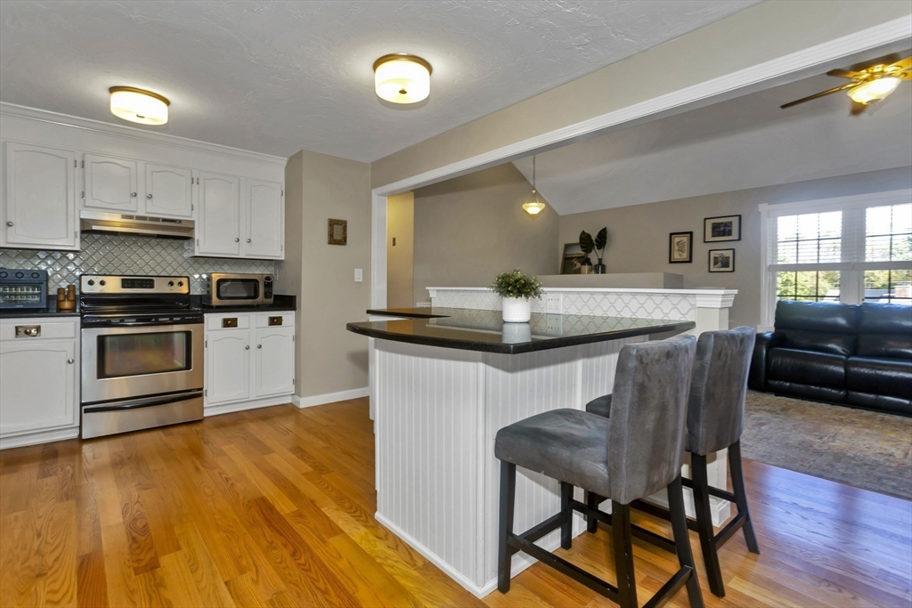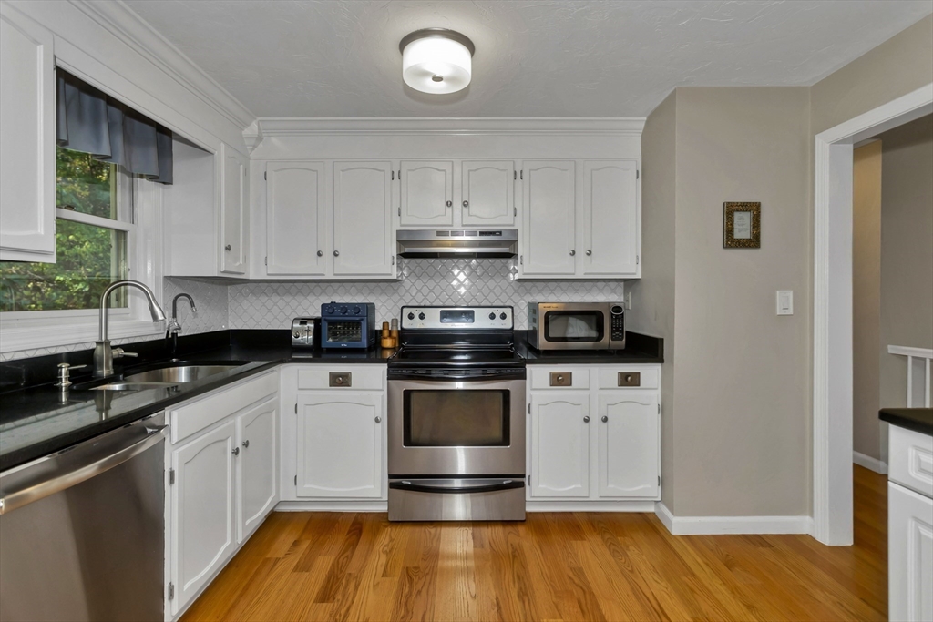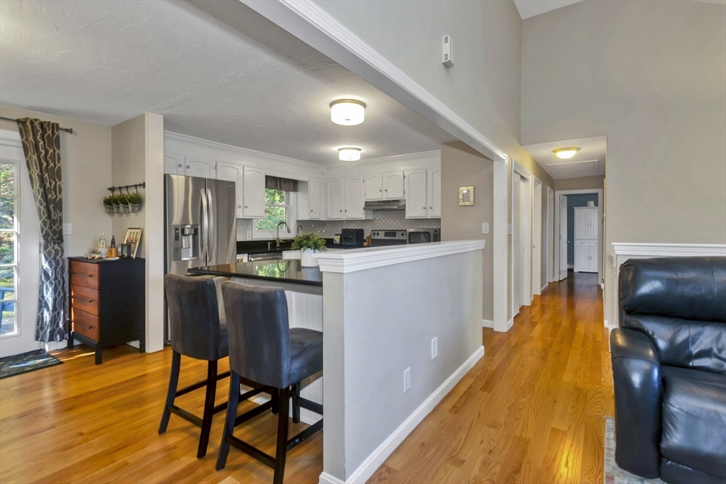 Discover the perfect blend of comfort and style in a home that welcomes you with a fresh and inviting atmosphere from the moment you step inside. The entire upper level has been updated with gleaming red oak hardwood floors that flow seamlessly through the kitchen and all three bedrooms. Relax in the cathedral ceiling family room featuring a cozy fireplace and open floor plan. The cabinet-packed kitchen boasts granite countertops, stainless steel appliances, and a spacious eat-in area. The 2022 renovated bath shines with quartz countertops, custom cabinetry, and a double vanity. Downstairs, a finished lower level offers a versatile space ideal for a home gym or movie nights, along with a bright home office featuring beautiful built-ins and an oversized laundry room. Outside, enjoy a fully fenced backyard with a firepit—perfect for entertaining. Situated on a quiet dead-end street, just minutes from the T, Mass Pike, and Tufts Grafton Campus. Don’t miss this one!
