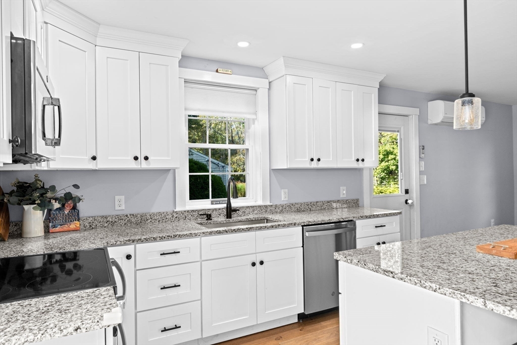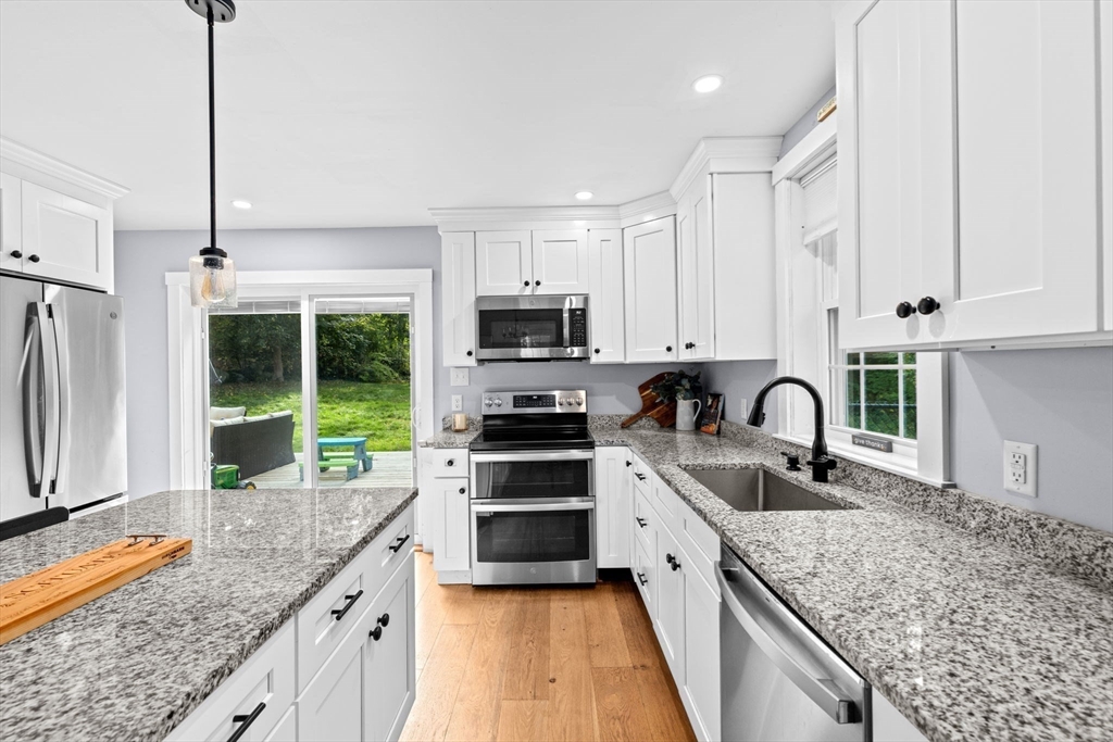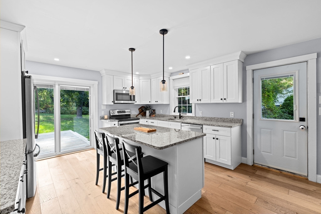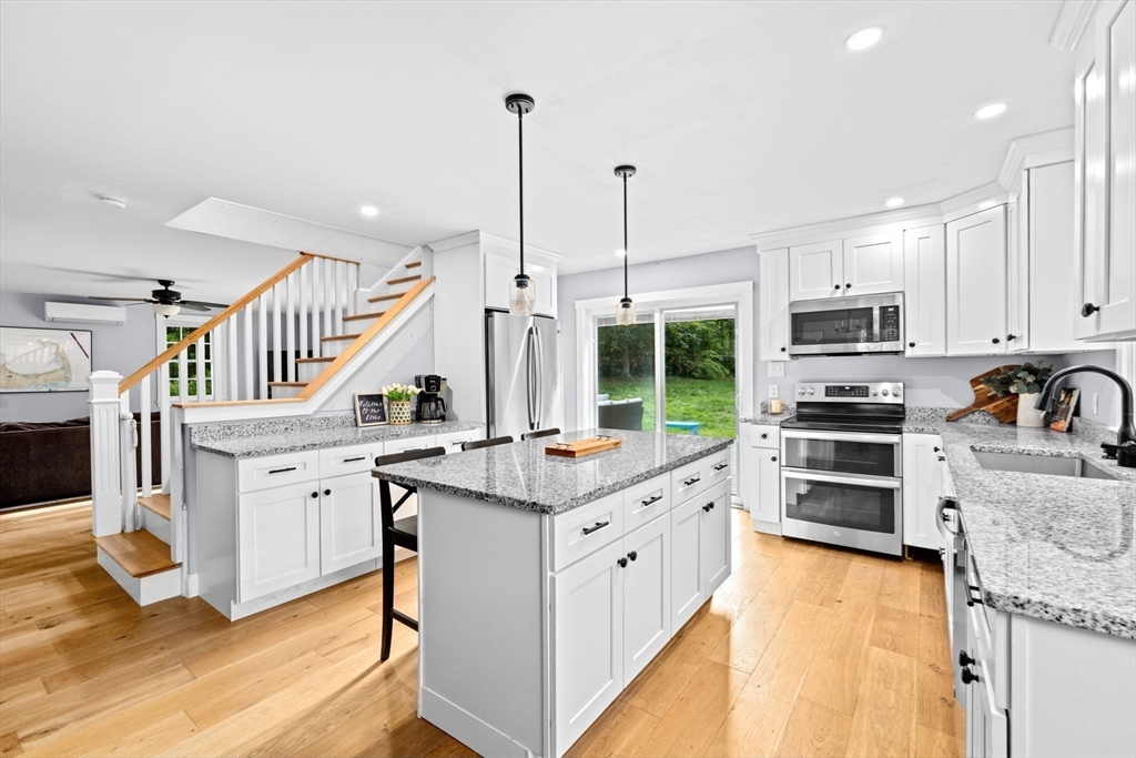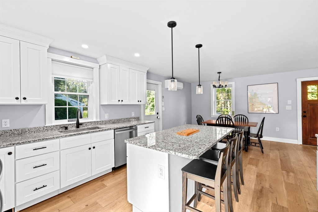 Tucked away on a quiet street just moments from Scituate’s town common, this beautifully renovated 3 bedroom, 2 bath Cape blends timeless New England charm with modern comfort. Completely reimagined with a 2nd floor addition in 2020, this home lives like new offering a thoughtfully designed layout, sun filled spaces, and stylish finishes. The 1st floor features gorgeous engineered hardwood floors, a crisp white kitchen with granite countertops, stainless steel appliances, and dining area perfect for everyday living or entertaining, along with a spacious family room. Upstairs, you’ll find three generous bedrooms with great closet space and a full bath. Outside, enjoy the peaceful setting with fenced yard and newly finished deck, ideal for relaxing or hosting friends/family. Electric in shed, home wired for generator. Just a few finishing touches remain to make this lovely home complete. Welcome to Scituate!