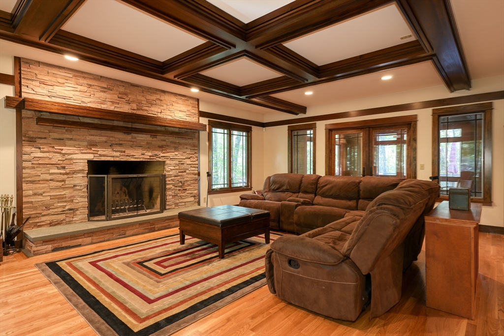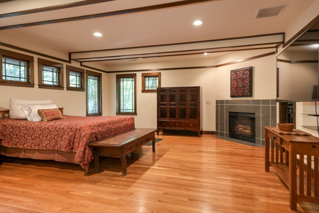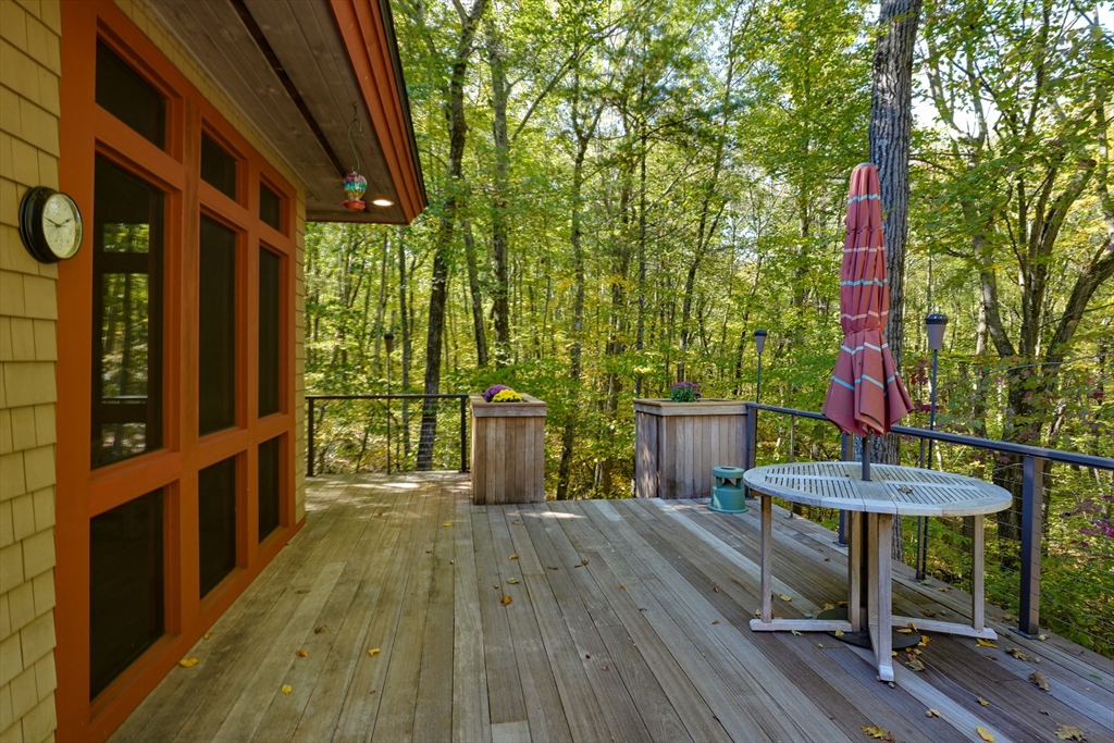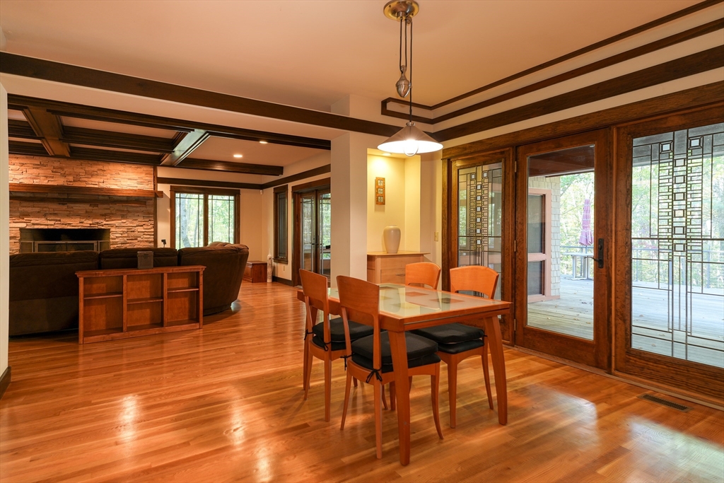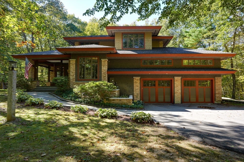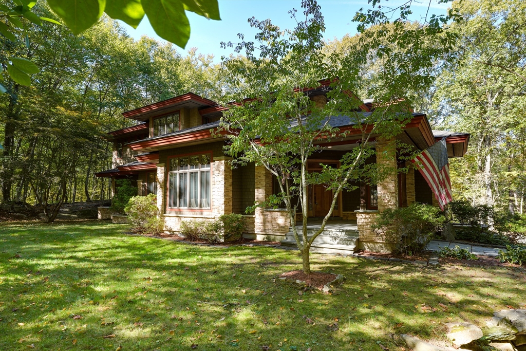 Frank Lloyd Wright inspired home on 12 Private Acres. Experience architecural elegance and natural harmony in this stunning 3 bedroom Frank Lloyd replica home. Every detail reflects Wrights signature design philosophy-clean lines, organic flow.Step inside to find pristine hardwood floors, a spacious family room anchored by a striking fireplace, and expansive windows that flood the home with natural light and frame peaceful woodland views. The chefs kitchen features a large center island. The primary suite offers a luxurious retreat with a jacuzzi tub and double headed shower. A bright airy 3 season room extends your living space, overlooking the mahogany deck and flower boxes, invites you to enjoy your morning coffee. Outside the properties thoughtfully designed landscape includes a bocce ball court, and endless oportunities to enjoy the tranquility of nature. This home blends timeless architecture, modern comfort and the serenity of country living and easy access to major routes.