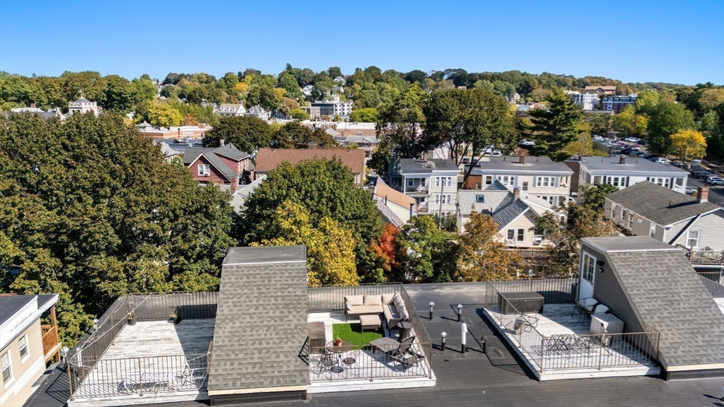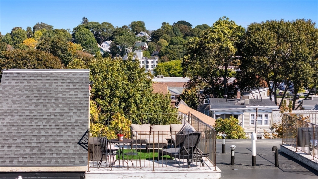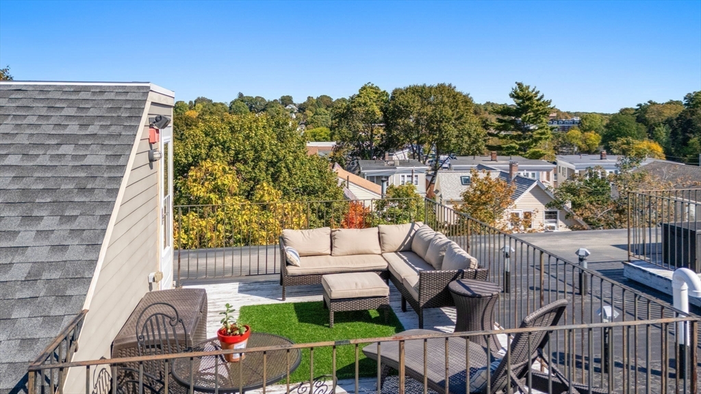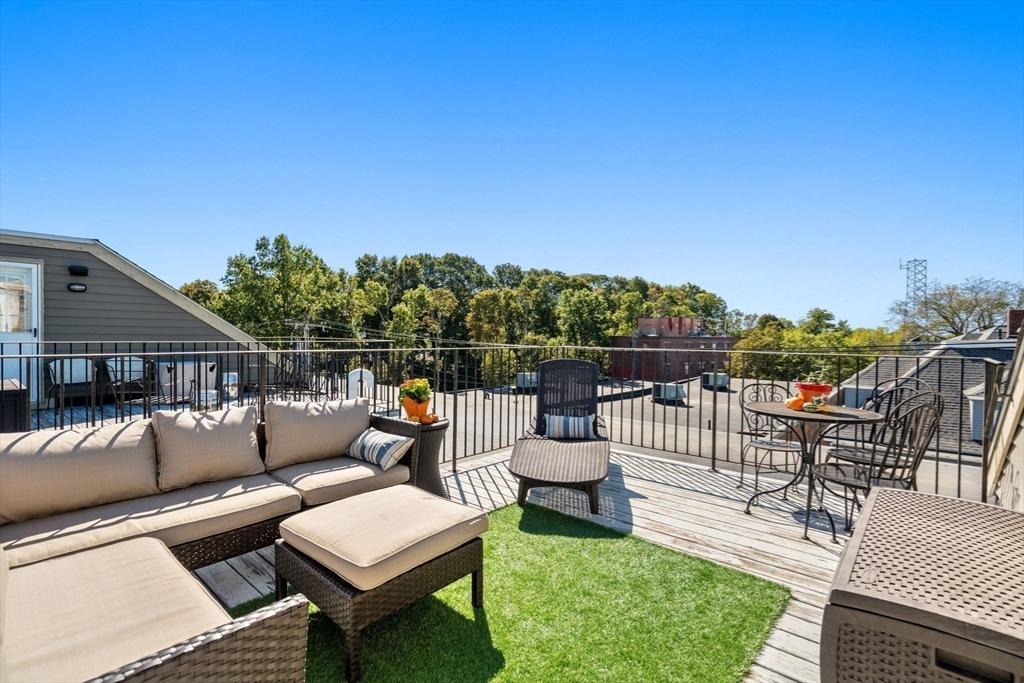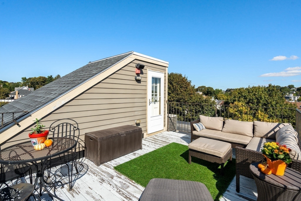 This stunning top-floor townhouse offers nearly 1,500 square feet of living space spread across three thoughtfully designed levels. Featuring three spacious bedrooms and two beautifully updated bathrooms, the home blends style, comfort, and functionality in every detail. The open-concept main level is perfect for entertaining, with a bright and airy living area that flows seamlessly into the modern kitchen and dining space. Upstairs, retreat to the serene primary suite, complete with ample closet space and a sleek en-suite bath. The crown jewel of this home is the expansive private roof deck—a rare find and an ideal spot for hosting friends, relaxing under the stars, or enjoying your morning coffee in peace. Additional perks include off-street parking, in-unit laundry, and central air for year-round comfort. Located in the heart of West Roxbury, you’ll be just moments from popular shops, restaurants, parks, and the commuter rail—offering easy access to the city with neighborhood charm.