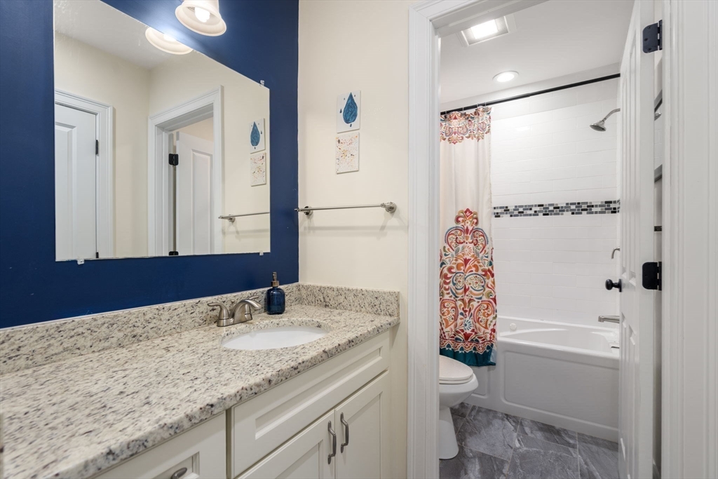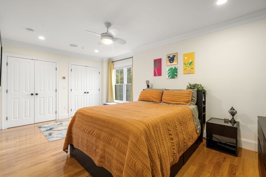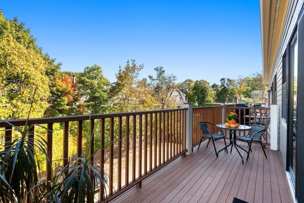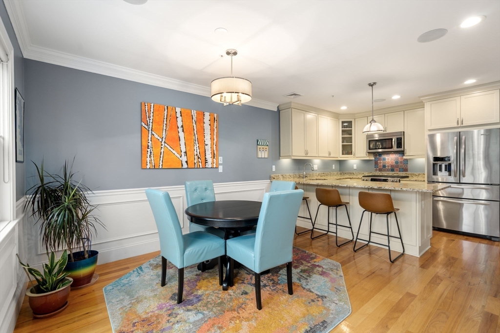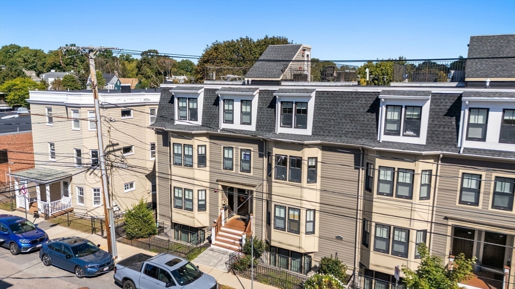 This stunning top-floor townhouse offers nearly 1,500 square feet of living space spread across three thoughtfully designed levels. Featuring three spacious bedrooms and two beautifully updated bathrooms, the home blends style, comfort, and functionality in every detail. The open-concept main level is perfect for entertaining, with a bright and airy living area that flows seamlessly into the modern kitchen and dining space. Upstairs, retreat to the serene primary suite, complete with ample closet space and a sleek en-suite bath. The crown jewel of this home is the expansive private roof deck—a rare find and an ideal spot for hosting friends, relaxing under the stars, or enjoying your morning coffee in peace. Additional perks include off-street parking, in-unit laundry, and central air for year-round comfort. Located in the heart of West Roxbury, you’ll be just moments from popular shops, restaurants, parks, and the commuter rail—offering easy access to the city with neighborhood charm.