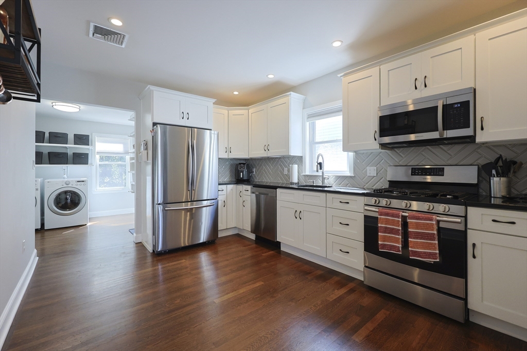 Luxury meets comfort in this beautifully finished second floor, townhouse style condo, perfectly situated on a quiet, side street just outside Roslindale Village. Step inside to find a bright, open layout enhanced by hardwood floors, white shaker cabinetry, and granite countertops accented by a sleek mosaic glass tile backsplash. The kitchen’s gas range and modern finishes create an ideal space for both cooking and entertaining. Three spacious bedrooms offer flexibility for guests or a home office, while the guest bath features a tiled shower surround and the main bathroom offers a full tub with tile surround for a spa-like feel. Enjoy the convenience of in unit washer and dryer connections and the comfort of quality craftsmanship throughout. Relax outdoors on the private rear deck overlooking the fenced-in yard, perfect for morning coffee or evening unwinding. Just moments from Roslindale Village’s shops, restaurants, commuter rail, and parks! Schedule your showing today!