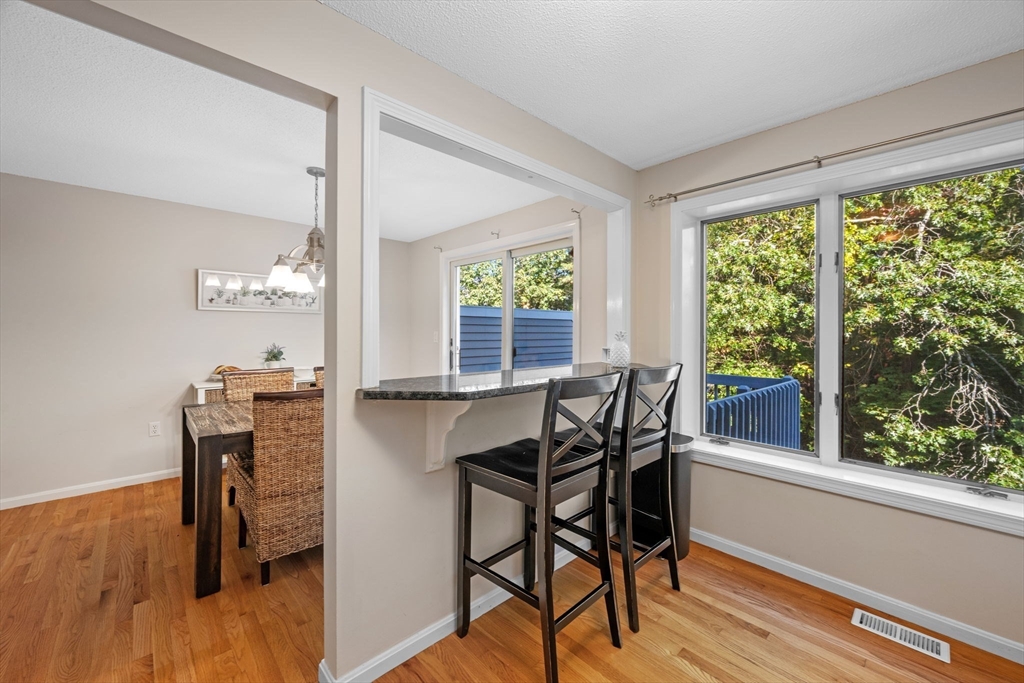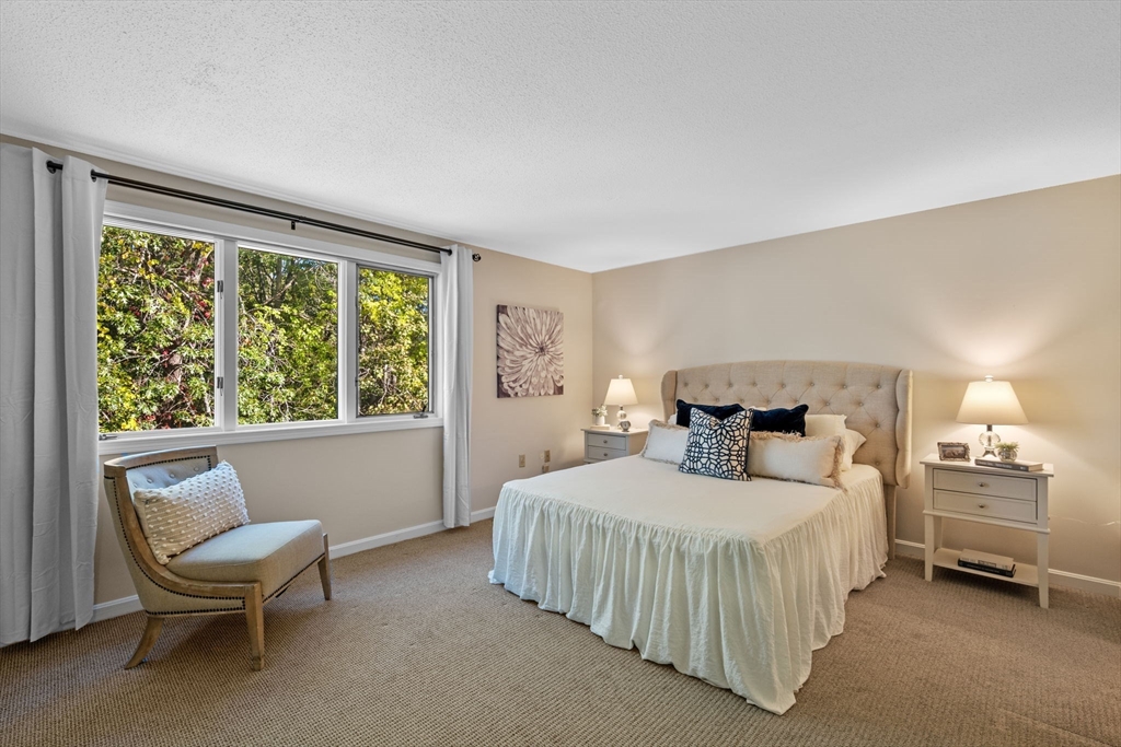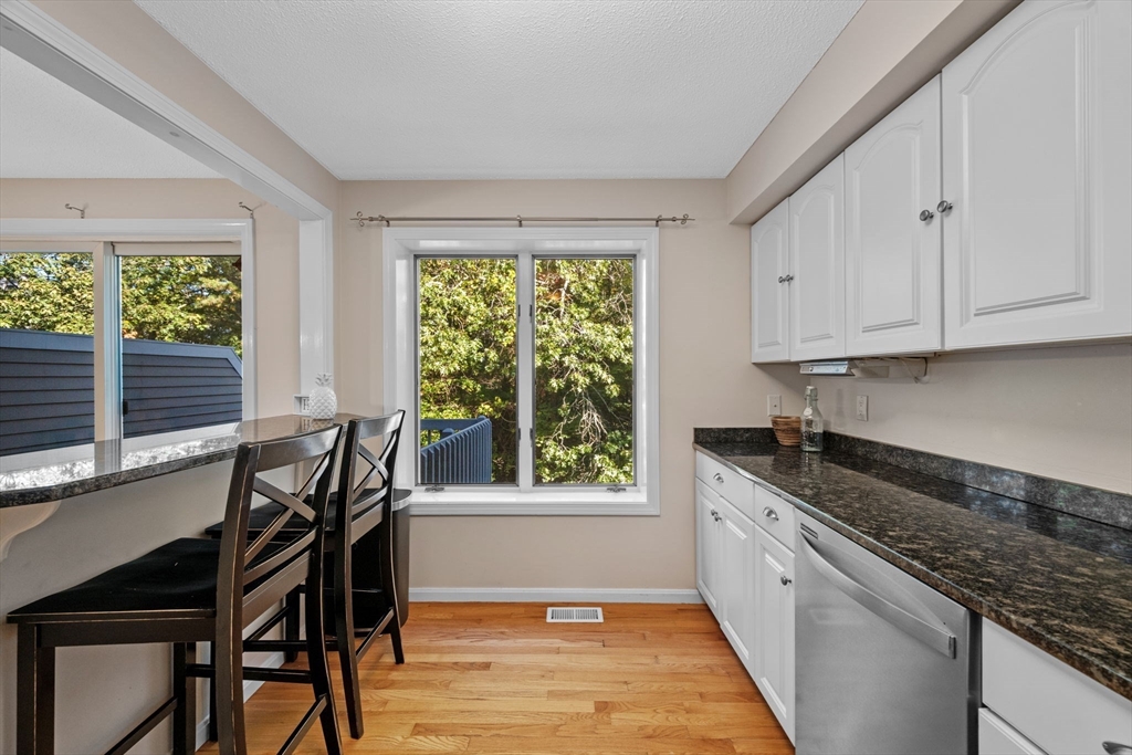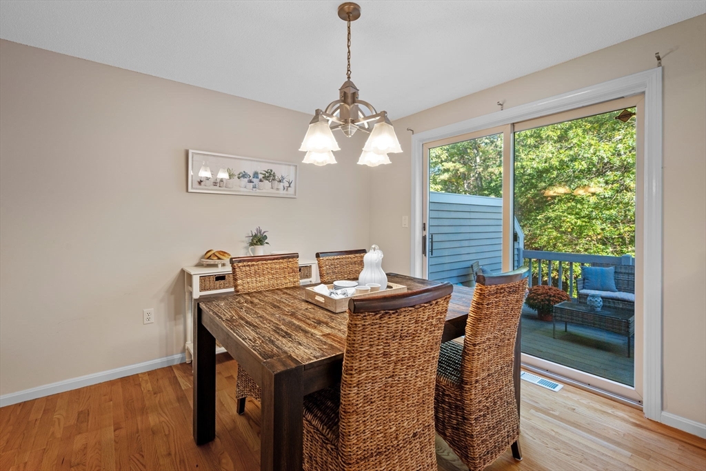 Welcome to Huntington Woods in West Peabody! A vibrant, 55 acre, townhome community offering a clubhouse, pool & tennis/pickleball courts. This beautiful unit encompasses 4 levels of living space and includes 2.5 bathrooms! The layout allows for both gathering and private areas as well as ease of entertaining. The kitchen and dining room flow seamlessly together with lots of sunlight from the slider and large windows. The deck off of the kitchen/dining room provides a peaceful, wooded view, while the lower level is the perfect place to watch football, or work on a craft project. Upstairs, the main bedroom is complete with 2 closets and a dressing area w/ a separate sink. The 3rd floor with its cozy window seat is a perfect flex space for an office, guest space, or quiet retreat. With all of the extras such as central air, recently replaced appliances, newer carpeting and basement flooring, new hot water heater in 2022, garage & built-in cabinet, this fabulous home is not to be missed!