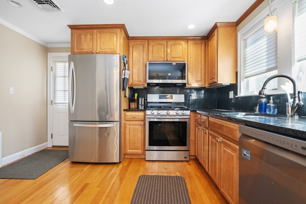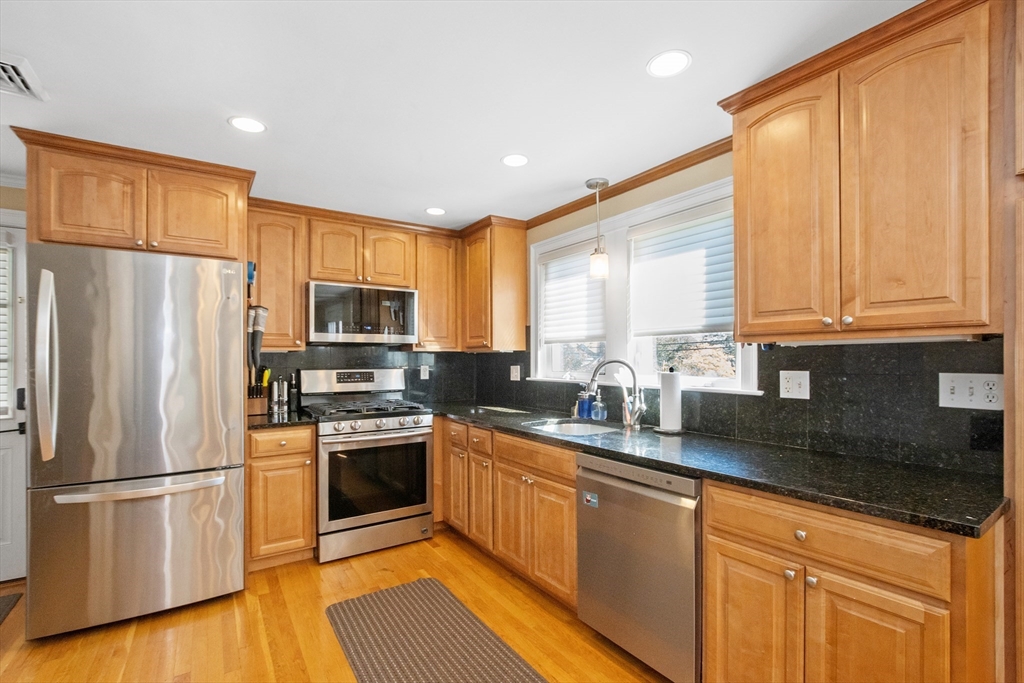 Nestled in the prestigious Kendall Park neighborhood, this beautifully maintained ranch offers a seamless blend of charm and modern upgrades, featuring a granite kitchen with stainless steel appliances that opens to a welcoming dining area, a cozy granite fireplaced living room with recessed lighting, crown moldings, and gleaming hardwood floors, plus an updated bathroom (2018), newer windows, and master bedroom closet with built-in shelving for smart storage. The finished basement family room adds versatile living space, while pull-down attic access provides extra storage. Enjoy year-round comfort with newer central AC and gas heat (2017), and a heated garage for added convenience. Outside, the meticulously landscaped, fenced-in backyard is a private retreat with a pergola, patio, shed, and stone walkway—perfect for relaxing or entertaining. All set against the scenic backdrop of Prospect Hill Park and close to public transportation, this home is a rare find in a coveted location.