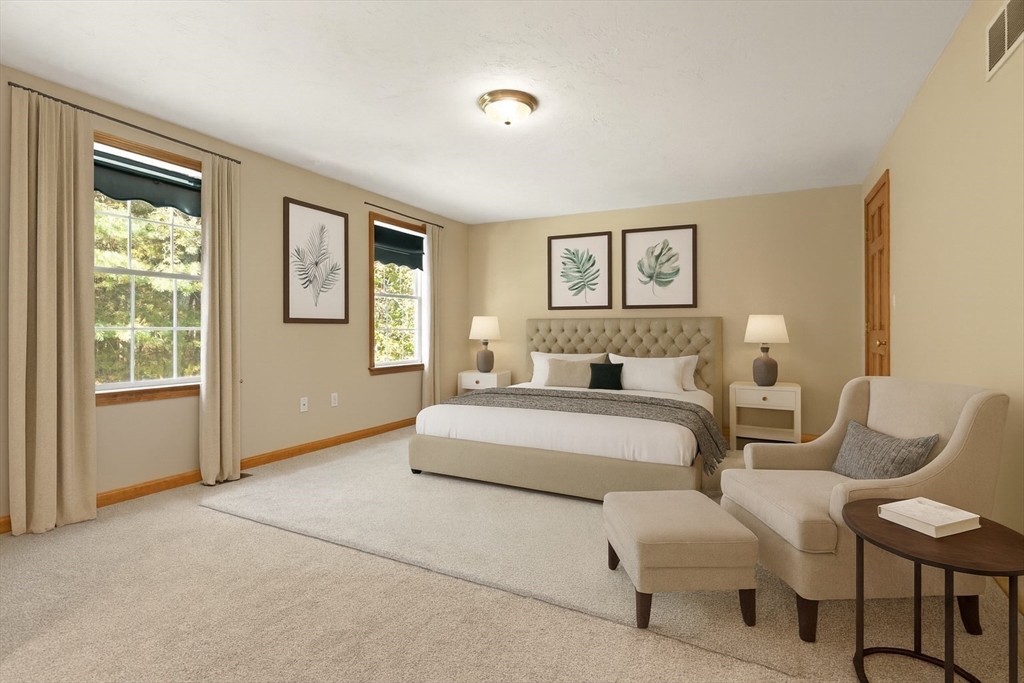 Elegant Colonial living in one of Westford’s premier neighborhoods—Greystone Estates! This beautifully updated 4-bed, 3 bath home showcases refined design, quality finishes, and exceptional craftsmanship throughout. The main level features new hardwood floors, fresh paint and sun-filled rooms with custom moldings and a seamless flow ideal for entertaining. The kitchen offers abundant cabinetry and open sightlines to the fireplaced family room with built-ins and large windows overlooking the landscaped, fenced yard. Upstairs, the serene primary suite includes an updated, spa-inspired bath and new carpeting. A walk-up attic framed with 2×10 joists provides great storage or expansion potential, and a partially finished lower level offers flexible space. Energy-efficient owned solar keeps costs low for every day, and house is wired for a generator in case of bad weather. Convenient to top-rated schools, trails, and commuter routes—where elegance meets everyday comfort.