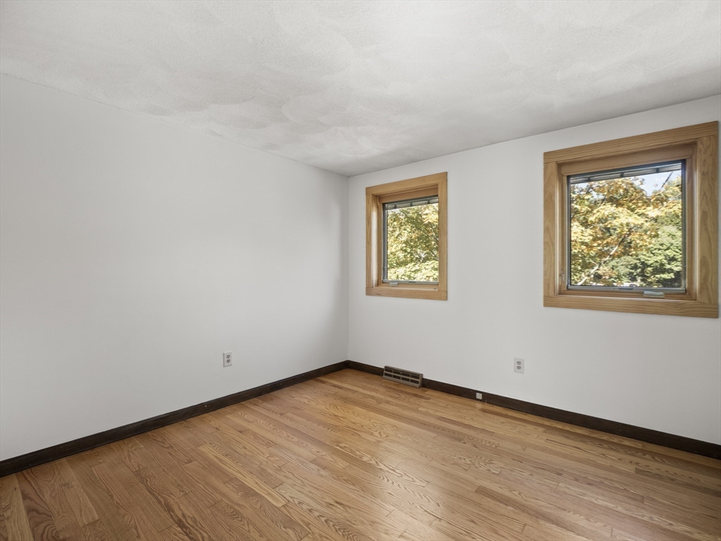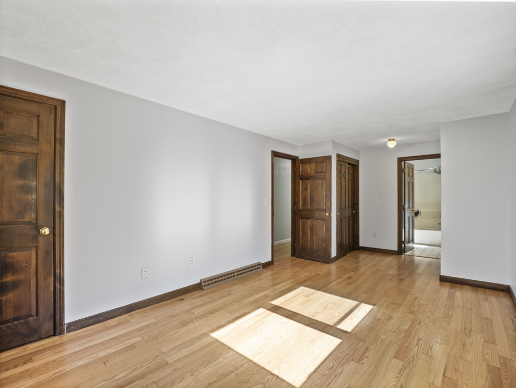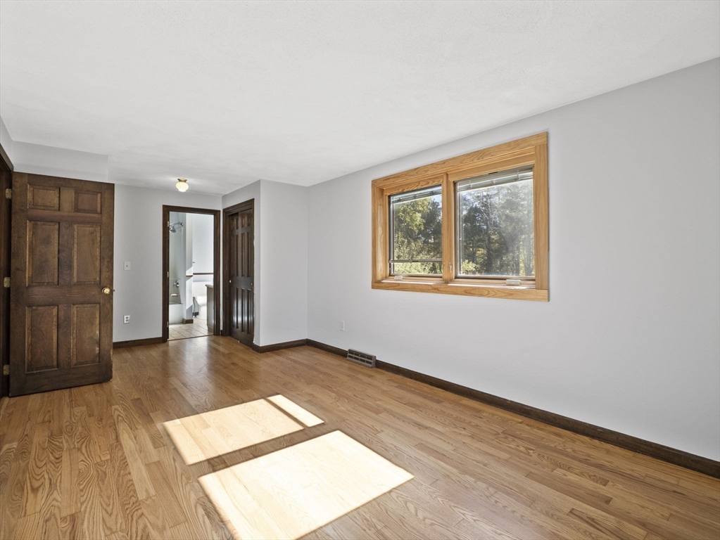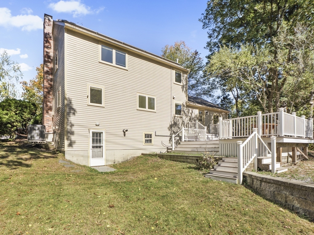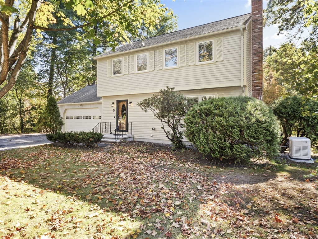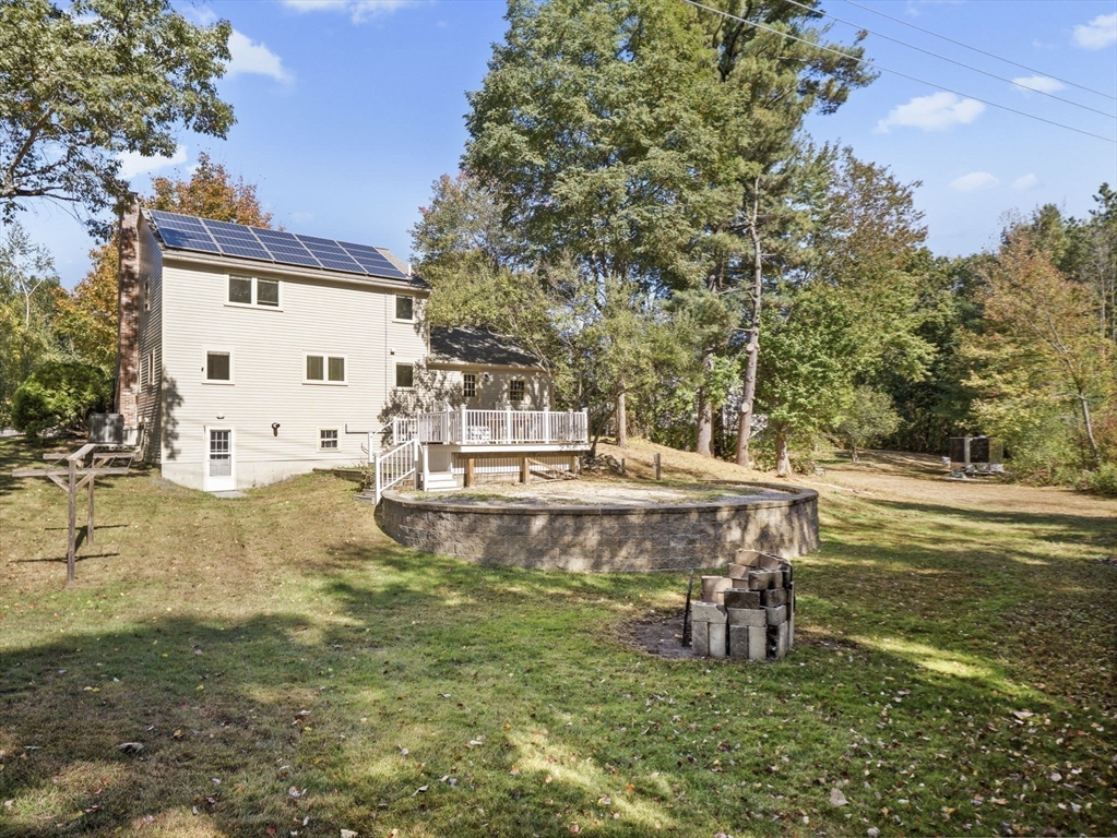 Warm & Inviting Colonial in a Prime Location, ideally situated at the end of a quiet cul-de-sac, just minutes from the bike path, shopping, and major highways! This home offers the perfect blend of comfort, and convenience. Enjoy peace of mind with many recent updates, including a newer roof, furnace, windows, hot water heater, and seller-owned solar panels—a great way to save on energy costs. The interior has been freshly painted. Fall in love with the gorgeous, mint-condition hardwood floors throughout. The bathroom features dual access from both the primary bedroom and the hallway for added convenience. Full walk-out basement with daylight windows gives the potential for more living space! Oversized composite deck overlooks a serene 2 acre plus lot where you can enjoy the amazing outdoor space, cook-outs & gatherings . Who doesn't want a whole house generator and central air! See Floor plan on the clip in MLS. Book your showing today!