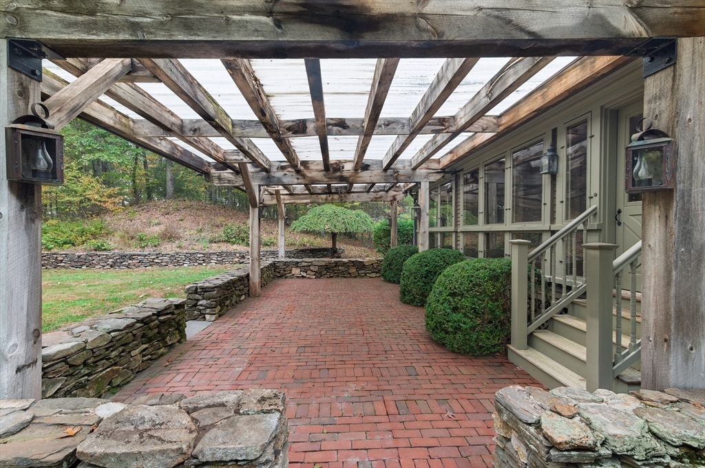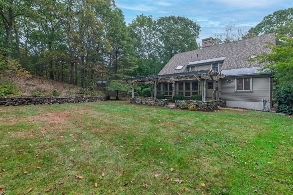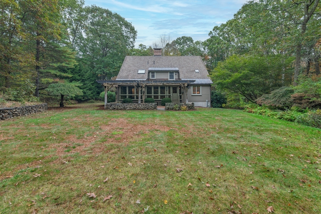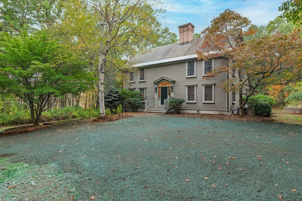 One of a kind, custom built reproduction of a 1700's Coln Saltbox available in Foxboro! Built in 1989, this timeless & unique property blends classic New England architecture with tranquil natural surroundings. Set 500 feet back from the road, it offers exceptional privacy on 4.13 acres of beautifully maintained land, bordered by 260 acres of protected conservation area ideal for hunting, fishing, and outdoor exploration. Once inside from the heated granite front porch, the home features classic Colonial symmetry with traditional detailing and a refined floor plan that balances formal and casual living, all with HWF throughout.1st fl has kit with custom tiger maple cabs, a formal din rm, fp liv rm,1/2 bath and a large FP fam rm with french doors to a bright & relaxing sunroom with HWF & 9 custom windows overlooking the scenic backyard! The 2nd floor offers 4 beds,one a primary/full bath.Out back has a stone patio covered with a custom pergola, a Koi pond,stone walls & mature plantings!