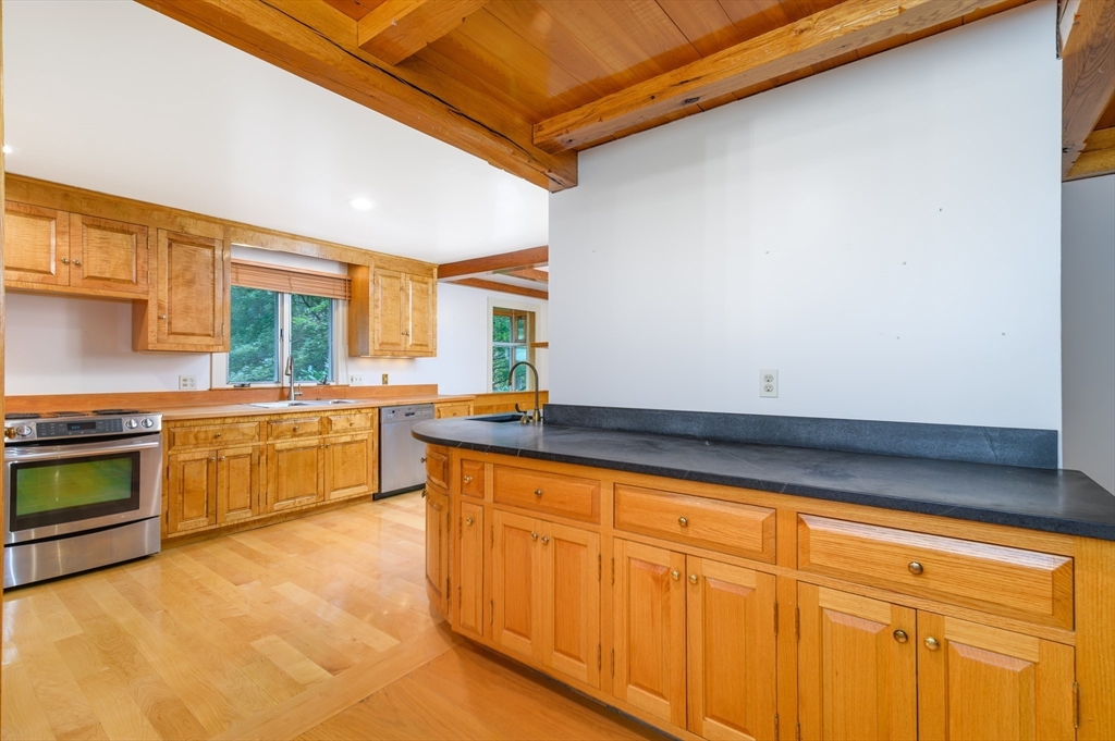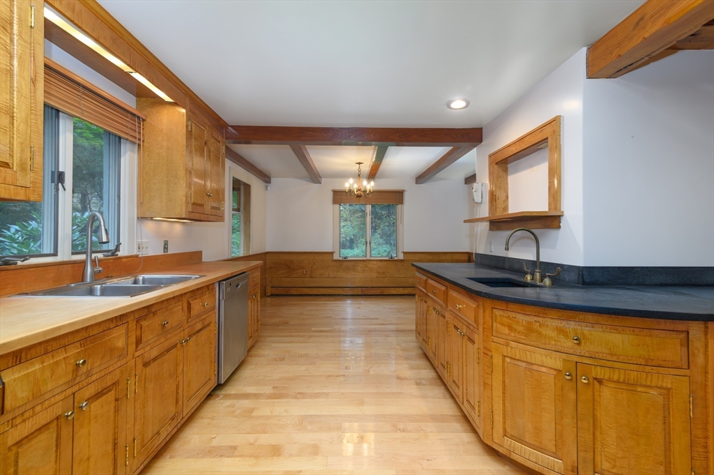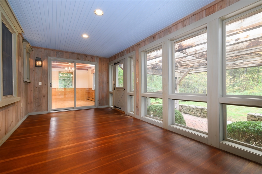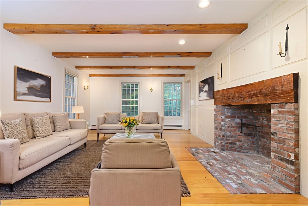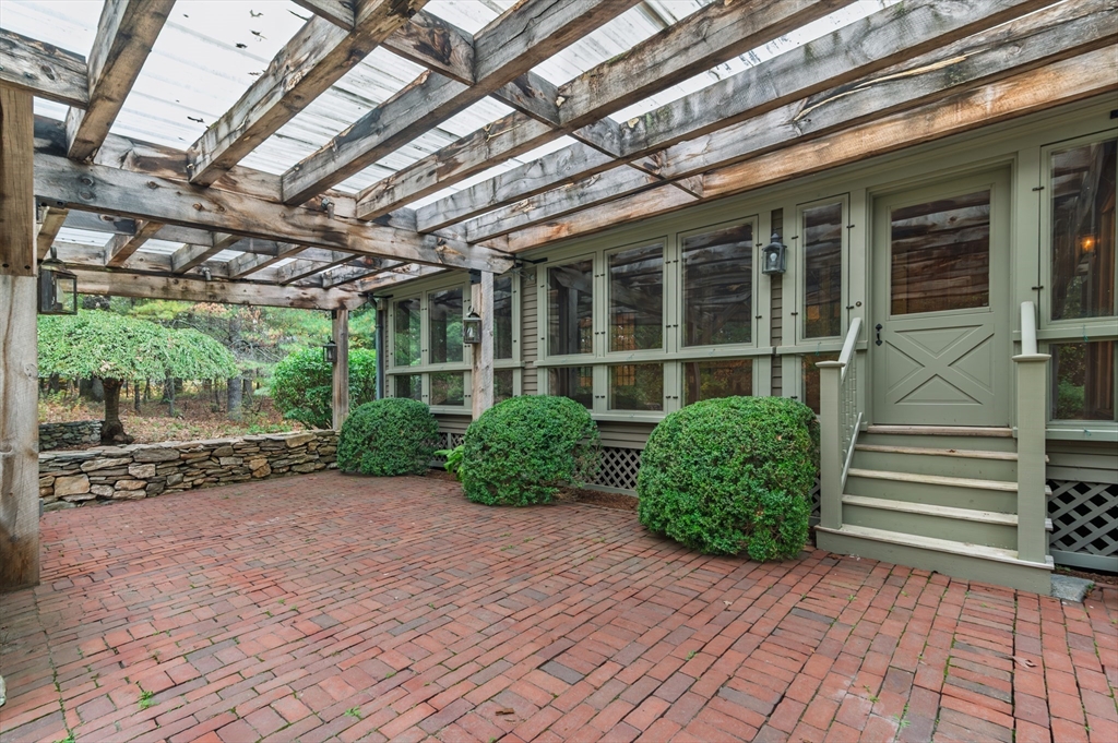 One of a kind, custom built reproduction of a 1700's Coln Saltbox available in Foxboro! Built in 1989, this timeless & unique property blends classic New England architecture with tranquil natural surroundings. Set 500 feet back from the road, it offers exceptional privacy on 4.13 acres of beautifully maintained land, bordered by 260 acres of protected conservation area ideal for hunting, fishing, and outdoor exploration. Once inside from the heated granite front porch, the home features classic Colonial symmetry with traditional detailing and a refined floor plan that balances formal and casual living, all with HWF throughout.1st fl has kit with custom tiger maple cabs, a formal din rm, fp liv rm,1/2 bath and a large FP fam rm with french doors to a bright & relaxing sunroom with HWF & 9 custom windows overlooking the scenic backyard! The 2nd floor offers 4 beds,one a primary/full bath.Out back has a stone patio covered with a custom pergola, a Koi pond,stone walls & mature plantings!