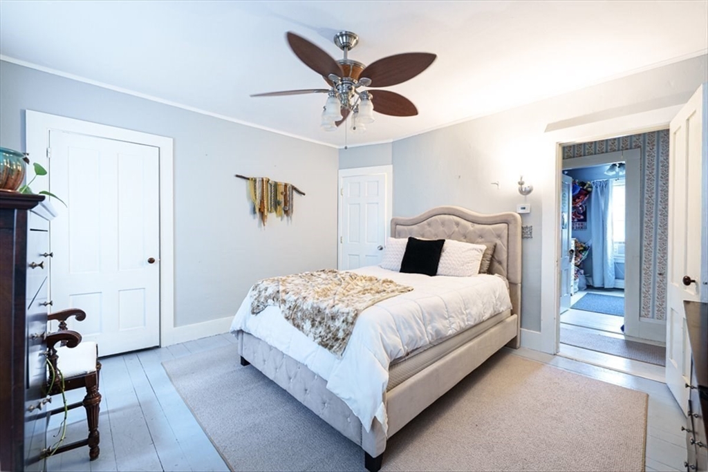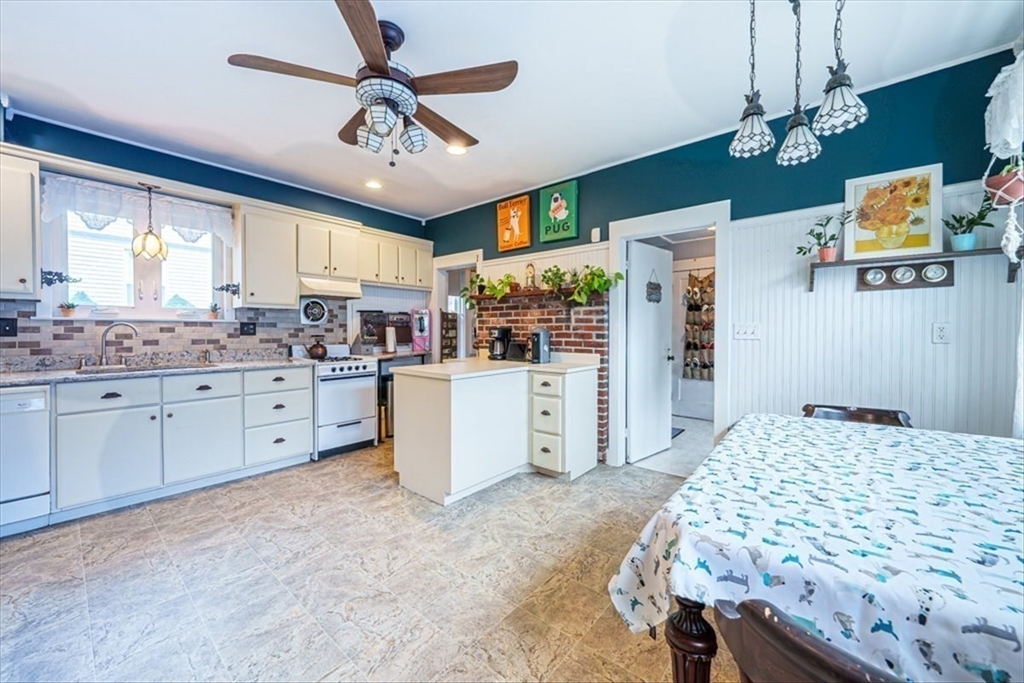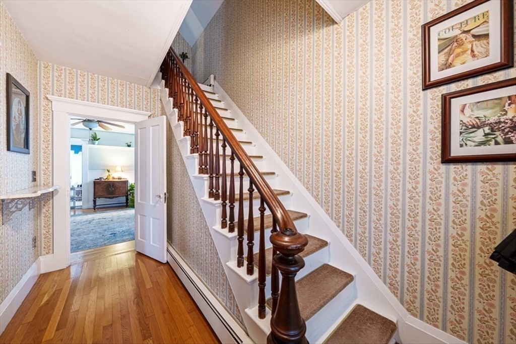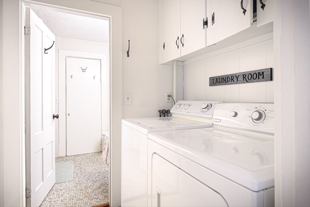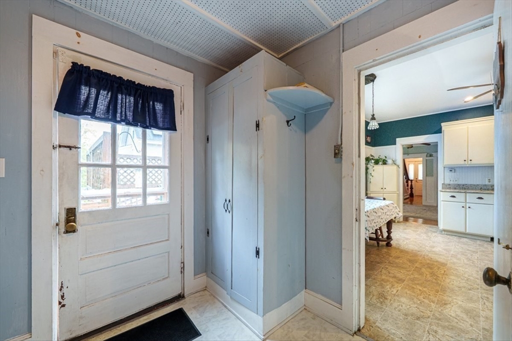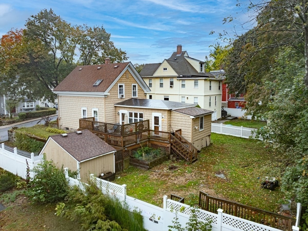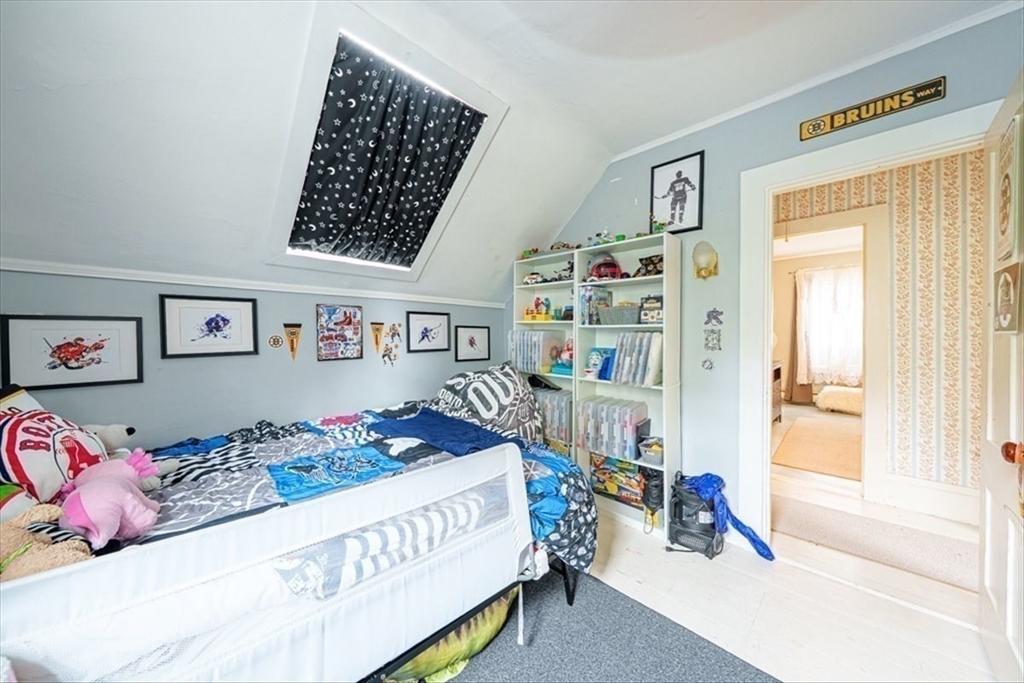 Beautiful Colonial offering the perfect blend of character, space, and modern touches. Exterior highlights include updated vinyl shake siding, roof, gutters, windows, and a vinyl fence for easy maintenance. A large deck overlooks a level, beautifully landscaped yard, and the property features the rare convenience of two driveways. Inside, the kitchen boasts refaced cabinets, new quartz countertops, updated lighting, and all appliances will remain. A spacious pantry provides great storage, and the first-floor laundry and full bath add everyday practicality. The inviting mudroom with exterior access leads to a bonus workout room or office. Gleaming hardwood floors grace the living and dining rooms. Upstairs offers a generous primary bedroom with double closets and a Jack & Jill bath, along with two additional bedrooms featuring skylights that fill the home with natural light. A wonderful home ready to move right in and enjoy!
