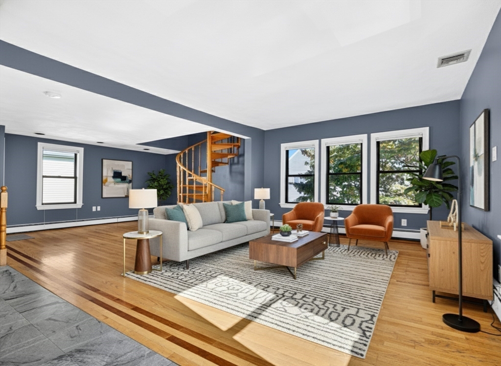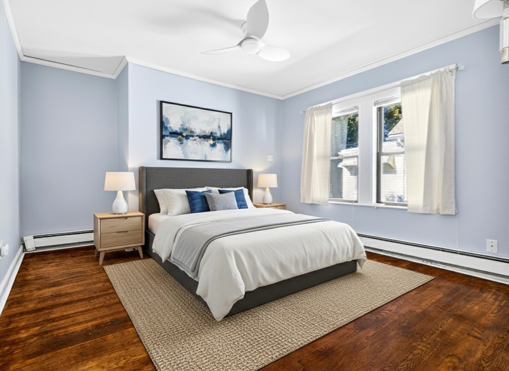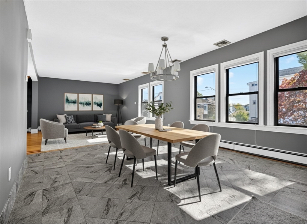 Welcome home to your bright and sunny 3 bedroom upper level condo. From your private entrance walk upstairs to an open and spacious living / dinning area with heigh ceilings and lined with windows. Updated (2021) kitchen that features granite countertops and stainless steel appliances large pantry with room to add an island or table. The main level has 2 bedrooms and a full bath with new vanity. The top level has a third bedroom & bonus living space providing a blank space for you to create whatever you can dream. Additional perks of this condo is 2 parking spaces, new furnace, private laundry room, additional storage in basement, a large fenced in back yard complete with deck, patio and shed! Located on a side street in the Glenwood neighborhood, this home offers easy access to many commuter routes (Fellsway, Rt 16 and 93) the Middlesex Fells, the Orange line at both Wellington Station and Malden Center as well parks restaurants and shop.