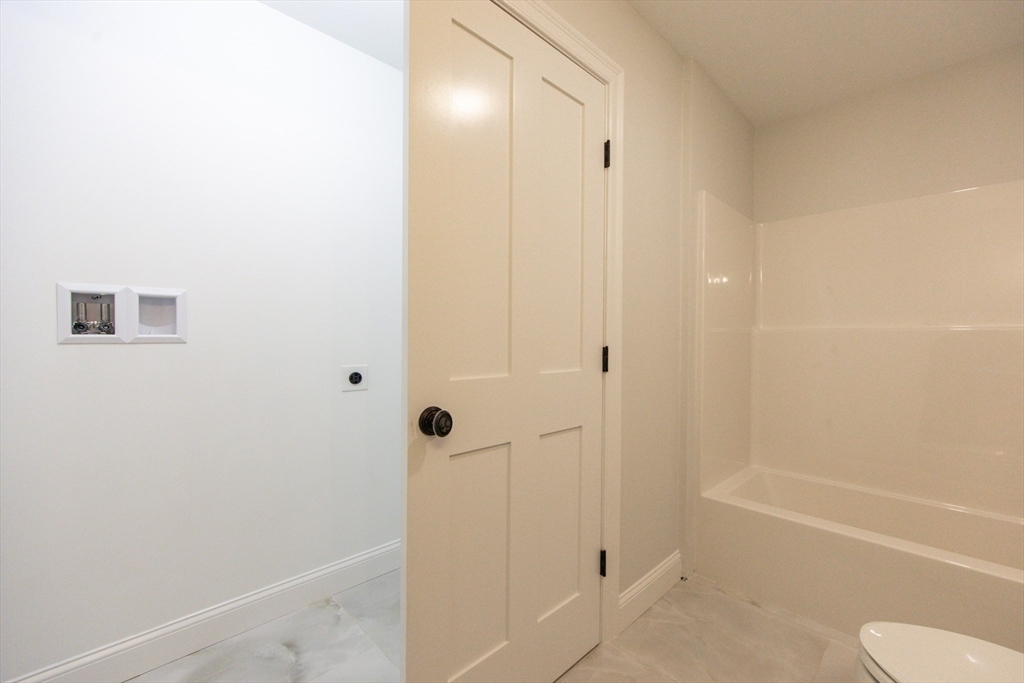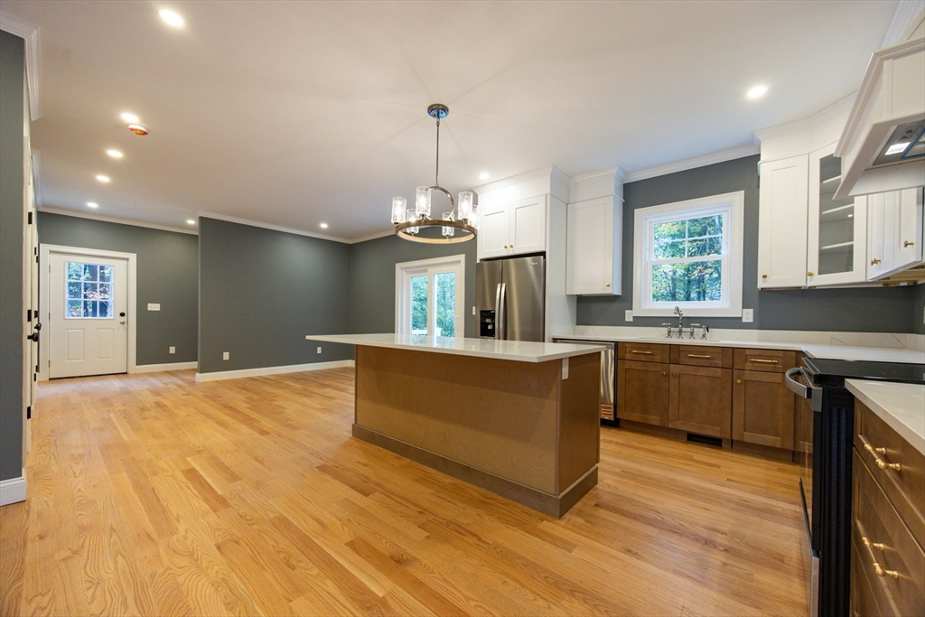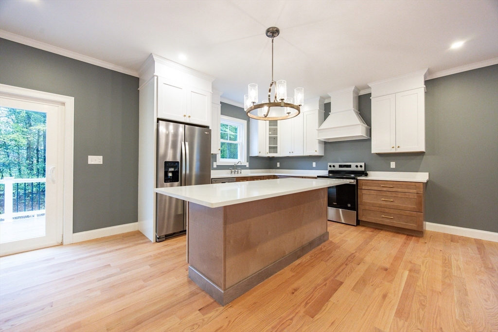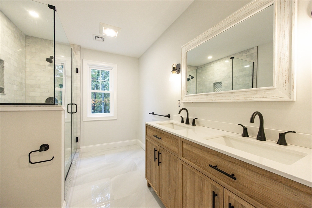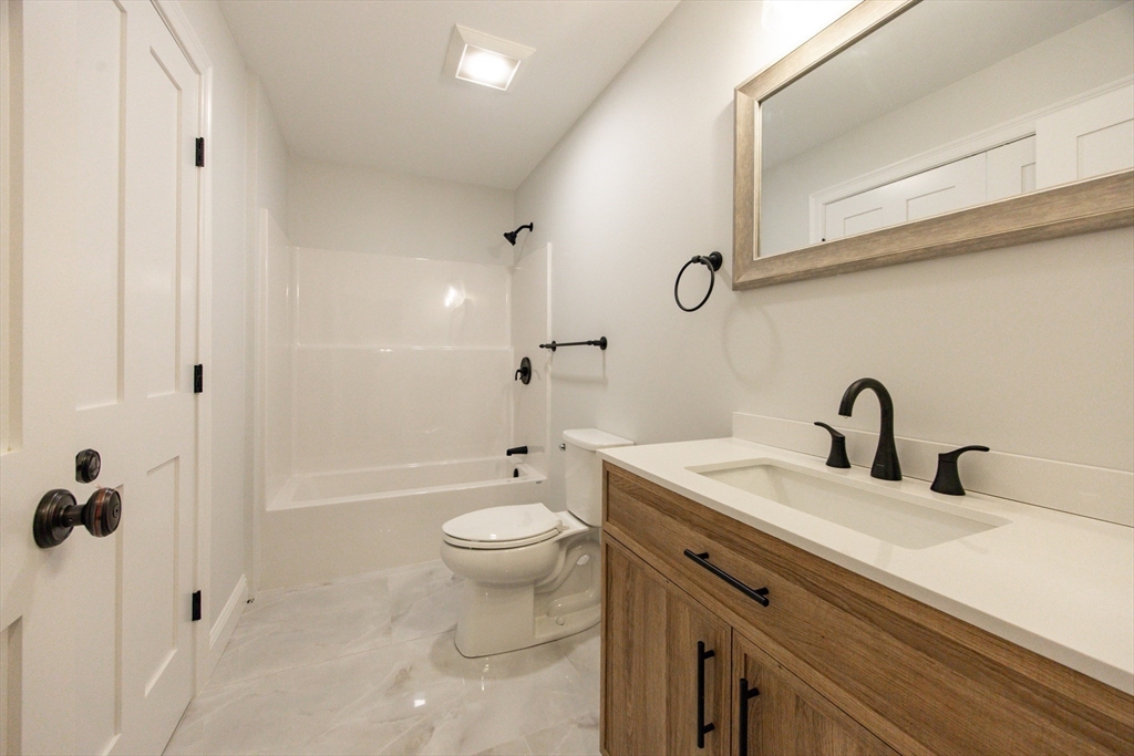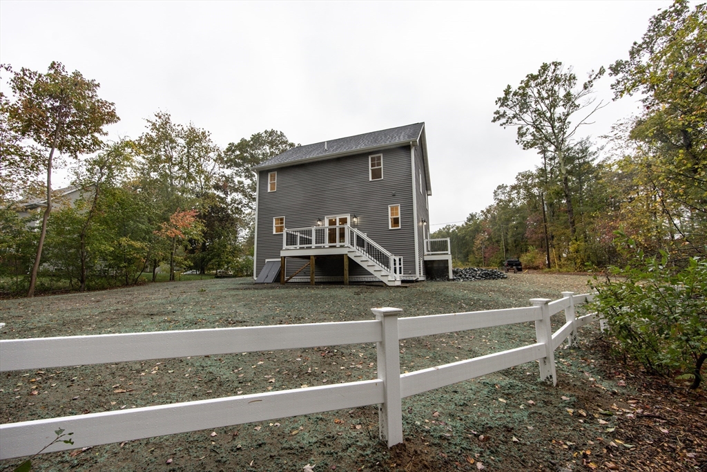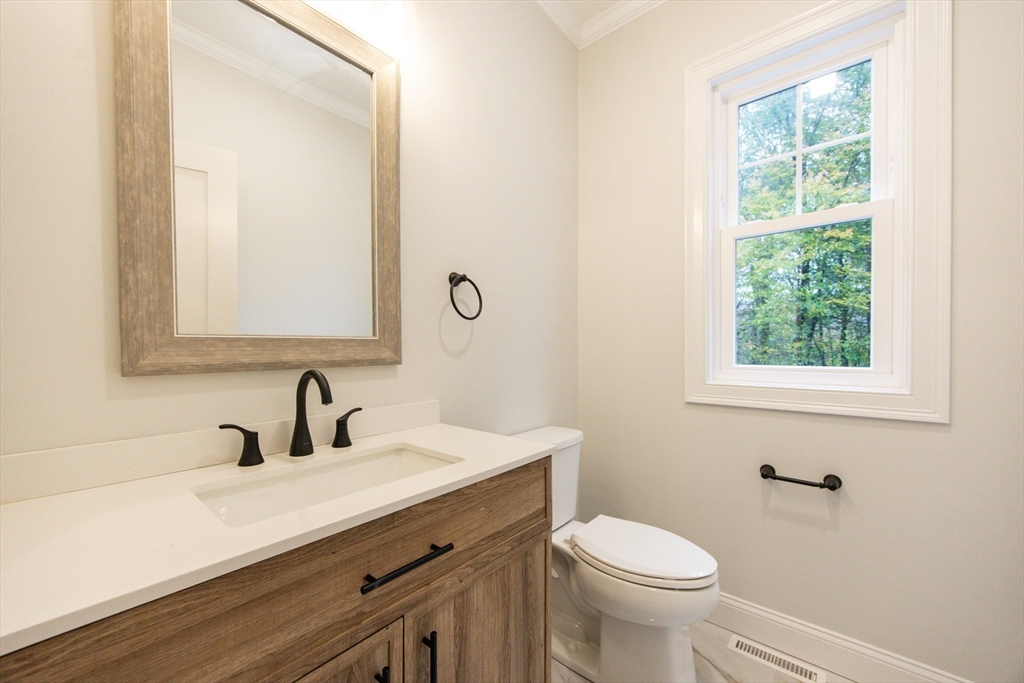 NEW CONSTRUCTION! Discover this beautifully built 3-bedroom, 2.5-bath Colonial offering 1,920 sqft of stylish living space. Just completed, this home combines modern comfort with timeless design. Enjoy its great curb appeal and private setting, while still being conveniently close to shopping, dining, and major routes. The open-concept main level features a stunning two-toned kitchen with quartz countertops, stainless steel appliances, and white oak hardwood floors that flow throughout. A spacious living area and large home office complete the first floor. Step through the dining room slider onto your back deck overlooking a private backyard perfect for relaxing or entertaining. Upstairs, the primary suite impresses with a luxurious tiled shower, double vanity, and two closets including a generous walk-in. Two additional bedrooms, a full bath, and a laundry area complete the upper level. The unfinished basement is perfect for finishing. This is a must see!