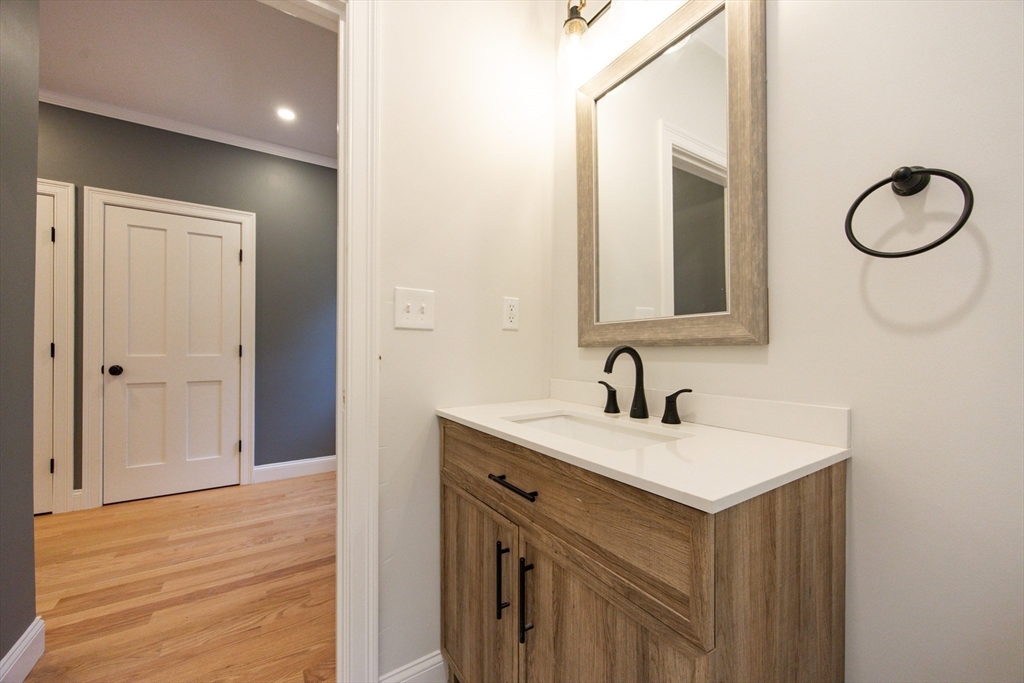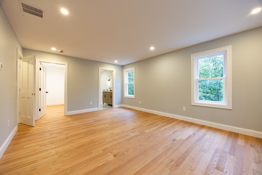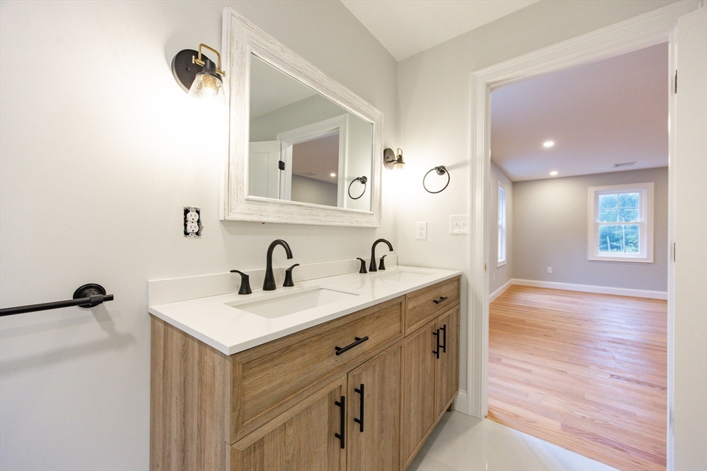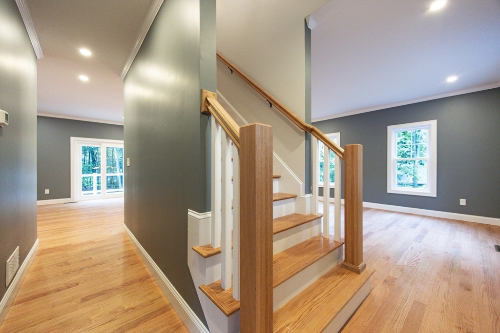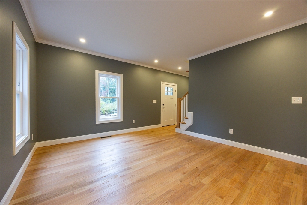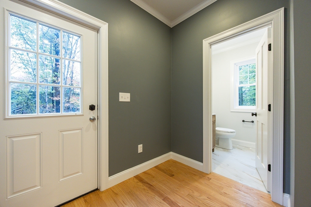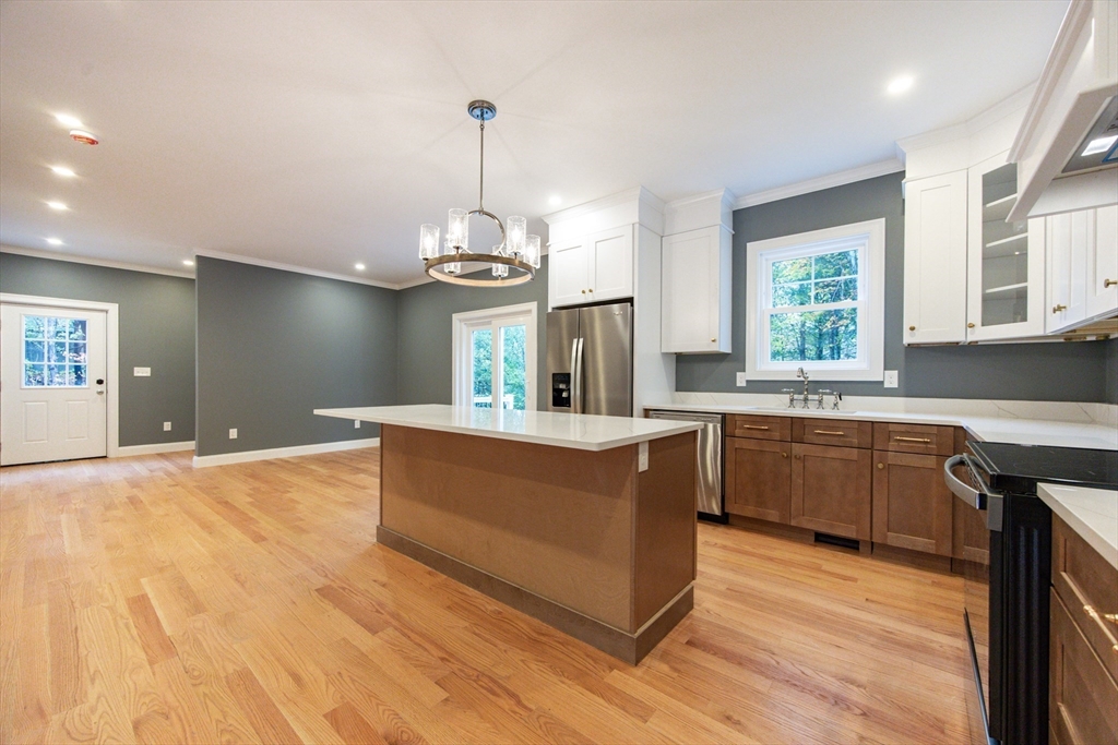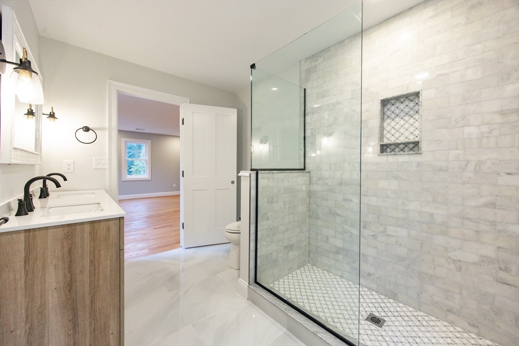 NEW CONSTRUCTION! Discover this beautifully built 3-bedroom, 2.5-bath Colonial offering 1,920 sqft of stylish living space. Just completed, this home combines modern comfort with timeless design. Enjoy its great curb appeal and private setting, while still being conveniently close to shopping, dining, and major routes. The open-concept main level features a stunning two-toned kitchen with quartz countertops, stainless steel appliances, and white oak hardwood floors that flow throughout. A spacious living area and large home office complete the first floor. Step through the dining room slider onto your back deck overlooking a private backyard perfect for relaxing or entertaining. Upstairs, the primary suite impresses with a luxurious tiled shower, double vanity, and two closets including a generous walk-in. Two additional bedrooms, a full bath, and a laundry area complete the upper level. The unfinished basement is perfect for finishing. This is a must see!