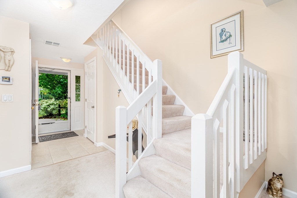 There is so much to love about this immaculate "Radcliffe" model townhome at award winning Ridgefield Condominiums! From the box window & wood burning fireplace in the open living/dining area to the cornered kitchen with stainless appliances & plenty of cabinets, this unit truly feels like home! You'll really enjoy the outdoors with your private patio & stonewall in the backyard perfect for relaxing or entertaining, you decide! Upstairs offers a huge primary bedroom with a full wall closet & dressing area connected to the full bathroom. Spacious 2nd bedroom & convenient upstairs laundry. Central AC. Attached garage & lots of storage in all the right places! Comcast basic expanded cable TV, Internet, & "all-in" Master Insurance are INCLUDED in the condo fee! Pets allowed (max of 2) subject to abutter approval. Enjoy Ridgefield's 100 acre hillside community with lots of open space, onsite management & maintenance. Utilize the pool, gym, clubhouse, tennis/pickleball courts & more!