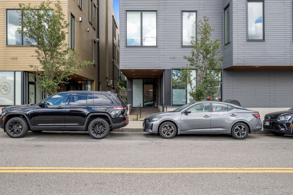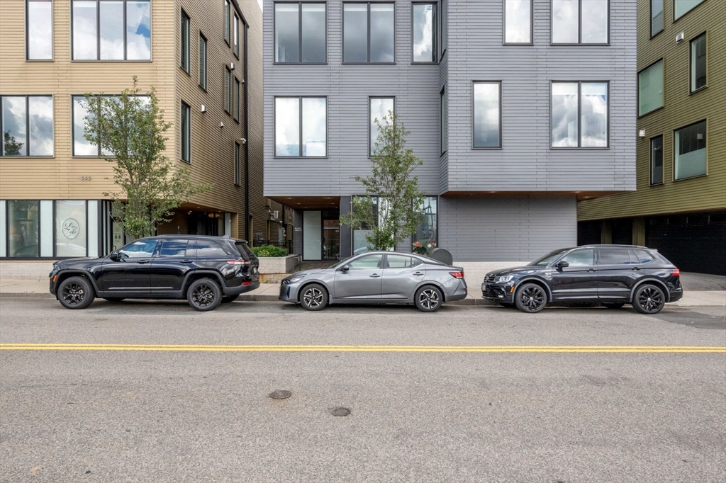 Experience the finest in contemporary living in this sleek and stylish penthouse duplex where South Boston meets the Seaport. This front facing, corner residence features incredible oversized windows, bringing in tons of natural light as well as skyline views of the Seaport and downtown beyond. The modern kitchen blends form and function with designer cabinetry, high-end stainless steel appliances, white quartz counter tops and seating for four stools. The layout lends itself wonderfully to entertaining and can be set up in multiple configurations. There is also a powder room on the main level. Upstairs features 2 bedrooms with great storage and more oversized windows. Beautiful spa-like bathrooms accentuate the overall design driven feel of this contemporary home. One flight up is your spacious private roof-deck perfectly situated in the front corner to take in the city views. A deeded garage parking space finishes things off and completes a true "total package". Very walkable too!
