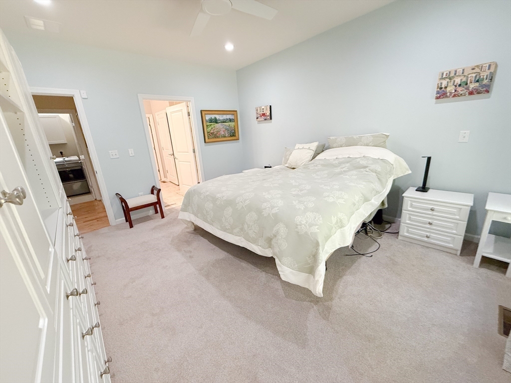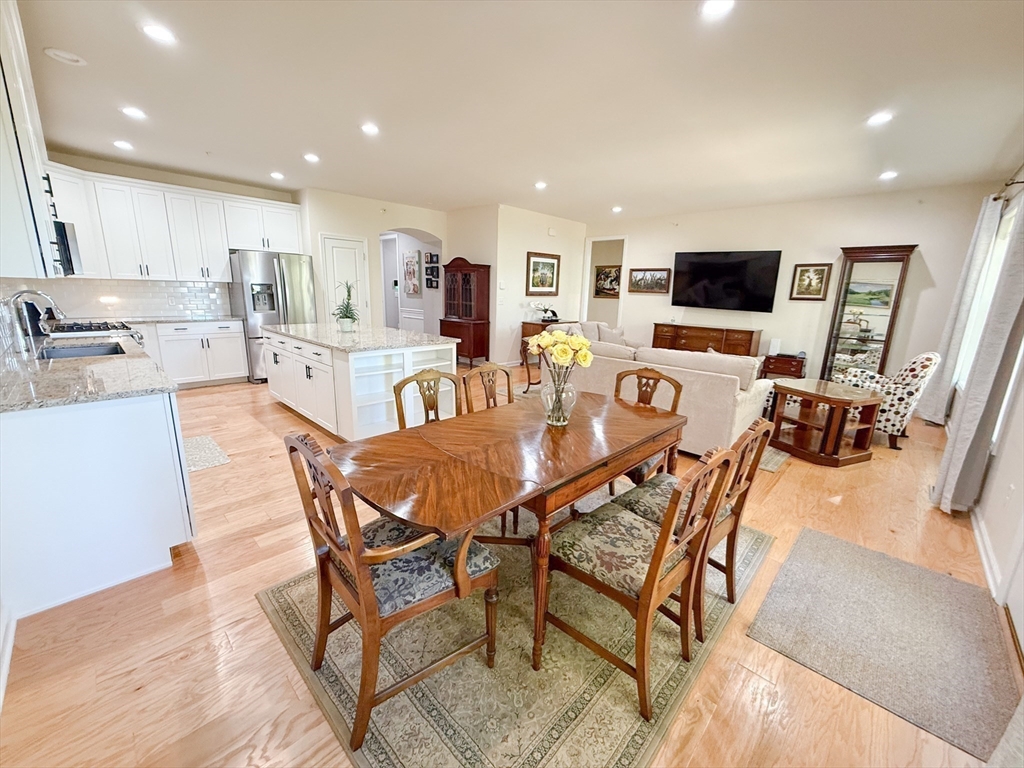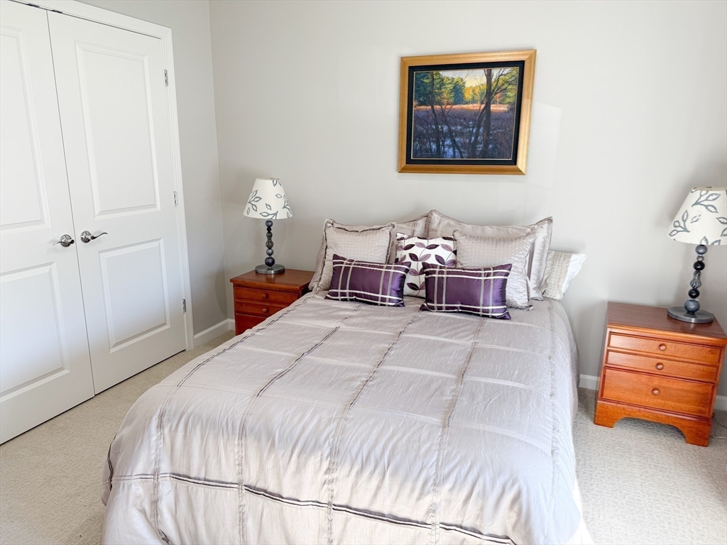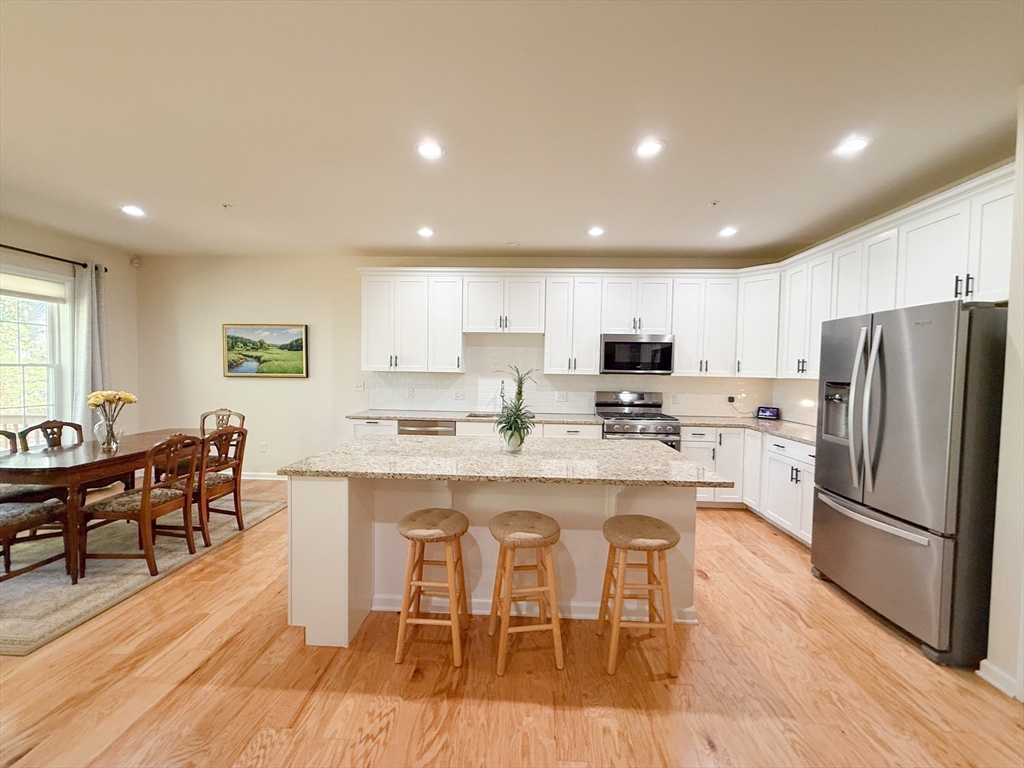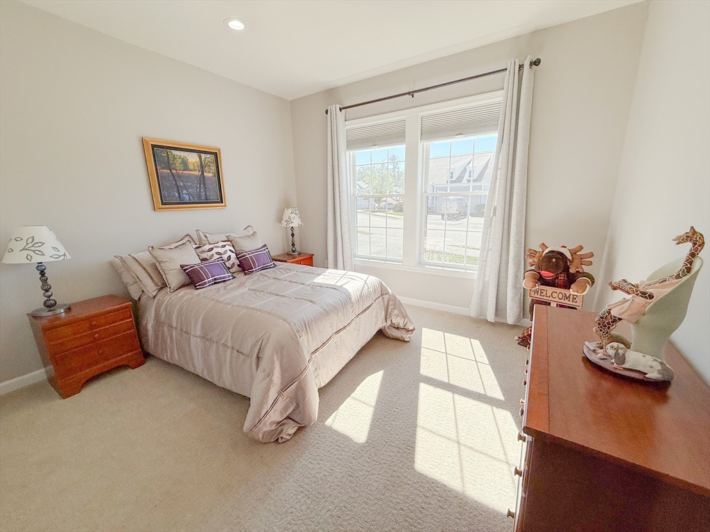 Beautiful Trentino One Story Design at Brooksmont of Holliston, a 55+ active Adult Community. This condo has everything you are looking for with convenient one level living. Open Floor Plan with Kitchen, Dining Area and Living Room great for gatherings! The Kitchen features huge center island with built-ins, custom soft close cabinets, granite countertops, tiled backsplash, upgraded stainless steel appliances 2022 dishwasher and 2022 double oven & a pantry. Generous size Primary Bedroom Suite with tiled shower, light with heat lamp, large double vanity with quartz countertop and large walk-in closet. 1st floor Office with French Doors. 9 foot ceilings, Upgraded Electrical panel. Lower level 2022 features 775 SF 2 rms finished fully insulated with heat, AC and daylight windows! New LED flush mount lighting throughout, California closets in Primary BR, Pantry & laundry Rm, 2 car garage, gas heat, new blinds & alarm system. Convenient to Downtown Holliston & major routes