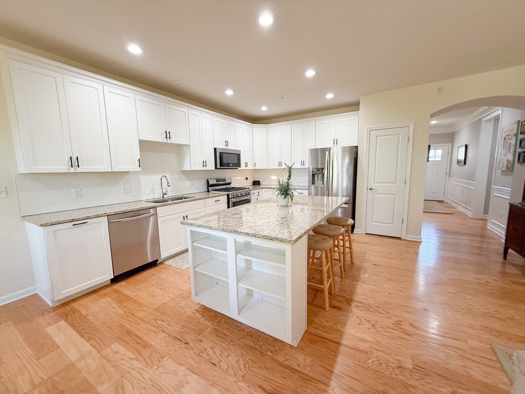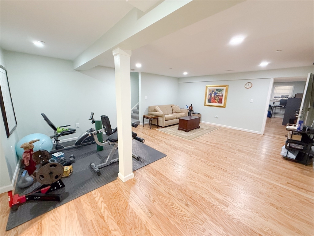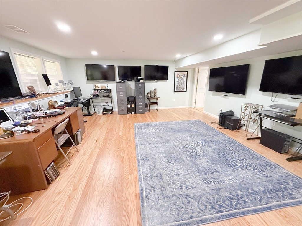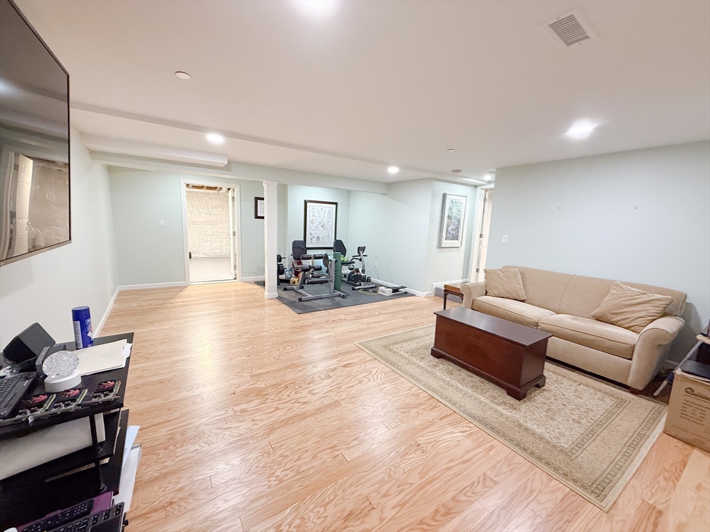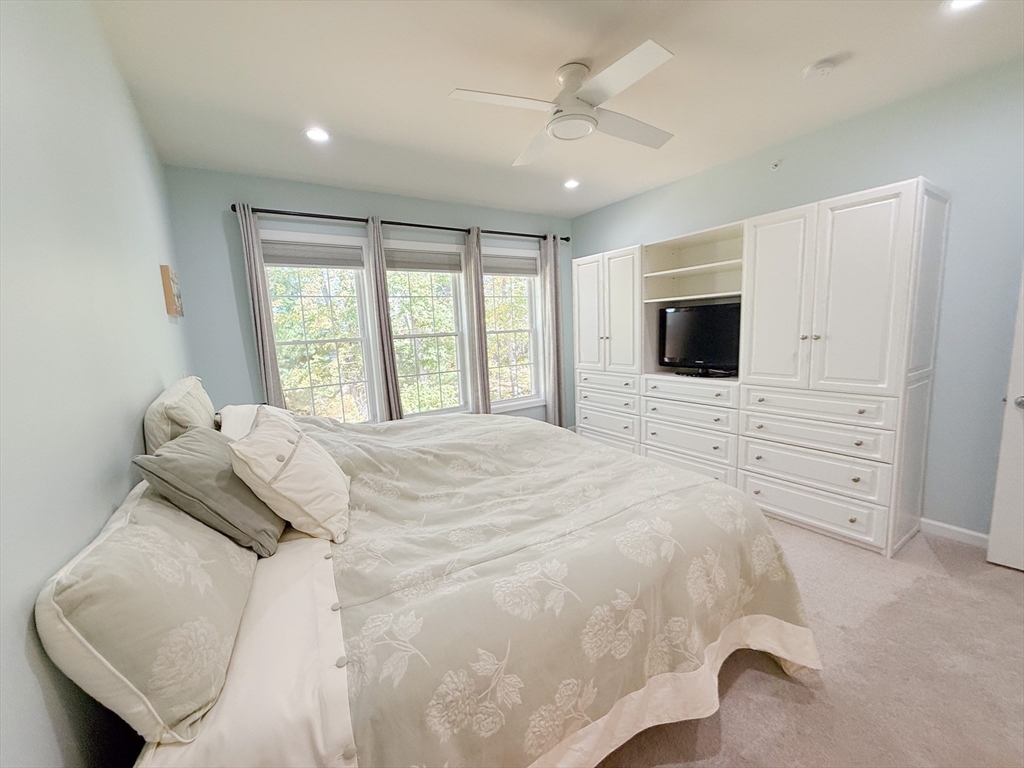 Beautiful Trentino One Story Design at Brooksmont of Holliston, a 55+ active Adult Community. This condo has everything you are looking for with convenient one level living. Open Floor Plan with Kitchen, Dining Area and Living Room great for gatherings! The Kitchen features huge center island with built-ins, custom soft close cabinets, granite countertops, tiled backsplash, upgraded stainless steel appliances 2022 dishwasher and 2022 double oven & a pantry. Generous size Primary Bedroom Suite with tiled shower, light with heat lamp, large double vanity with quartz countertop and large walk-in closet. 1st floor Office with French Doors. 9 foot ceilings, Upgraded Electrical panel. Lower level 2022 features 775 SF 2 rms finished fully insulated with heat, AC and daylight windows! New LED flush mount lighting throughout, California closets in Primary BR, Pantry & laundry Rm, 2 car garage, gas heat, new blinds & alarm system. Convenient to Downtown Holliston & major routes