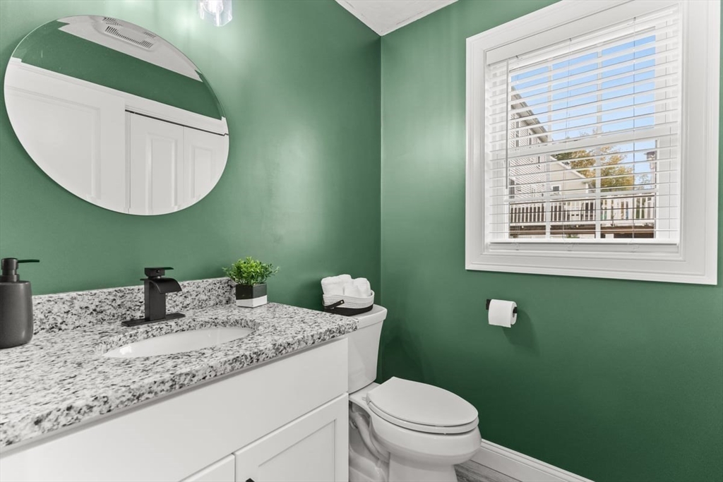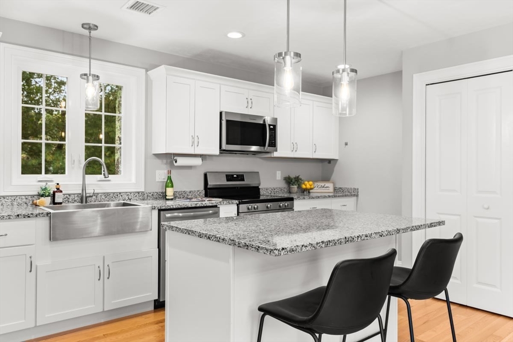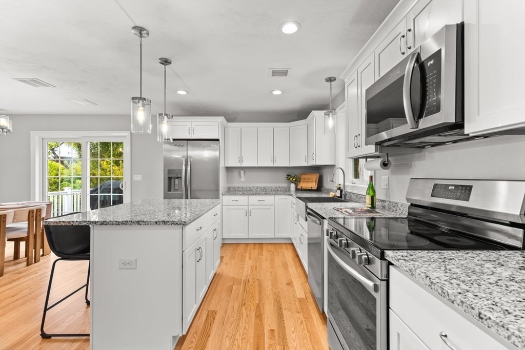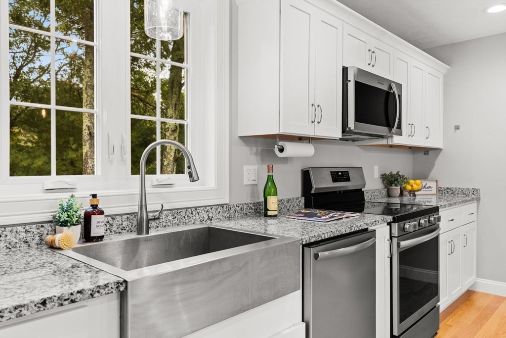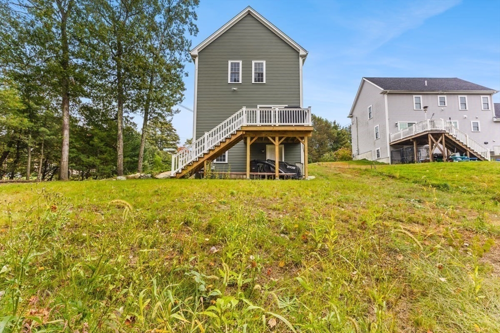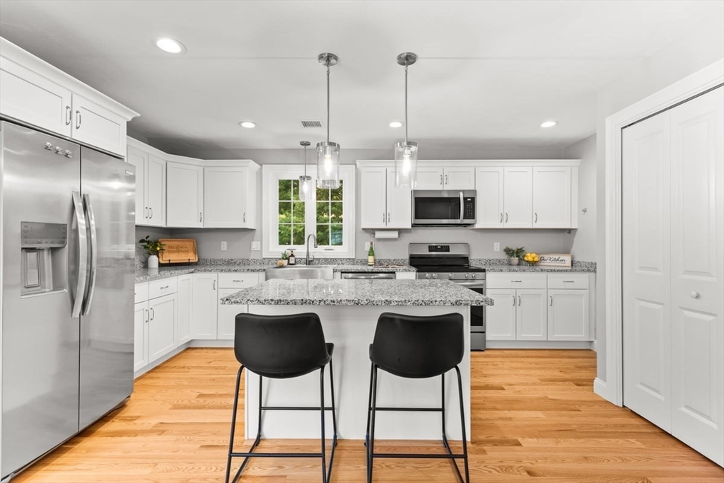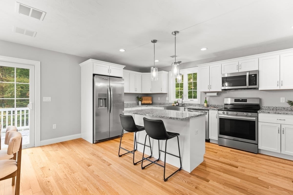 Better-than-new one year old colonial offers timeless style and modern comfort on over an acre of land. The stunning kitchen features white shaker cabinets with Silver Cloud granite countertops, a stainless-steel farmer’s sink, large pantry, and an island with seating, storage, and pendant lighting. The kitchen opens to a dining area with sliders leading to a Trex deck privately overlooking beautiful woods. The living room is spacious—an ideal area to relax or entertain. The home is bright and sunny throughout with hardwood floors on the first floor and upstairs hall. Washer and dryer are conveniently located on the first floor. Upstairs offers three bedrooms, a full bath, and plenty of closet space. Custom blinds throughout, including room-darkening features. The walk-out lower level with high ceilings gives you a clean palette to add your own special touches to this magnificent home. Convenient to the train station, restaurants and stores. .