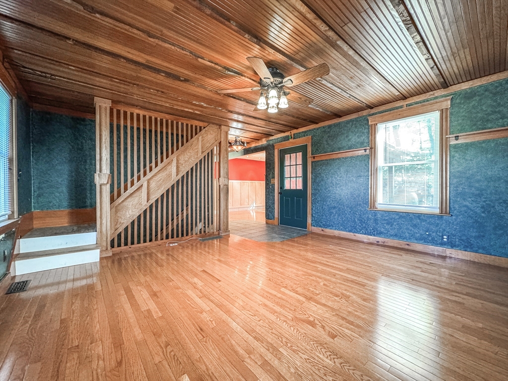 This charming 3-bed,1+ bath home combines modern comfort with classic character. Gleaming hardwood floors flow throughout the interior, complemented by an abundance of natural sunlight. The upgraded kitchen serves as the heart of the home, perfect for both daily meals and entertaining guests. Recent improvements include newer siding, a fresh roof, and a new central air and heat pump system, ensuring year-round comfort. The walkout basement provides excellent additional living space and storage options. A detached garage offers convenient parking and extra storage space. The property is situated in a commuter-friendly location, making daily travel a breeze while still maintaining a peaceful residential feel. With just minor cosmetic touches needed, this home is ready for you to add your personal style. The combination of updated systems, classic flooring, and flexible basement space creates an excellent opportunity for comfortable living in a well-maintained property.