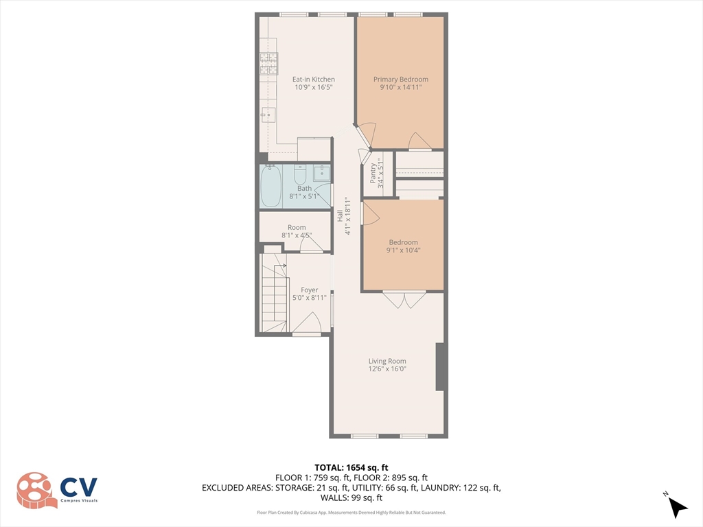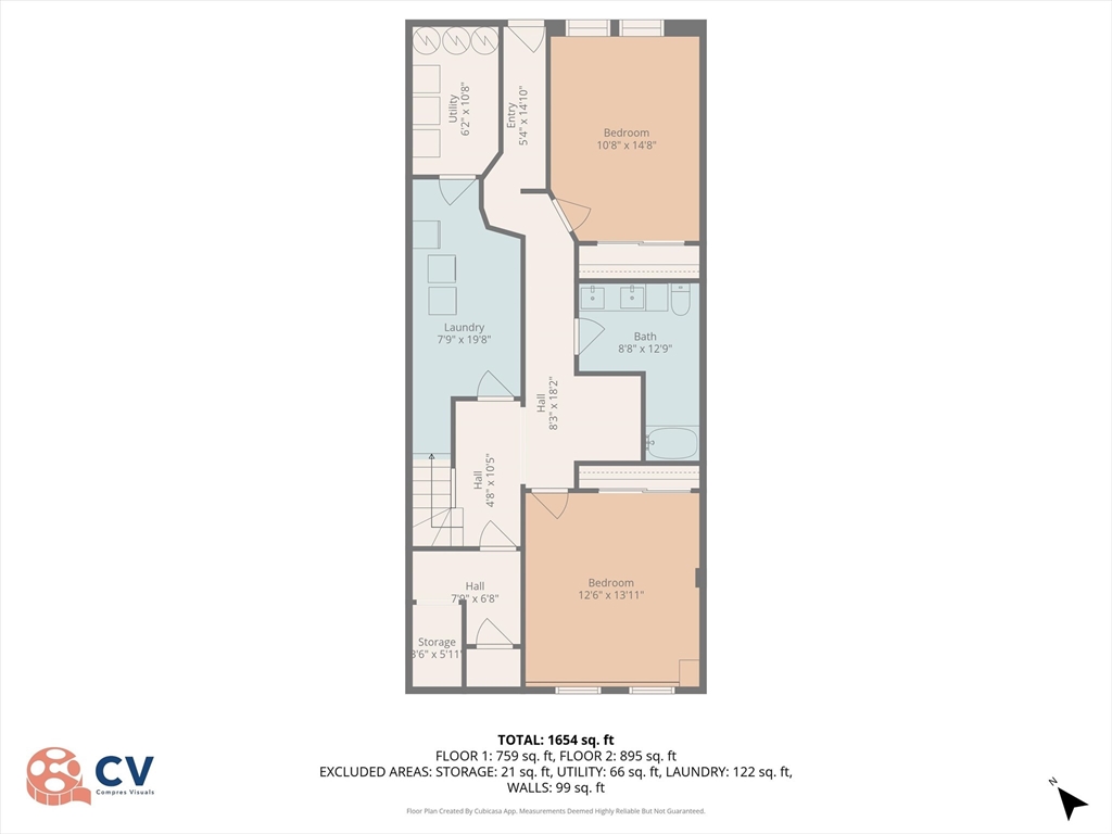 建筑面积1,654 平方英尺 (约 154 平方米)