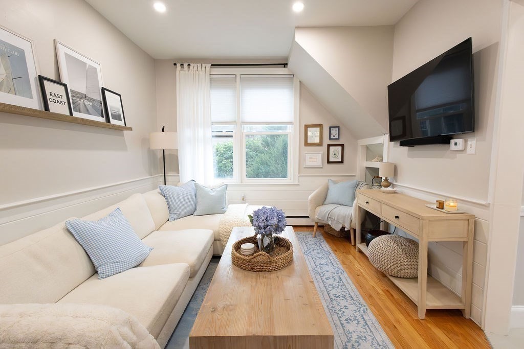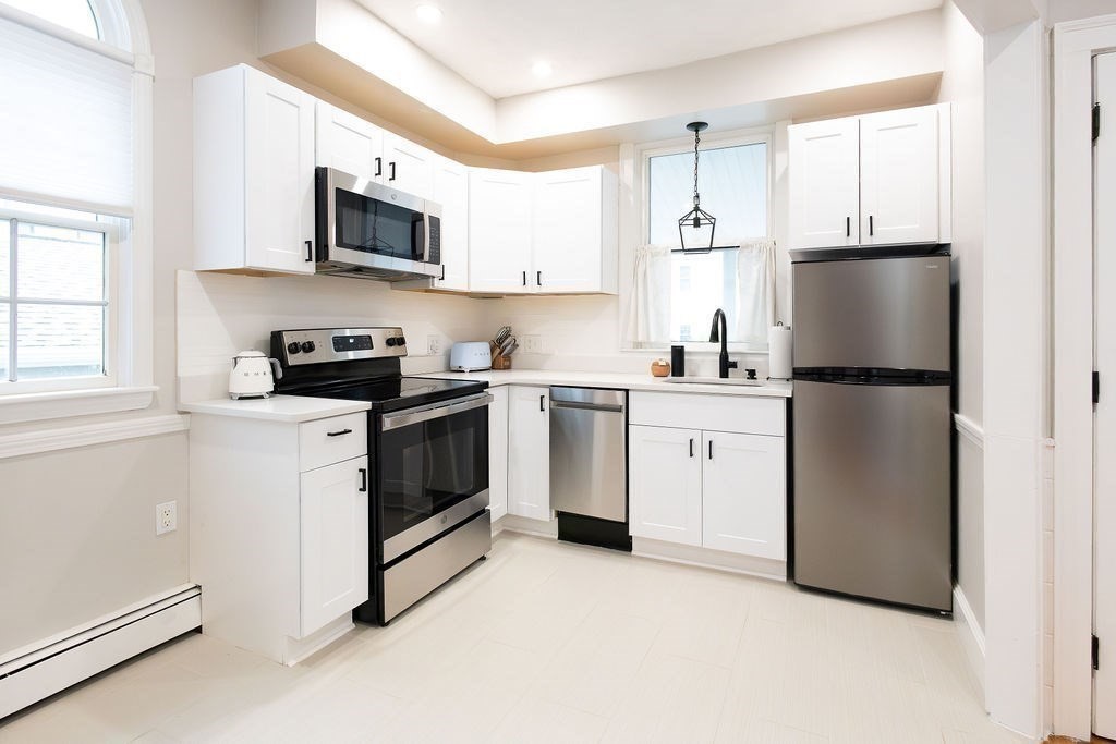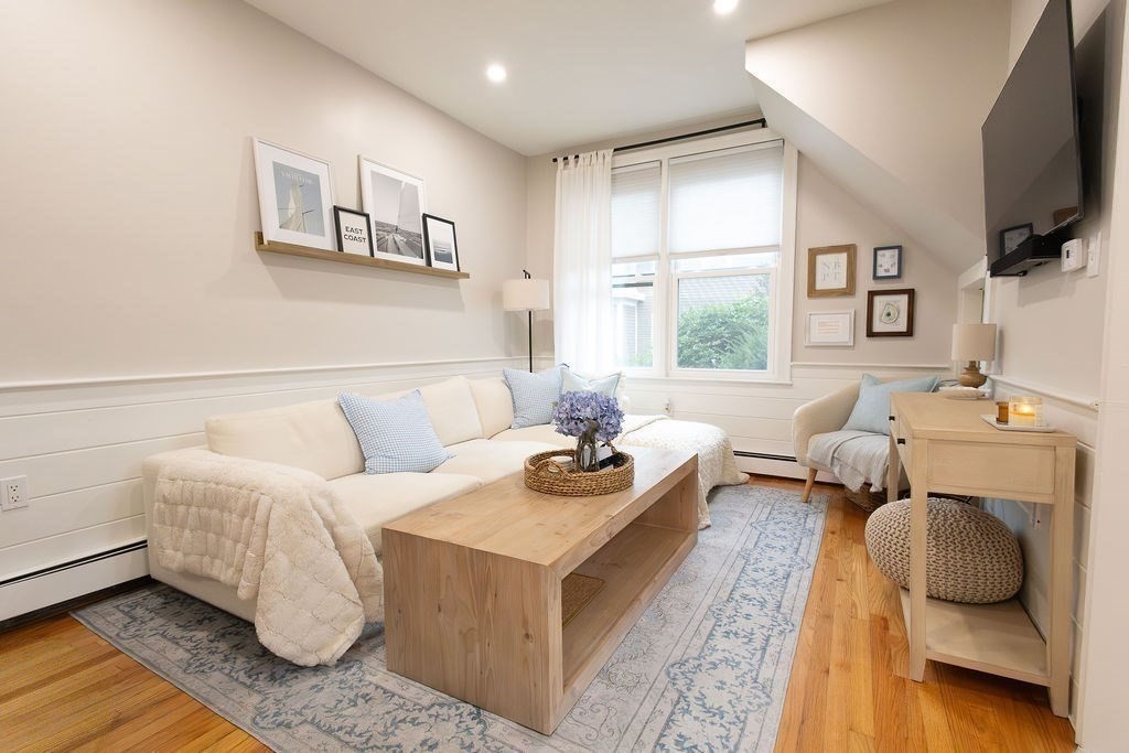 Beautifully updated one-bedroom townhome-style condo, situated along the rail trail leading straight to vibrant downtown and picturesque waterfront. The bright, modern kitchen features sleek white cabinetry, quartz countertops, and stainless steel appliances, opening to a sunny, south-facing living area with newer windows that flood the space with natural light. Hardwood floors run throughout the home. Upstairs, you’ll find a remodeled bath with a tiled shower and a spacious bedroom complete with a walk-in closet. Private balcony—perfect for morning coffee or take in the fireworks during Newburyport’s famous Yankee Homecoming. Ample on-street parking plus one deeded spot, a fenced side yard with a garden, and a nearly private covered porch entry. The HOA fee incl heat, hot water, water, and sewer, small pets welcome. This charming and efficient home offers a combination of location, comfort, and value—ready for you to move in and enjoy everything Newburyport has to offer!