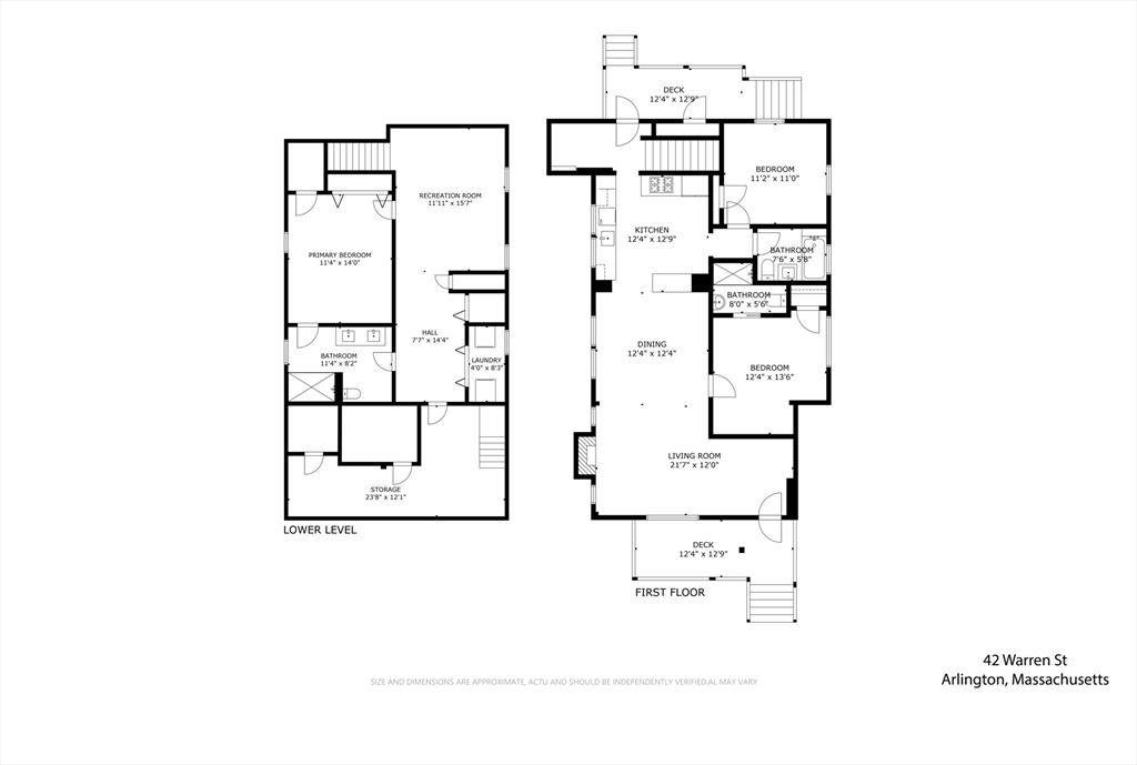 Welcome to 42 Warren St! Spread out over two levels, this 3 bedroom/3 bathroom residence offers space, flexibility, and modern finishes, all in a convenient East Arlington location. With great natural light and a comfortable layout, the main level flows easily from the living room to the dining area to the open-concept kitchen, complete with granite counters and stainless steel appliances. Also included on this level is a full bathroom and two bedrooms including one with an ensuite. The finished lower level features a versatile space perfect for a family room, play room, home office or workout area. You'll also find a spacious 3rd bedroom with another ensuite, ideal for guests, extended family, or a private retreat. Additional highlights include central air, private storage, 2-car parking, and exclusive use of front and back porches plus half of the backyard. Top location close to shopping, dining, and cafes, Arlington Center, Spy Pond, Mystic River, the bike path and much more!