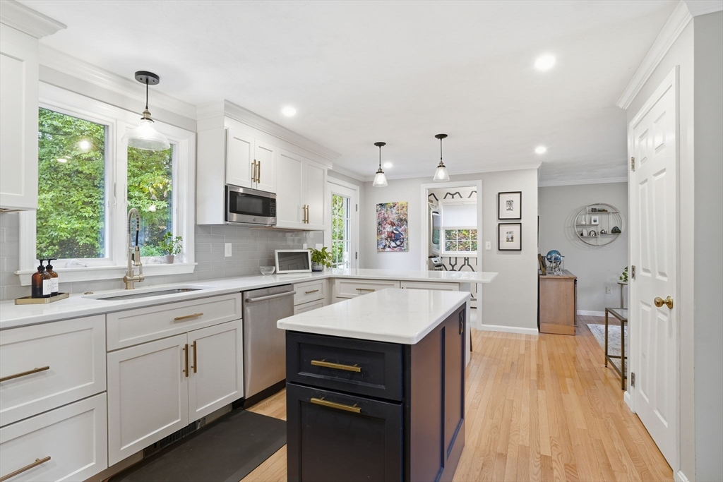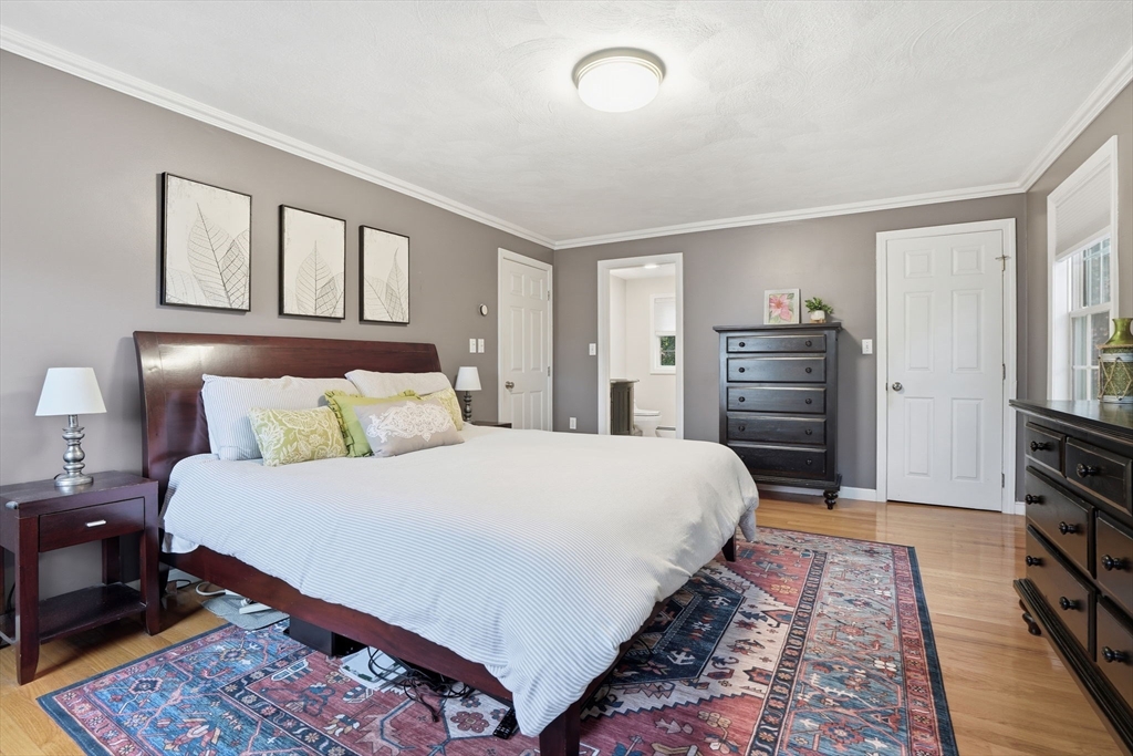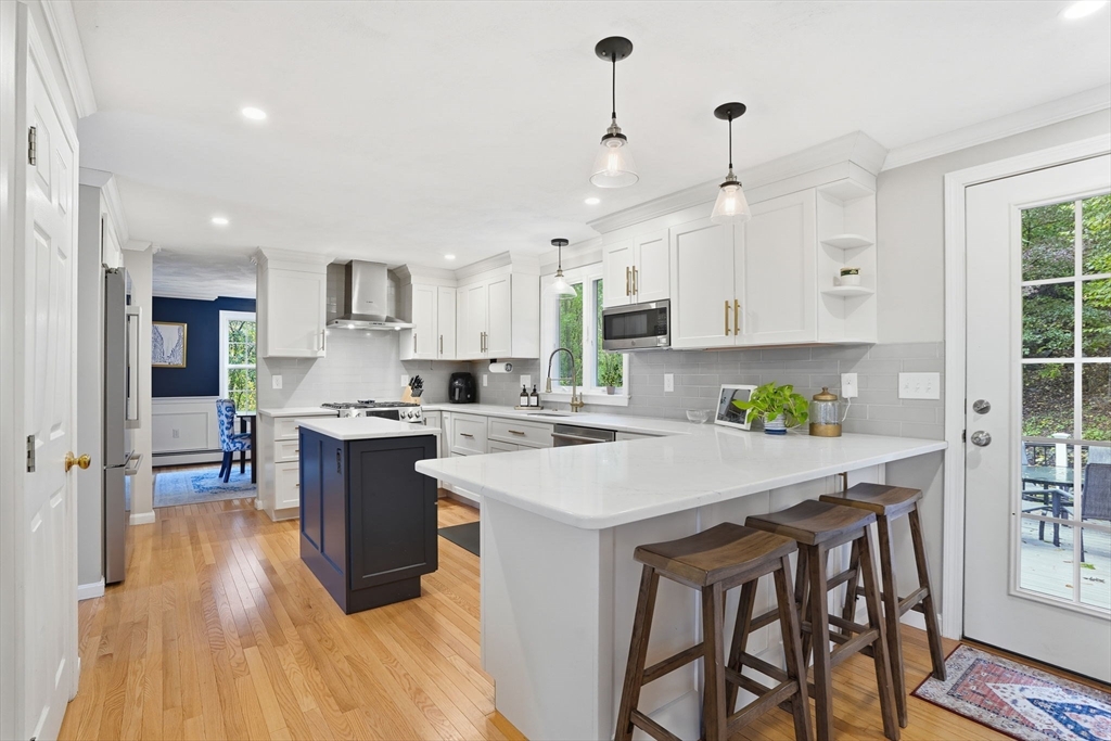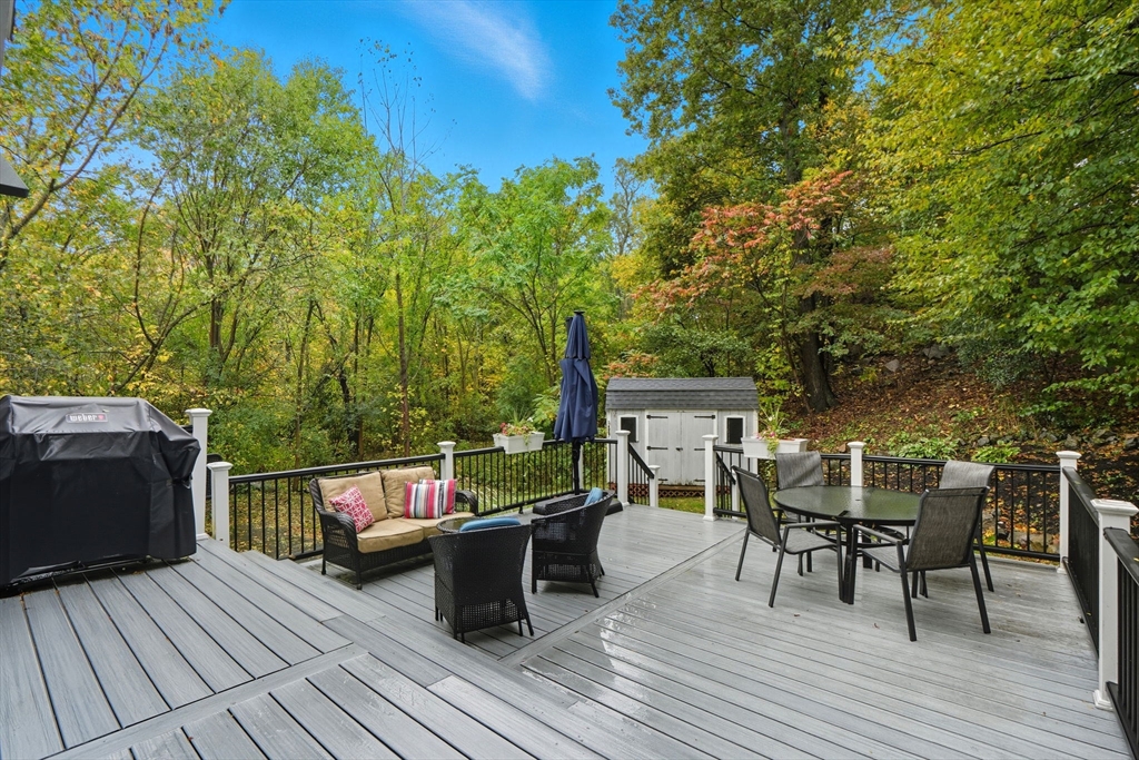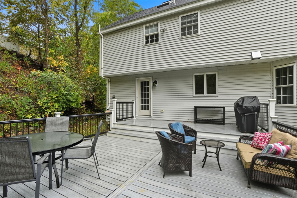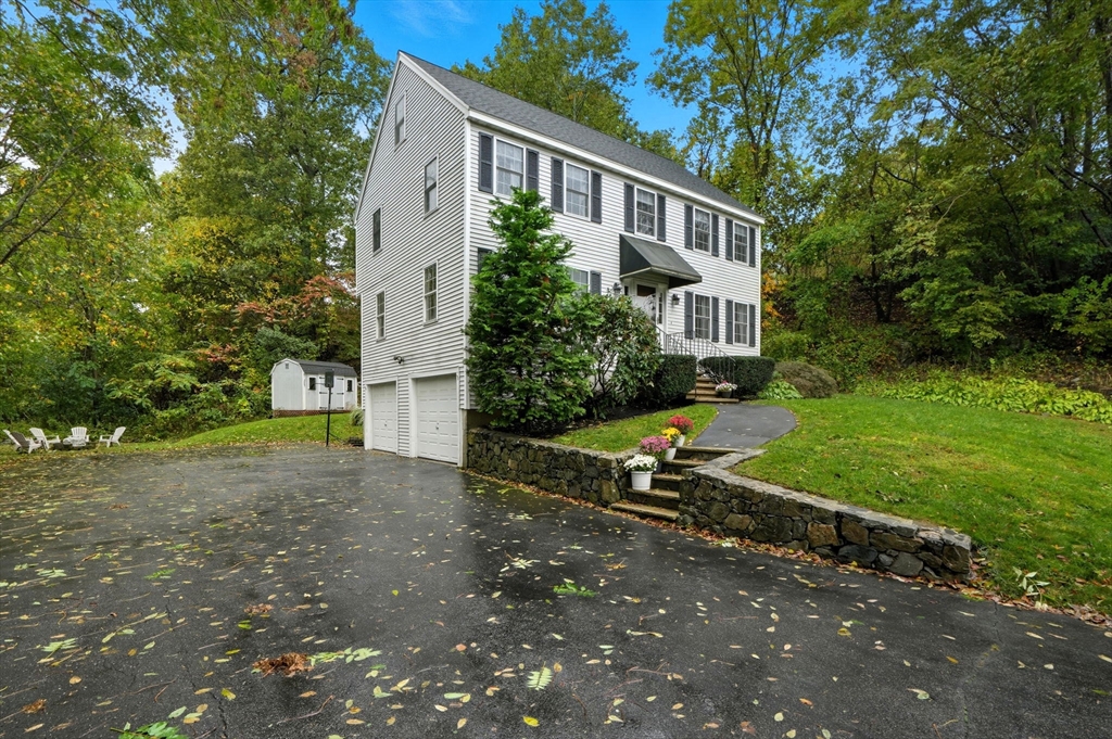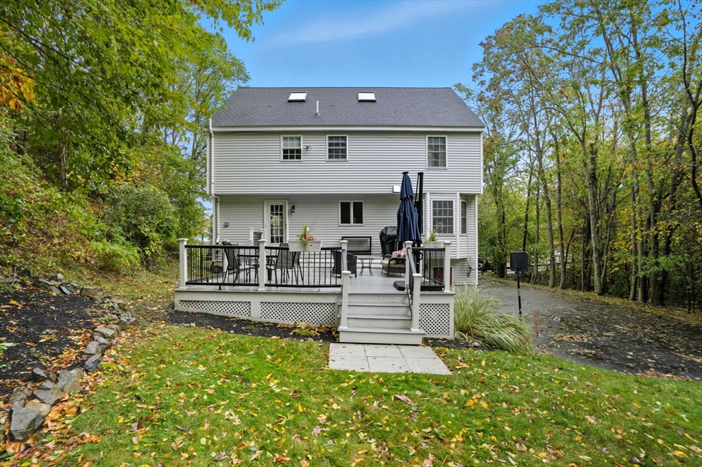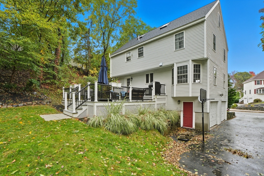 Truly a magnificient & updated property with 2 attached garage parking spaces, all located in quiet cul-de-sac where homes are so rarely available. Main living level offers fully modern and recently renovated kitchen w/ breakfast bar, open to living room w/ fireplace. Dining room w/ bay windows adjacent to addl den / office space plus convenient 1/2 bath & main living level laundry. 2nd floor offers 3 spacious bedrooms, each w/ large closets. Full shared bathroom on this floor for kids/guests. Primary bedroom has custom walk-in closet & ensuite bath w/ double vanity & walk-in shower. Third floor w/ amazing ceiling height & skylights serves as playroom, addl tv room/office/bedroom. Private back yard w/ mature trees & spacious, tiered deck, perfect for entertaining. Loads of storage and bonus workshop area. Outdoor enthusiasts will love nearby Spot Pond, Tri-Community Greenway & Fells Reservation. Convenient to restaurants/shops & a commuter's dream location!