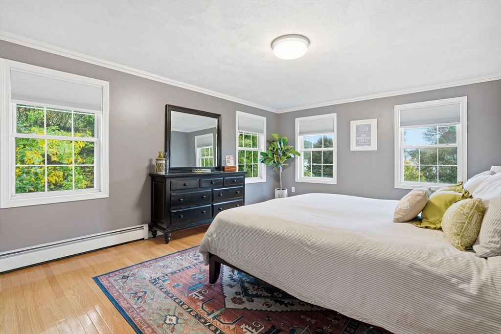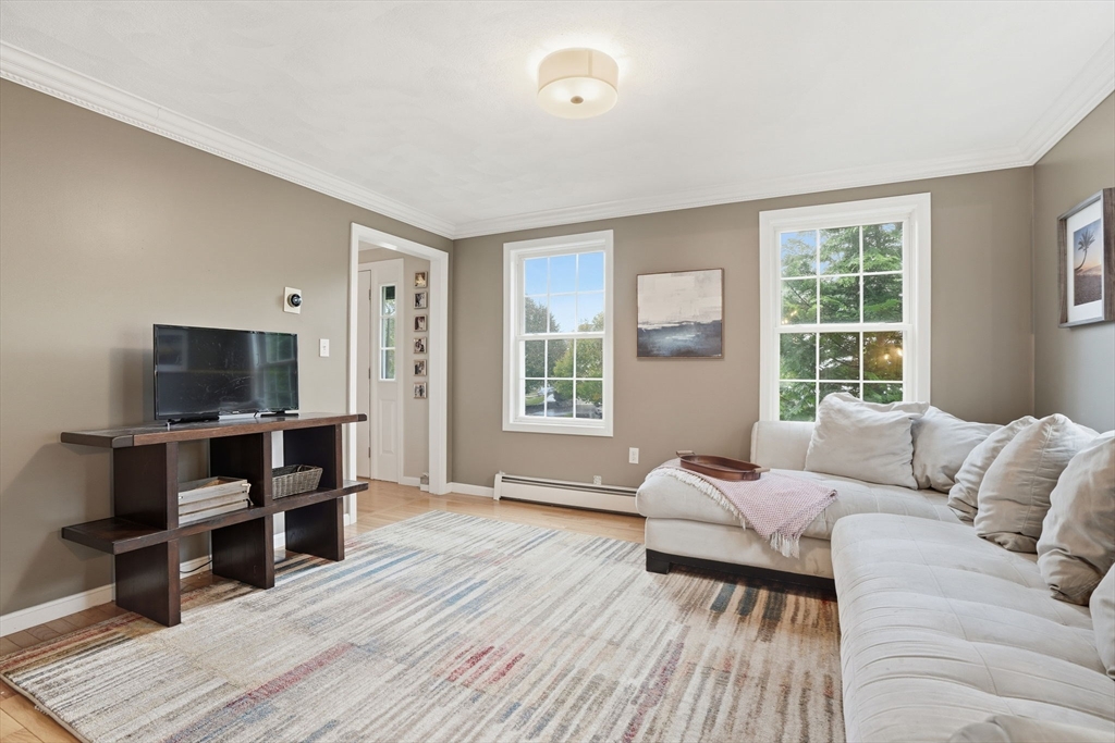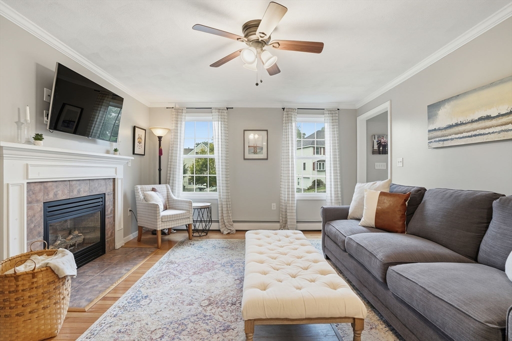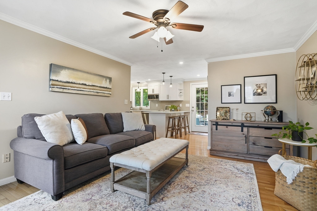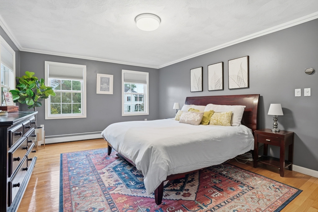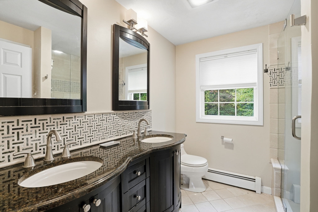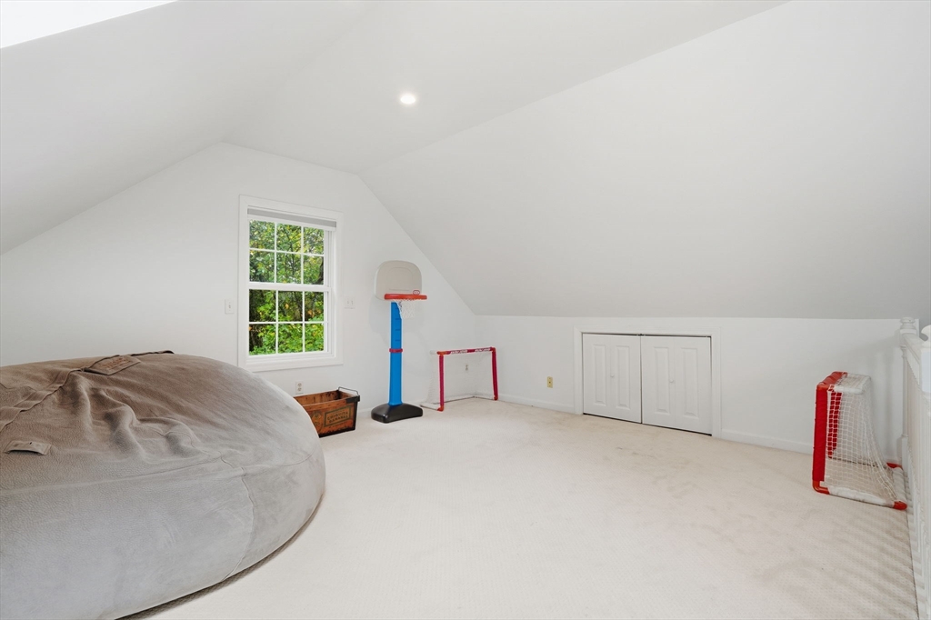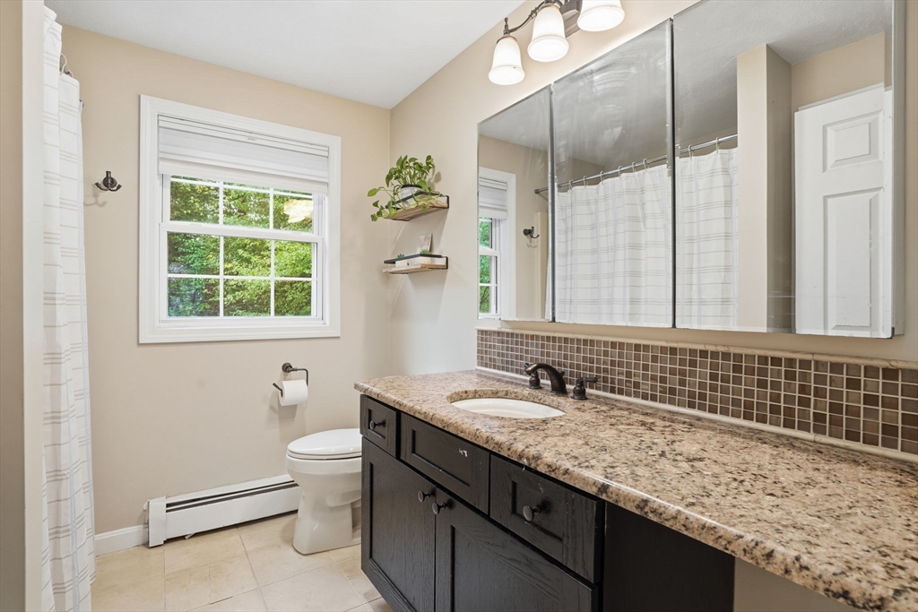Truly a magnificient & updated property with 2 attached garage parking spaces, all located in quiet cul-de-sac where homes are so rarely available. Main living level offers fully modern and recently renovated kitchen w/ breakfast bar, open to living room w/ fireplace. Dining room w/ bay windows adjacent to addl den / office space plus convenient 1/2 bath & main living level laundry. 2nd floor offers 3 spacious bedrooms, each w/ large closets. Full shared bathroom on this floor for kids/guests. Primary bedroom has custom walk-in closet & ensuite bath w/ double vanity & walk-in shower. Third floor w/ amazing ceiling height & skylights serves as playroom, addl tv room/office/bedroom. Private back yard w/ mature trees & spacious, tiered deck, perfect for entertaining. Loads of storage and bonus workshop area. Outdoor enthusiasts will love nearby Spot Pond, Tri-Community Greenway & Fells Reservation. Convenient to restaurants/shops & a commuter's dream location!