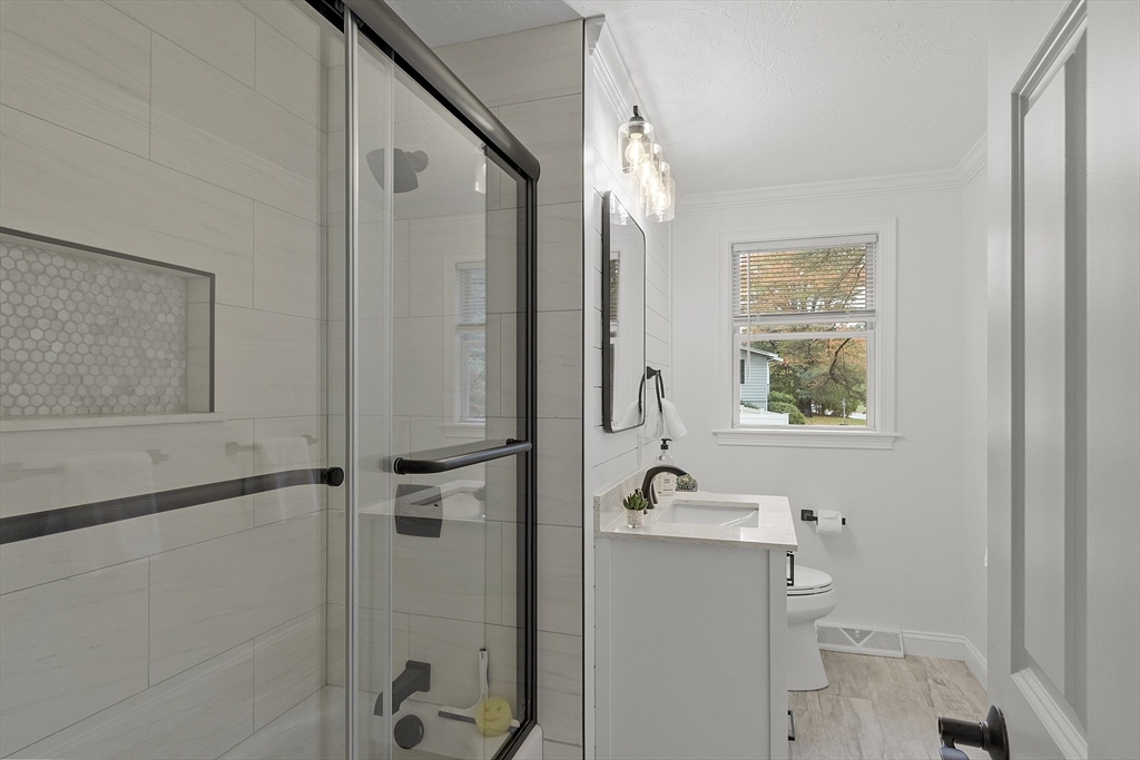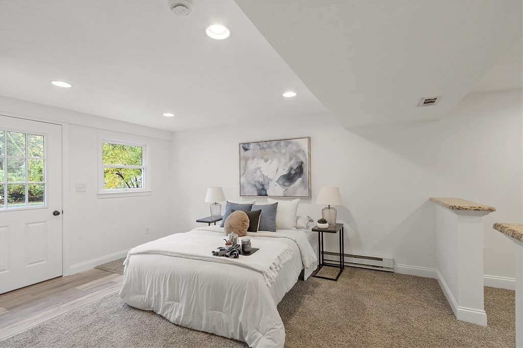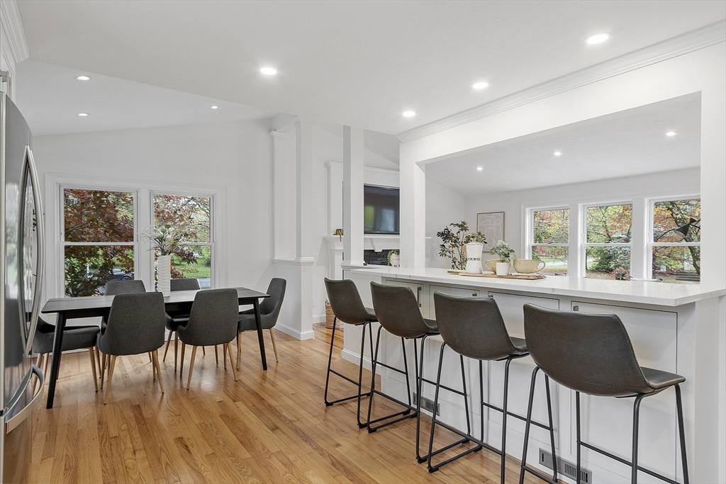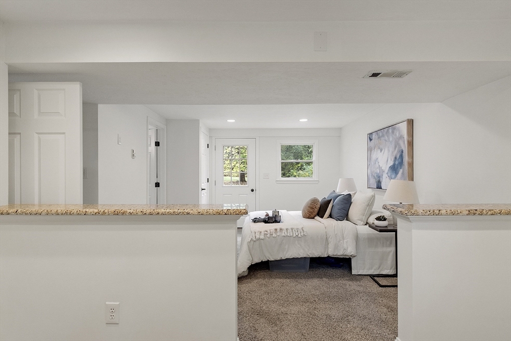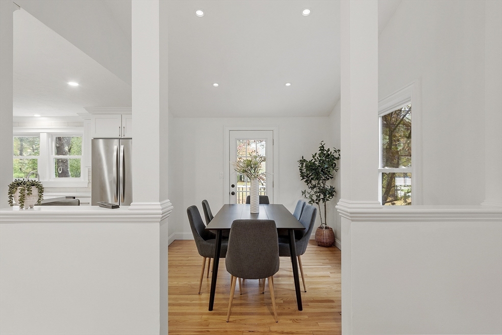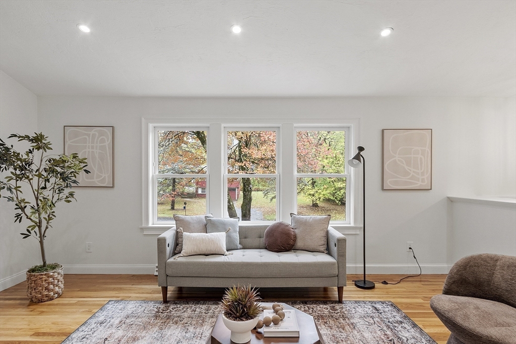 Walk in to this beautifully updated home to the bright, open concept kitchen, living room and dining area. The vaulted ceilings and natural light make this space! The newly upgraded kitchen with custom cabinetry, quartz countertops, a large bar, and all new appliances is functional and beautiful. From the dining area you can walk out to your brand new deck! 3 good size bedrooms and a brand new bathroom and updated 1/2 master bath complete the first floor. Downstairs the options are limitless! The large landing space and family room with built in shelving are light and bright and can be used as an extension of upstairs or maybe as a living area for the potential In-Law, Au-Pair, or ADU. This space includes a full bath, separate entrance from outside, bedroom, and space for a kitchenette! Outside you have a detached 3 car garage with a huge loft and 3 new doors with remote access. New 4 bedroom septic installed in 2025! Easy cut through path to the Loring School! Welcome Home!