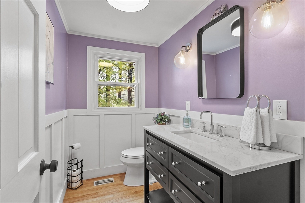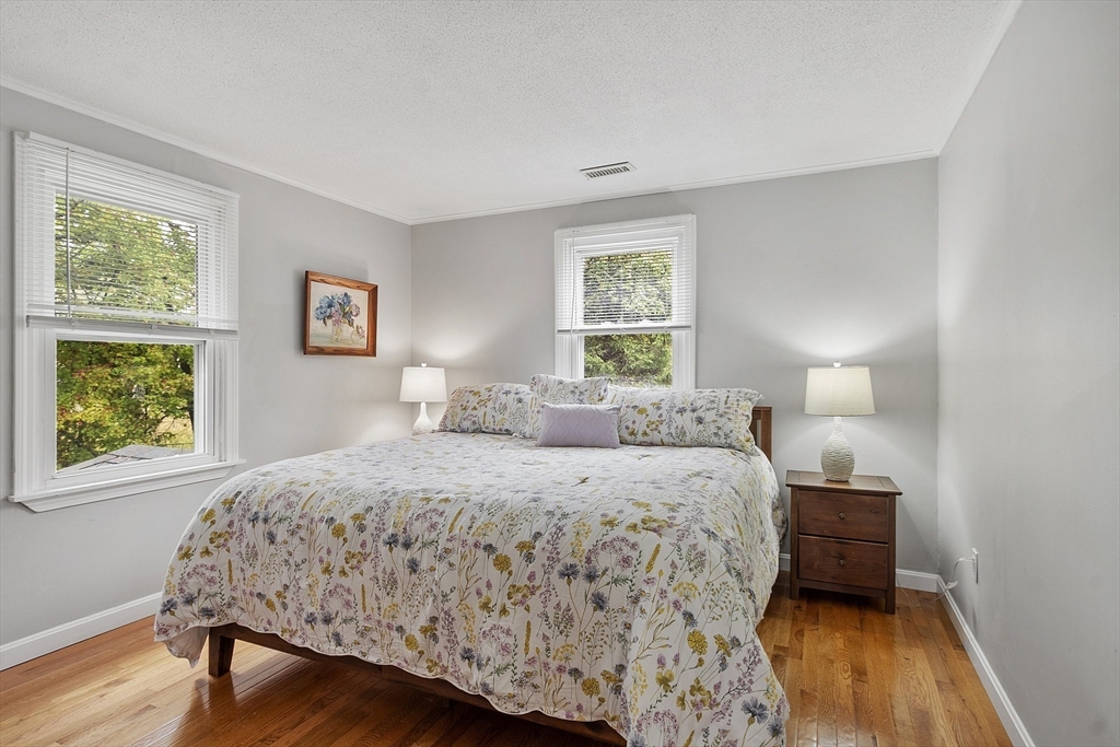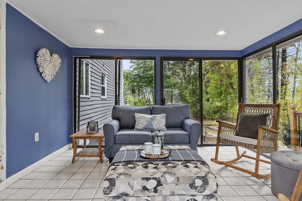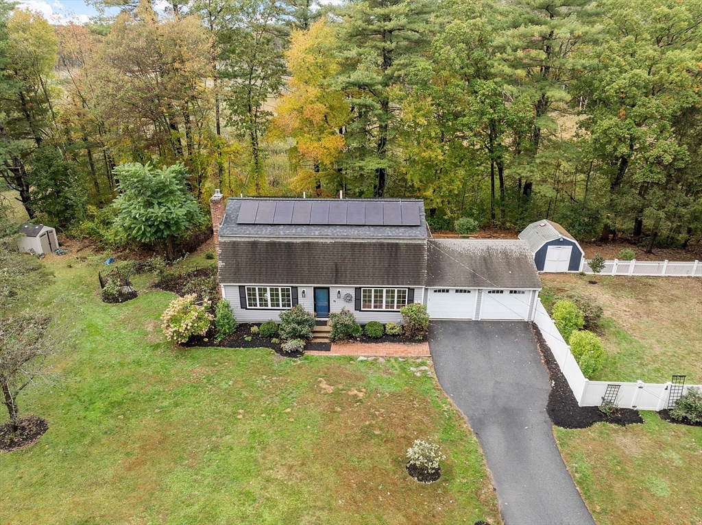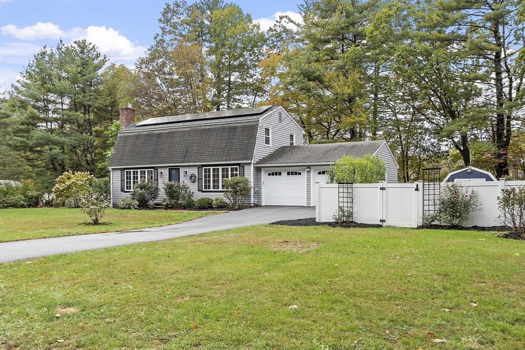 Welcome to this inviting South Westford gem, perfectly situated in a quiet neighborhood with sidewalk & no through traffic. Resting on a level two-acre property with a fenced back yard w/ wooded border, the setting provides both beauty & privacy. Inside, hardwood floors, abundant natural light, & thoughtful updates shine. The heart of the home features a kitchen with stainless steel appliances, induction cooking, granite counters, & crisp white cabinetry. Gather in the family room by the gas fireplace, or unwind in the heated sunroom overlooking nature. Upstairs, the spacious main suite boasts a walk-in closet, office nook, & full bath. With updated bathrooms, a flexible first-floor bedroom, a finished lower level, & energy-saving solar panels, this home offers comfort & efficiency. Recent upgrades include roof, furnace, garage doors, & water heater which adds peace of mind. This home is move-in ready close to schools, shopping, & Route 110 convenience! OFFERS DUE OCT 21, BY 12PM.