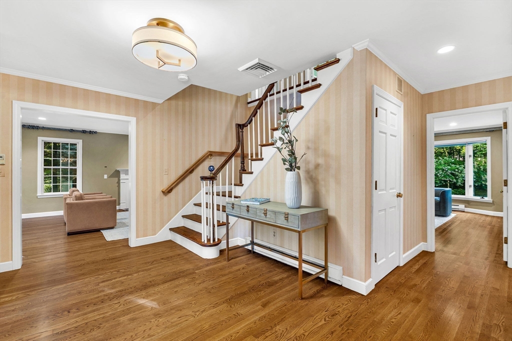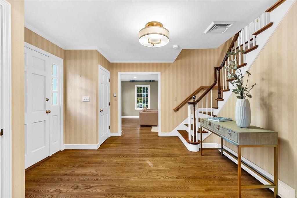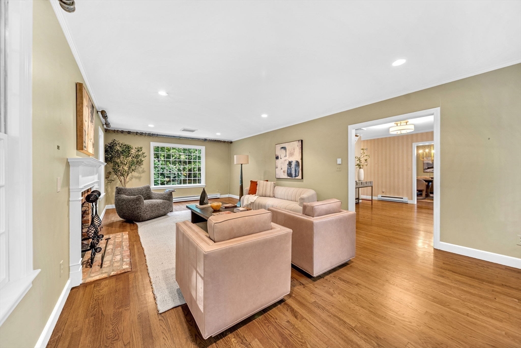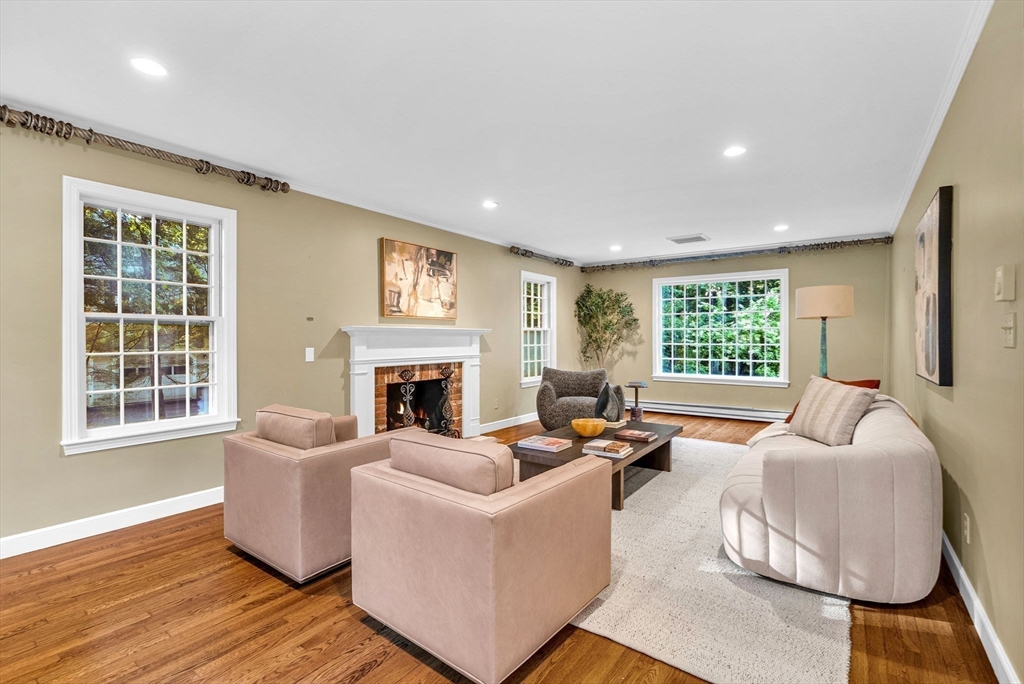 Tucked within one of Needham’s most desirable neighborhoods, 120 Wildwood Drive presents a rare opportunity to own a beautifully maintained Garrison Colonial on a level one-acre lot. Lovingly owned by the same family for decades, this inviting home offers spacious, sun-filled rooms and the perfect blend of comfort and potential. Step inside to a large front foyer that leads to a family room with a wood-burning fireplace and a picture window overlooking the expansive yard. The eat-in kitchen opens to the lush backyard through a slider, perfect for everyday living and gatherings. A spacious dining room, den/office with bay window, and an updated half bath round out the main level. Upstairs are 4 large bedrooms, including a primary suite with full bath, plus another full bath. The lower level provides additional finished space ideal for recreation, ready for your personal touch. Attached 2-car attached garage and outstanding location close to Needham center and train to Boston.