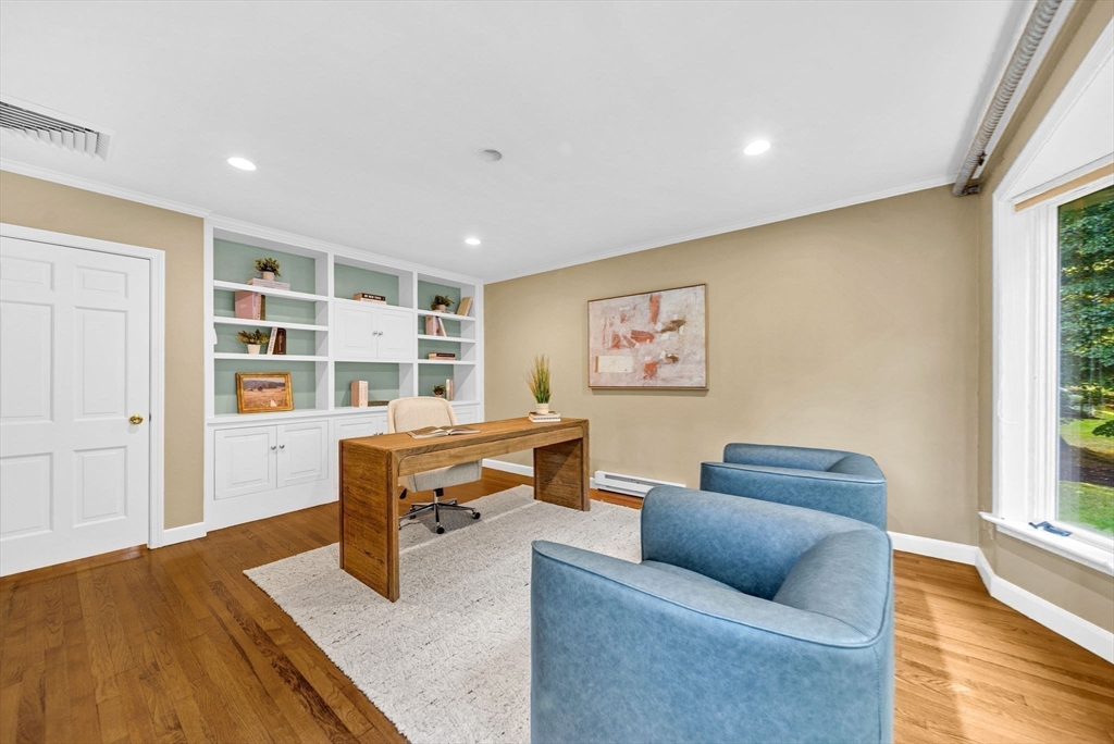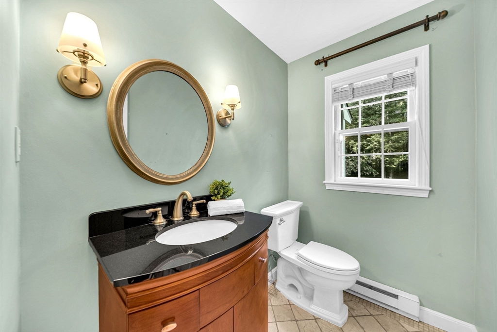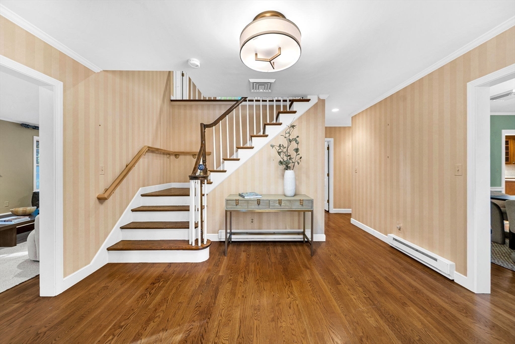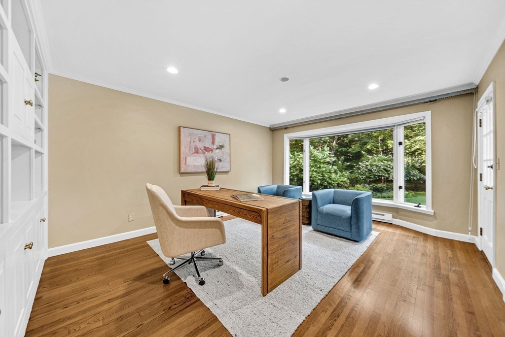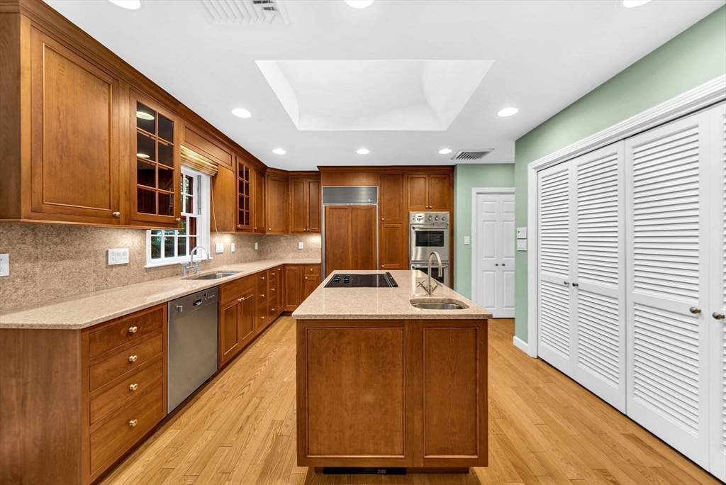Tucked within one of Needham’s most desirable neighborhoods, 120 Wildwood Drive presents a rare opportunity to own a beautifully maintained Garrison Colonial on a level one-acre lot. Lovingly owned by the same family for decades, this inviting home offers spacious, sun-filled rooms and the perfect blend of comfort and potential. Step inside to a large front foyer that leads to a family room with a wood-burning fireplace and a picture window overlooking the expansive yard. The eat-in kitchen opens to the lush backyard through a slider, perfect for everyday living and gatherings. A spacious dining room, den/office with bay window, and an updated half bath round out the main level. Upstairs are 4 large bedrooms, including a primary suite with full bath, plus another full bath. The lower level provides additional finished space ideal for recreation, ready for your personal touch. Attached 2-car attached garage and outstanding location close to Needham center and train to Boston.