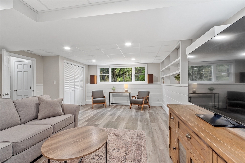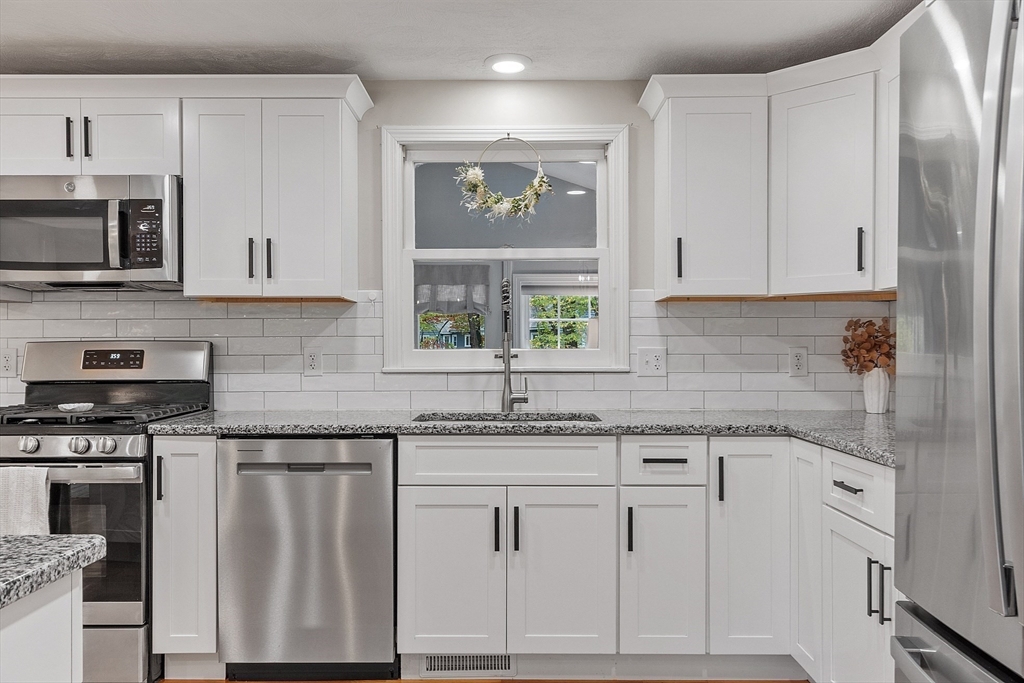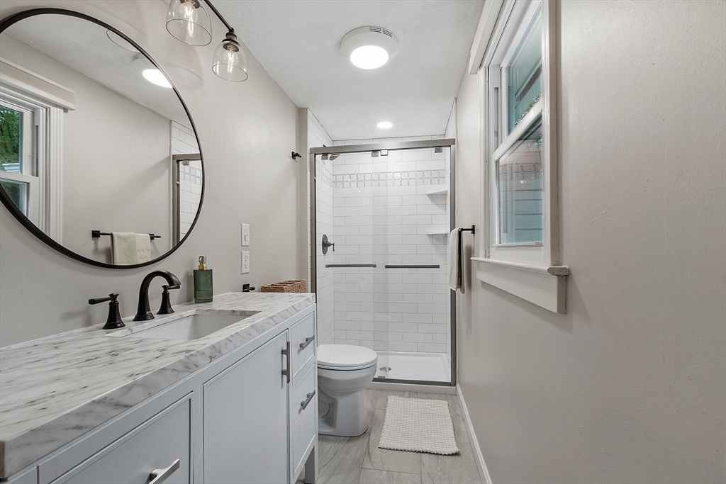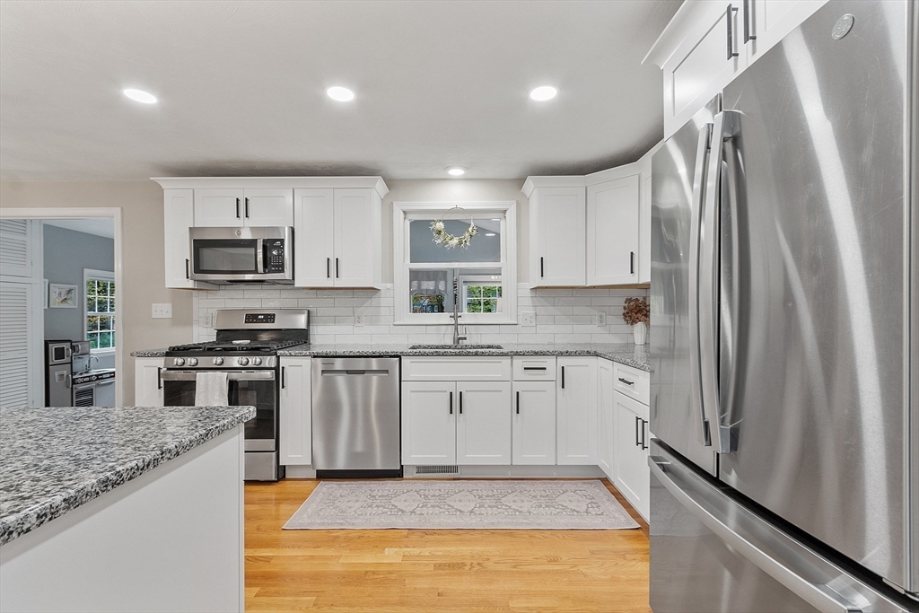 Everything has been done in this beautifully updated 3-bedroom, 2-bath home offering a bright, open-concept layout perfect for today’s lifestyle. The spacious living room features a wood-burning fireplace and flows seamlessly into the dining area and kitchen. The primary bedroom includes double closets and a private bath, while the second full bath features a double vanity. The finished lower level provides a cozy home office as well as additional flexible living space—ideal for a bonus room, media room, workout area. Step outside to a large backyard with a paver patio, perfect for relaxing or entertaining. Major updates within the past five years include new windows, plumbing, electric, roof, gutters, insulation, and A/C. Located in an amazing neighborhood close to Westford’s town center, highways, and top-rated schools, this home combines comfort, convenience, and community in one perfect package. Simply move in and enjoy. Welcome Home!