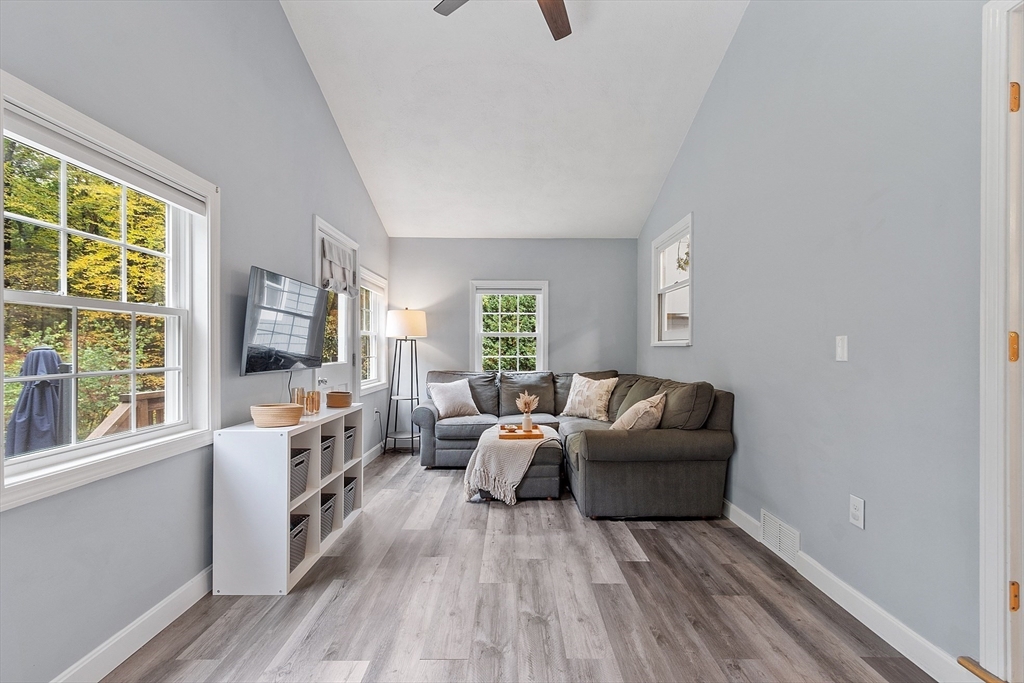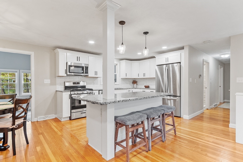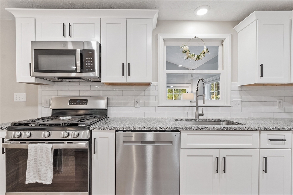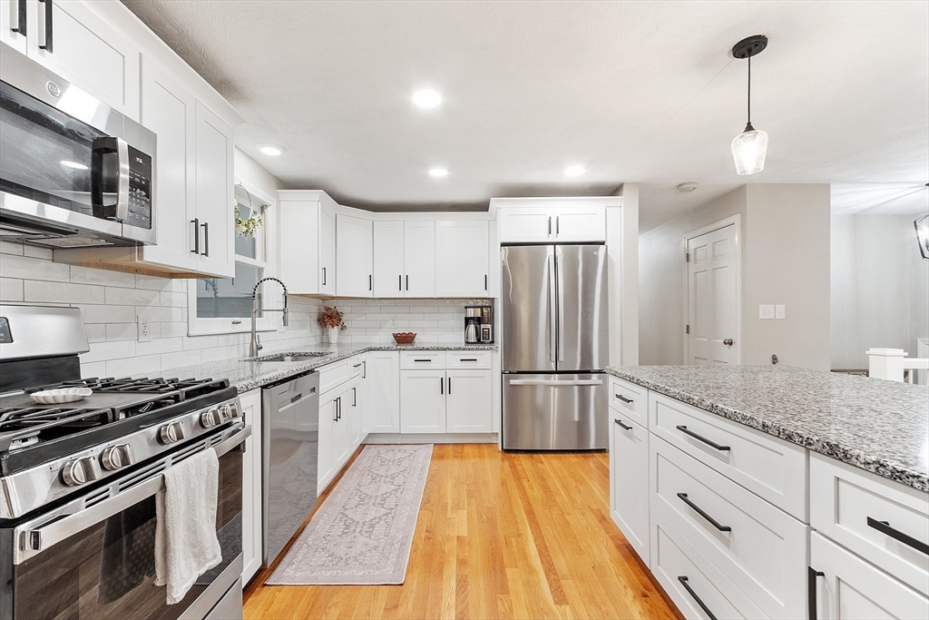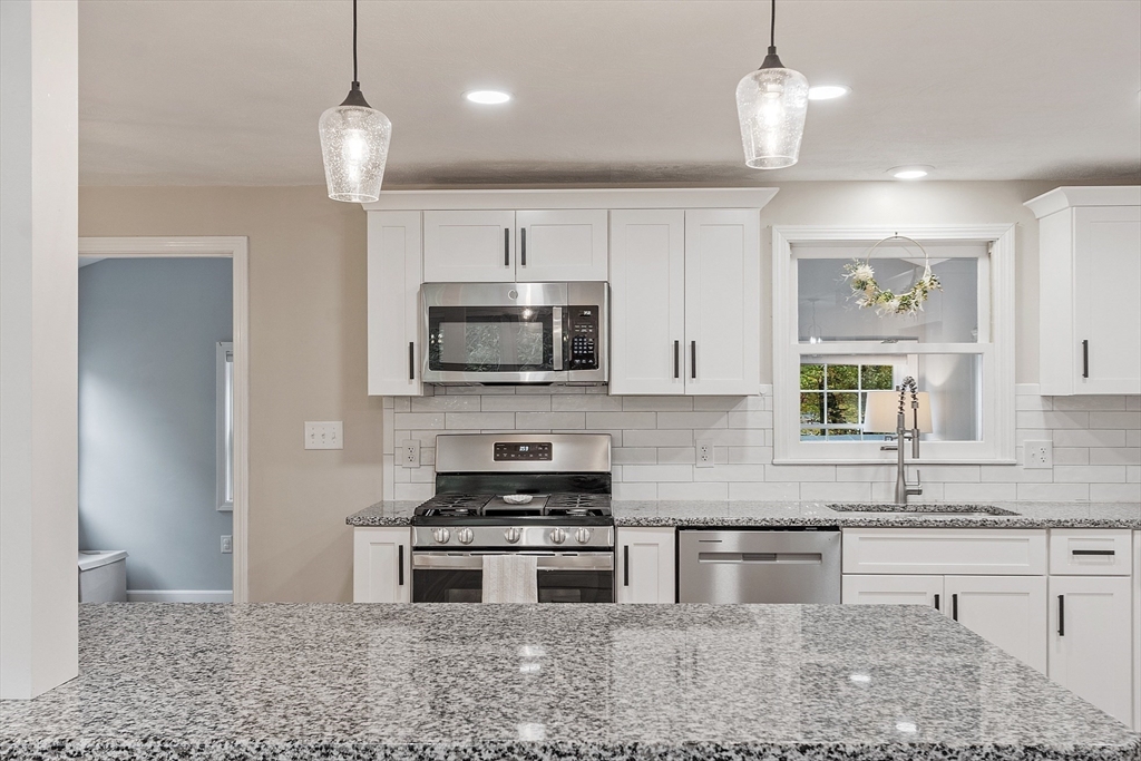 Everything has been done in this beautifully updated 3-bedroom, 2-bath home offering a bright, open-concept layout perfect for today’s lifestyle. The spacious living room features a wood-burning fireplace and flows seamlessly into the dining area and kitchen. The primary bedroom includes double closets and a private bath, while the second full bath features a double vanity. The finished lower level provides a cozy home office as well as additional flexible living space—ideal for a bonus room, media room, workout area. Step outside to a large backyard with a paver patio, perfect for relaxing or entertaining. Major updates within the past five years include new windows, plumbing, electric, roof, gutters, insulation, and A/C. Located in an amazing neighborhood close to Westford’s town center, highways, and top-rated schools, this home combines comfort, convenience, and community in one perfect package. Simply move in and enjoy. Welcome Home!