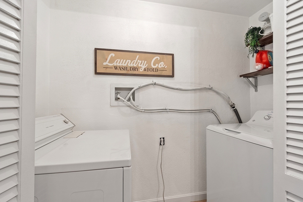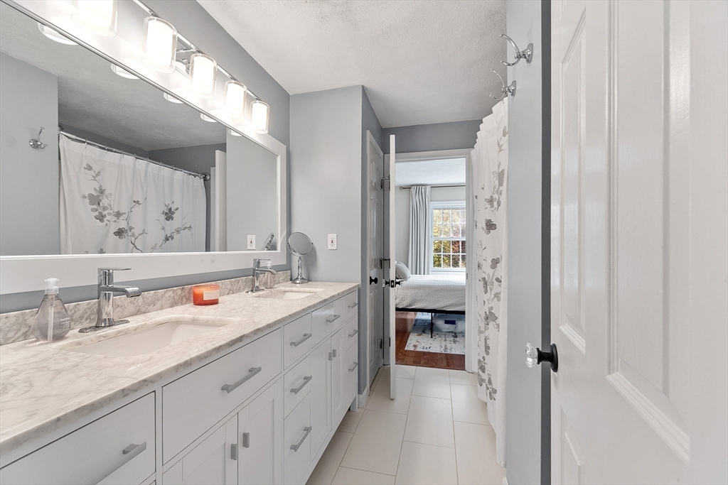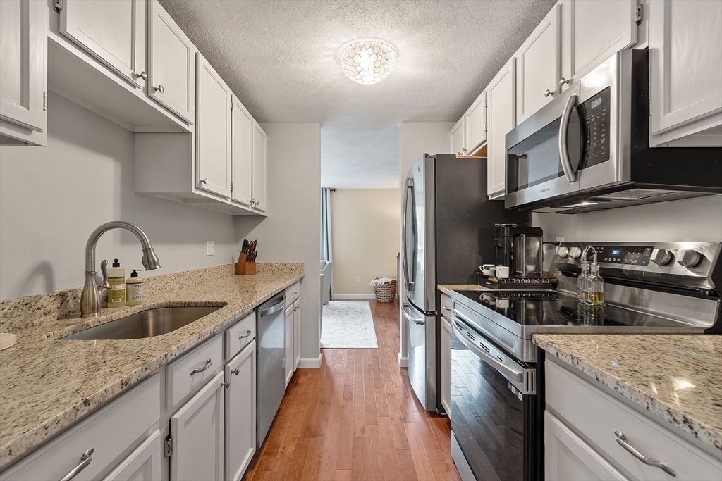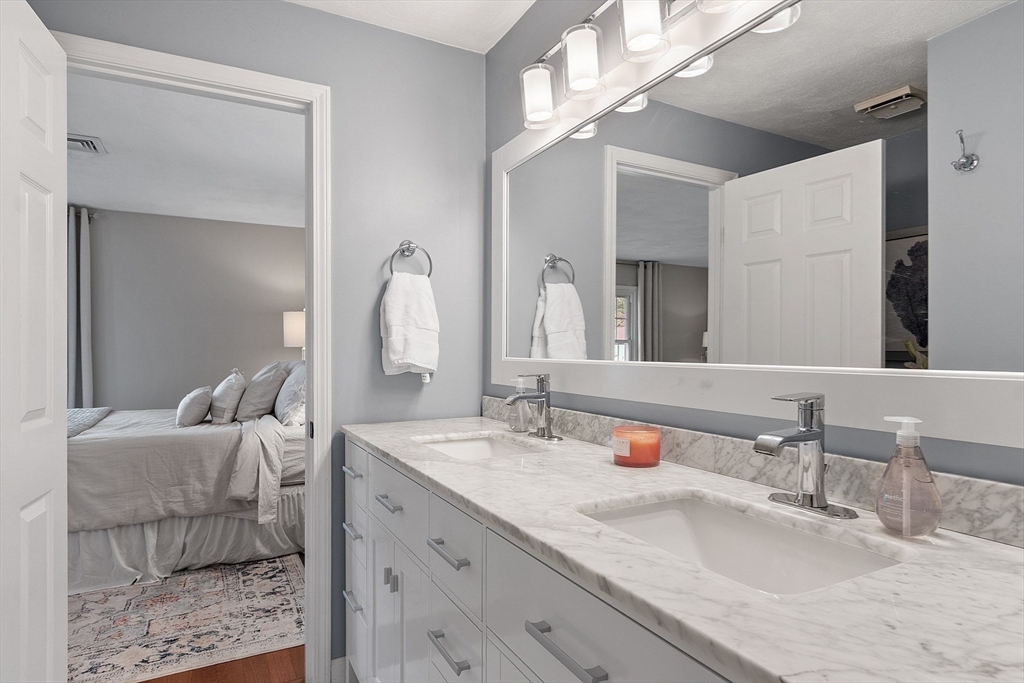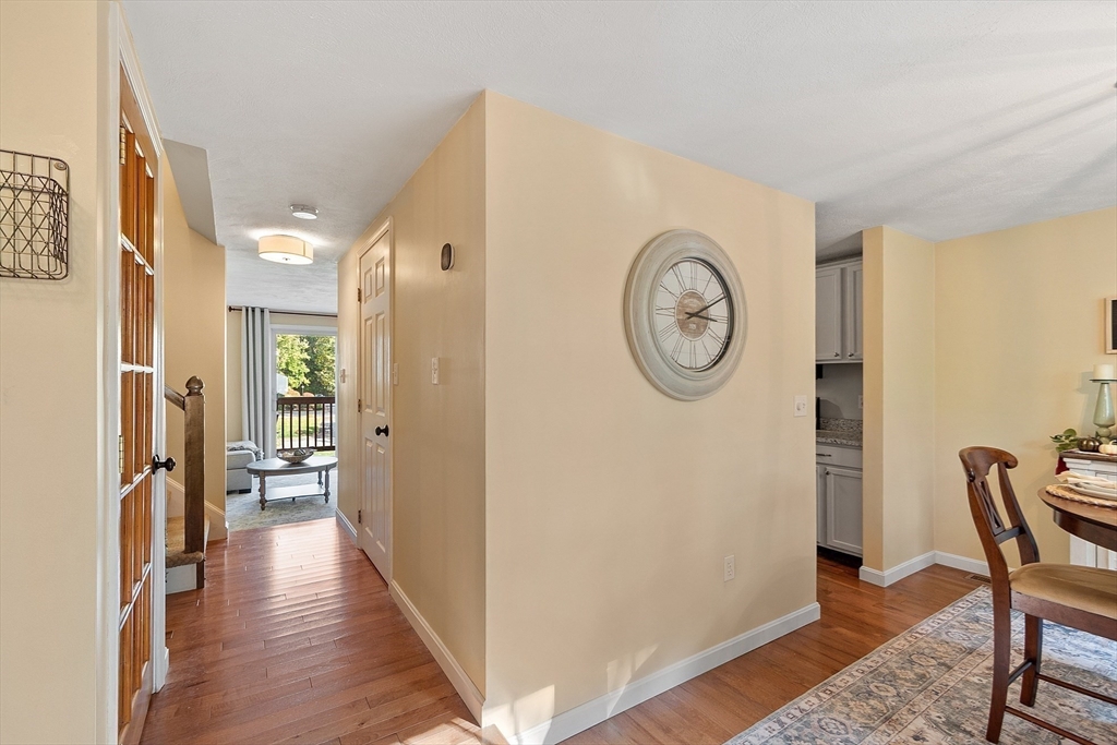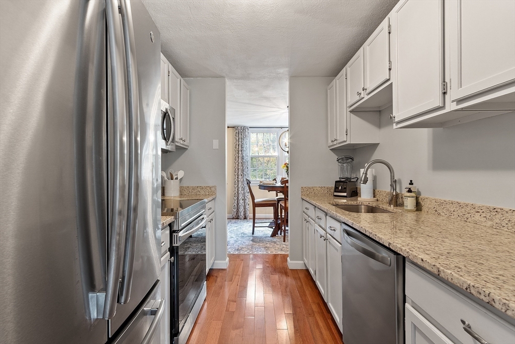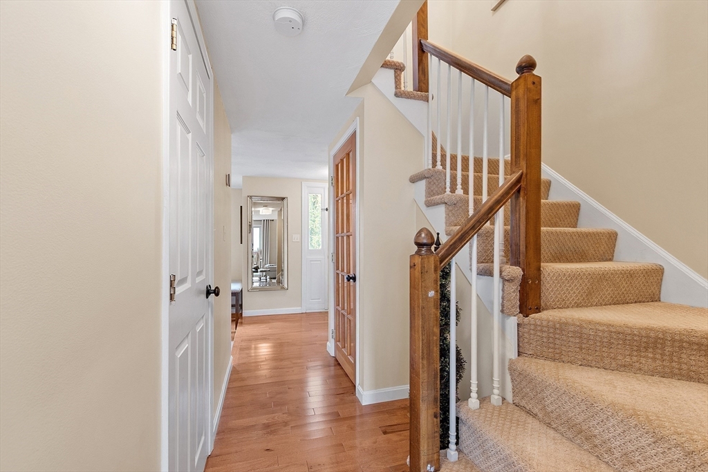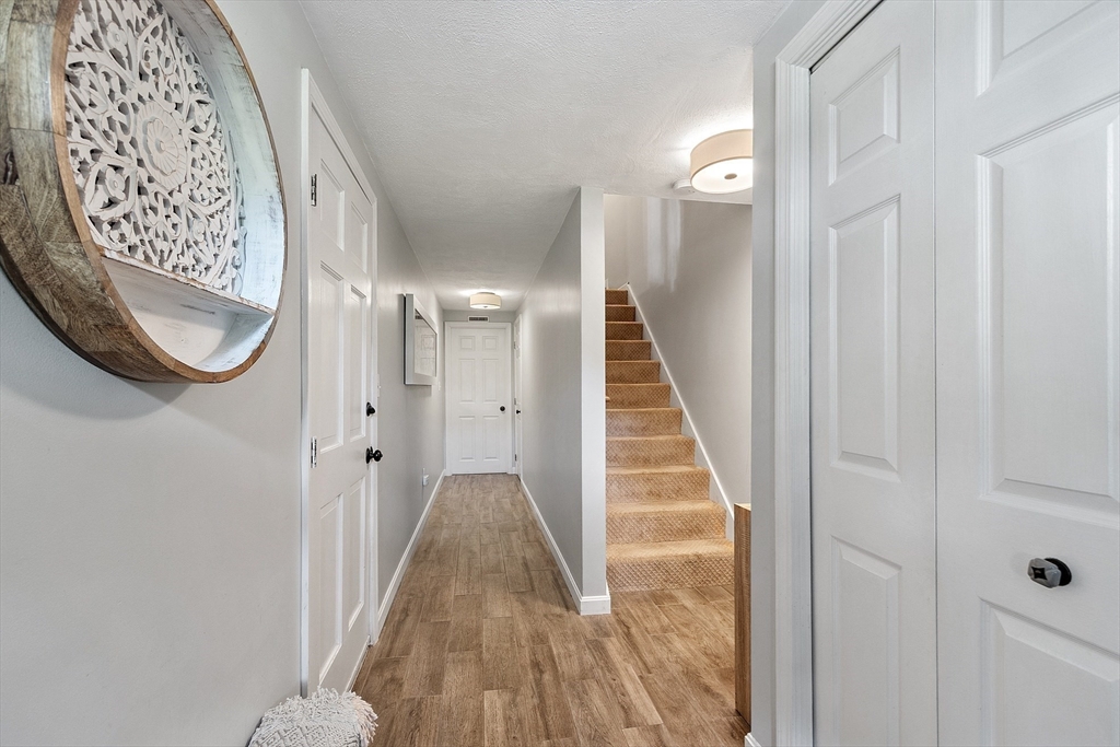 Fully Renovated END Unit in Sought-After Carter Green Condominiums!!! Beautifully renovated from top to bottom, this sun-filled end-unit townhouse offers a perfect blend of modern style and comfort. The main and upper levels feature elegant walnut hardwood flooring, complemented by a sleek kitchen with granite countertops and stainless steel appliances. The warm and cozy living and dining areas lead to a private deck with peaceful views. Upstairs offers two spacious bedrooms, a stylish full bath w/ double vanity, and convenient in-unit laundry. Additional highlights include updated lighting and fixtures throughout, an attached garage with extra visitor parking beside the unit, and a finished lower level with non-slip tile flooring. Enjoy a turnkey lifestyle in this pet-friendly community with tennis courts, a clubhouse, and close proximity to shopping, dining, and major commuter routes.