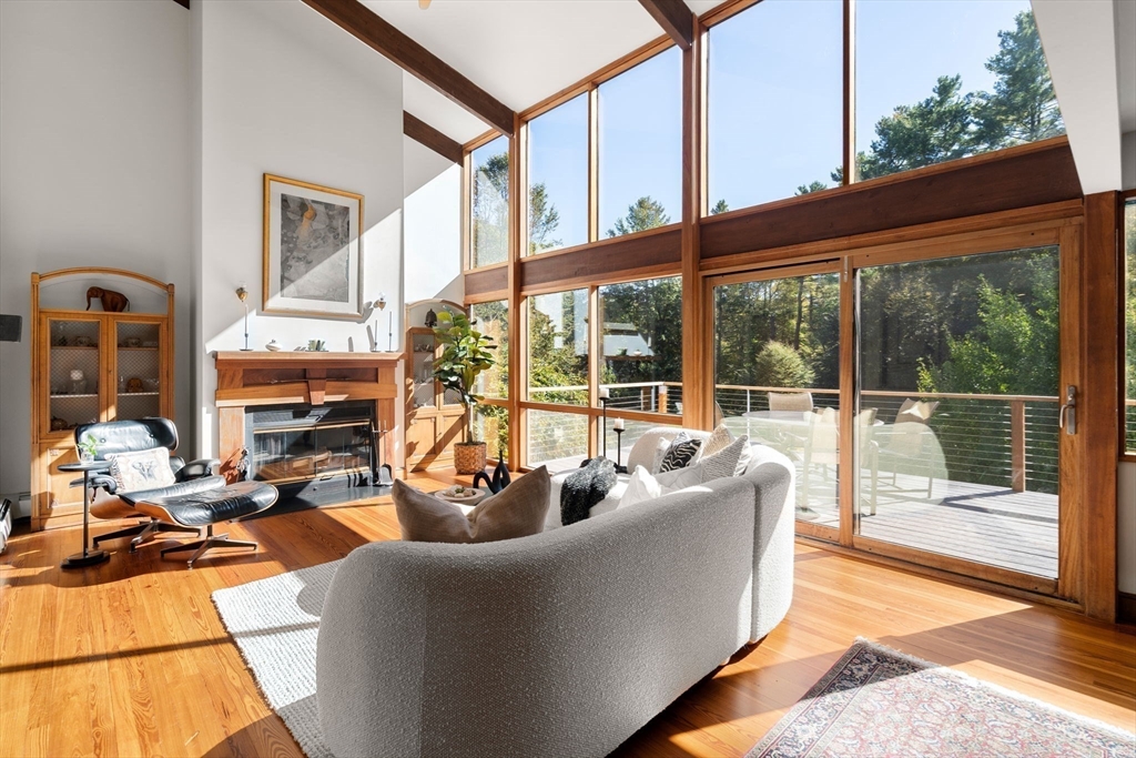 Set in a popular neighborhood this carefully crafted home offers a contemporary style and beautiful views from the private 3+ acres of land yet boasts a walk to all location. High ceilings, spacious rooms, open floor plan and walls of glass allow natural light to beam throughout. There are three finished floors of living space including an aupair/inlaw. Move in ready this home recently went through extensive renovations offering a natural flow for entertaining or just enjoying with family and friends. Expanded kitchen with large island, dining room, family room with vaulted ceiling has access to the back deck. There is a guest room/office, full bath, laundry room, mudroom, heated garage complete first floor. Second floor hosts the spacious primary with loft and spa like bath, good sized additional bedrooms, custom library with builtins. The lower level has a rec room, full gym, guest bedroom, full bath and kitchenette that opens to a patio and manicured back yard. Not to be missed.