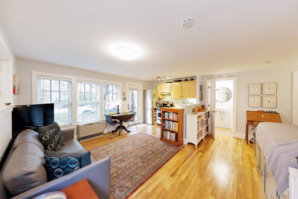 Rare opportunity to own this private CORNER STUDIO that seamlessly blends into the enchanting landscape of Union Place. Our perfect “Cabin in the City” optimizes sunshine with 2 private glass door entrances, double exposure of windows and surrounded by beautiful outdoor space. The newly renovated bathroom, updated kitchen and custom bed platform with built-in storage elevate this studio's sleek, modern design. Savor a moment of serenity under a canopy of trees, while walking the brick pathways through famed architect David Aposhian’s utopian development. Condo Fees include heat, hot water and complimentary laundry facilities (in addition to standard inclusions). Parking available to rent in garage on Webster Ave. Become a part of the delightful Union Place community, walkable to bustling Union and Inman Squares, and the Union Square T-stop. Pets OK. Unit has an altruistic Deed Restriction, making residency at Union Place one of the most sought after.
