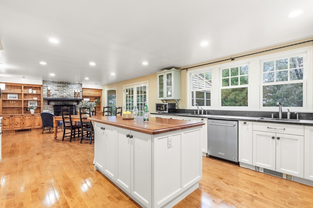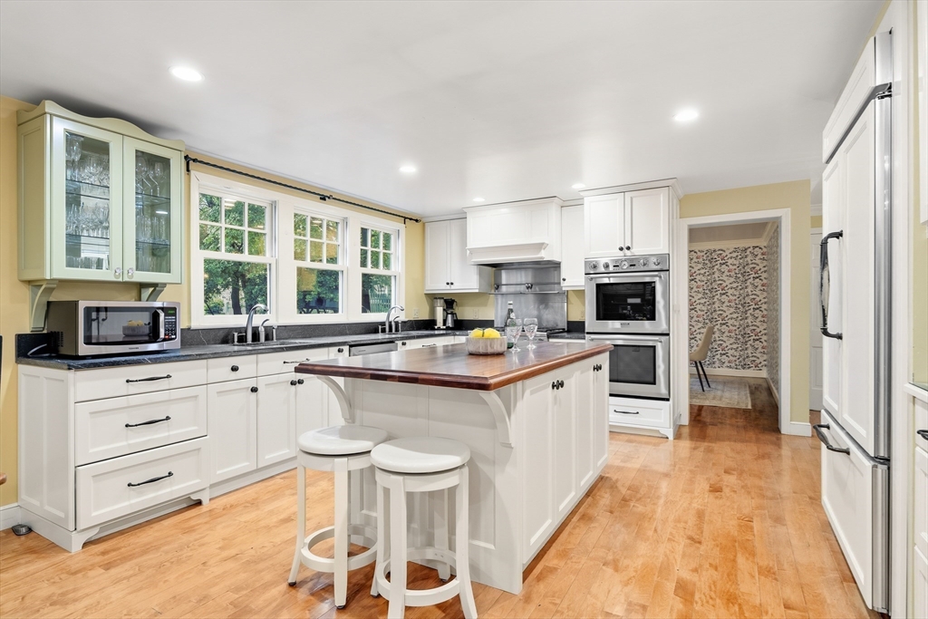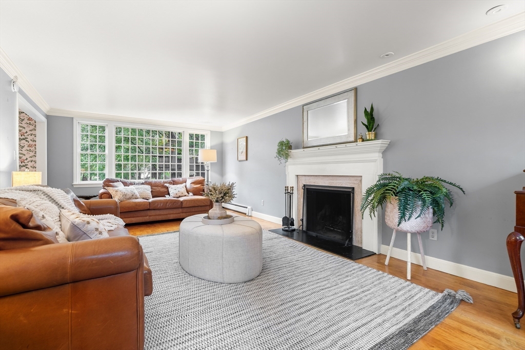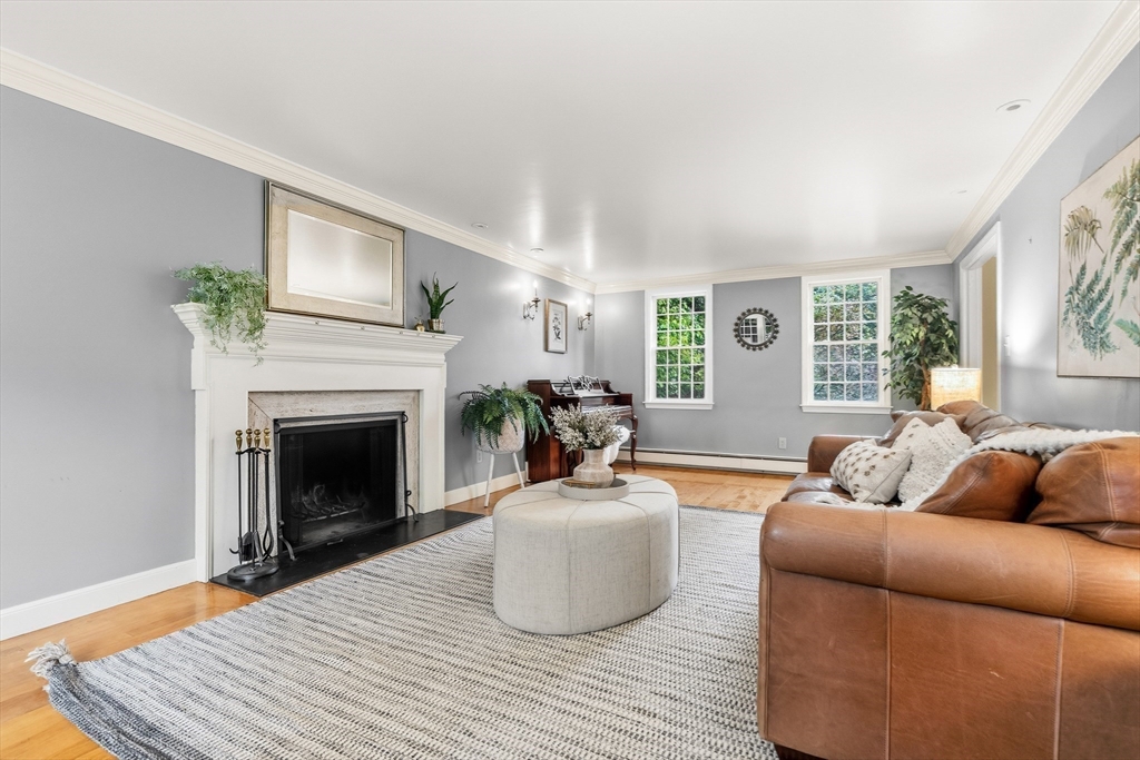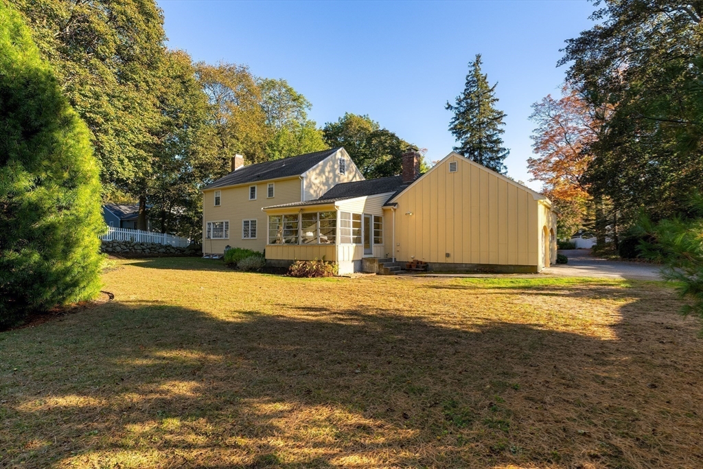 Your Private Retreat in Reading’s Coveted West Side. Set on a private, estate-like lot of over an acre, this exceptional colonial blends timeless elegance with modern comfort. The expansive kitchen is a chef’s dream, with custom cabinetry, double ovens and sinks, generous workspaces, and a cozy fireplace with built-ins opening to the sunroom and garden. Enjoy easy flow to the formal dining room, fireplaced living room, and inviting den/office--perfect for entertaining or quiet evenings at home. Upstairs offers four spacious bedrooms, including a serene primary suite with private bath and dressing room, plus a guest bath with double sinks. The lower level features a bright open playroom anchored by another fireplace. A welcoming farmer’s porch overlooks lush gardens, while a mudroom with laundry and bath, and an attached two-car garage, complete this beautifully maintained home offering space, privacy, and classic New England grace.