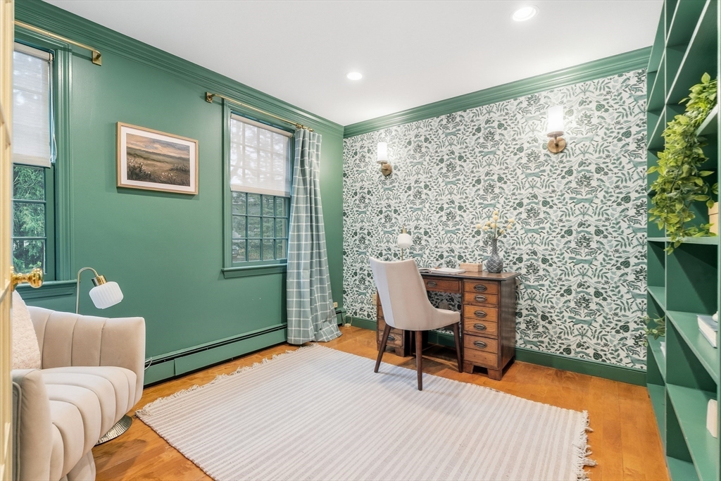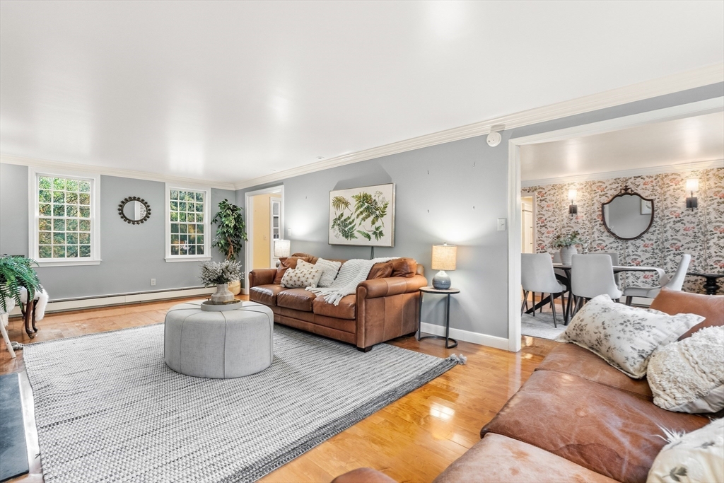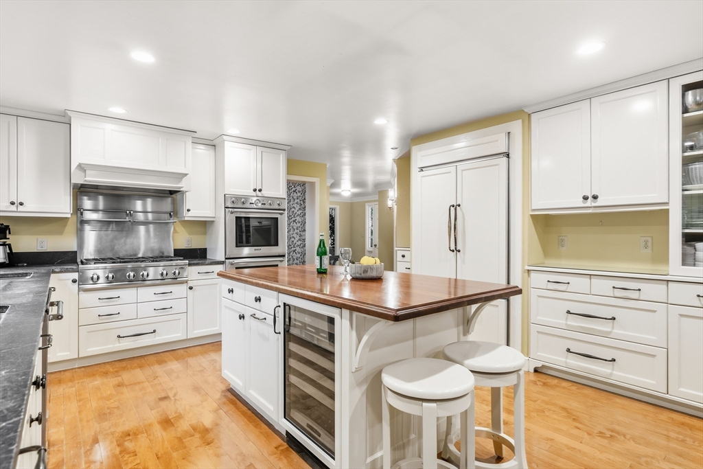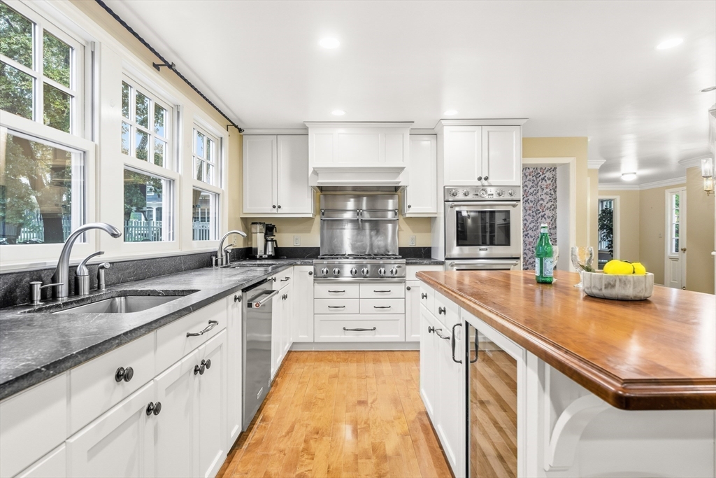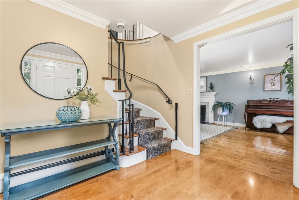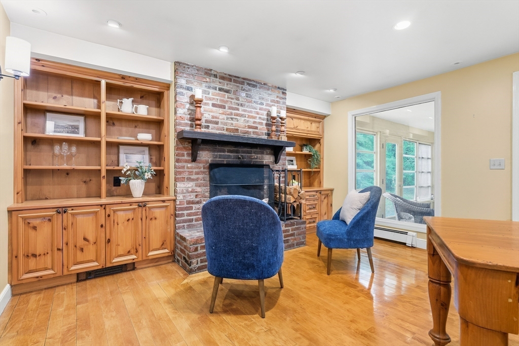 Your Private Retreat in Reading’s Coveted West Side. Set on a private, estate-like lot of over an acre, this exceptional colonial blends timeless elegance with modern comfort. The expansive kitchen is a chef’s dream, with custom cabinetry, double ovens and sinks, generous workspaces, and a cozy fireplace with built-ins opening to the sunroom and garden. Enjoy easy flow to the formal dining room, fireplaced living room, and inviting den/office--perfect for entertaining or quiet evenings at home. Upstairs offers four spacious bedrooms, including a serene primary suite with private bath and dressing room, plus a guest bath with double sinks. The lower level features a bright open playroom anchored by another fireplace. A welcoming farmer’s porch overlooks lush gardens, while a mudroom with laundry and bath, and an attached two-car garage, complete this beautifully maintained home offering space, privacy, and classic New England grace.