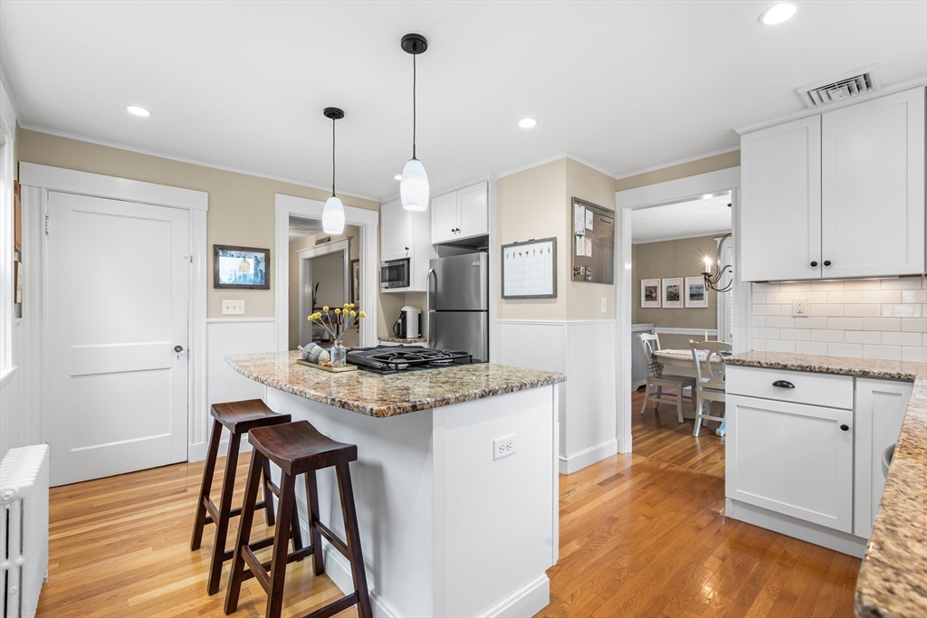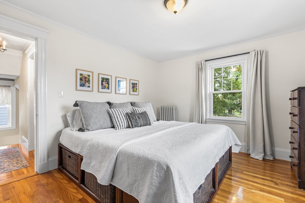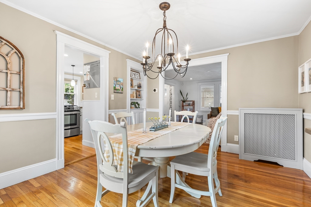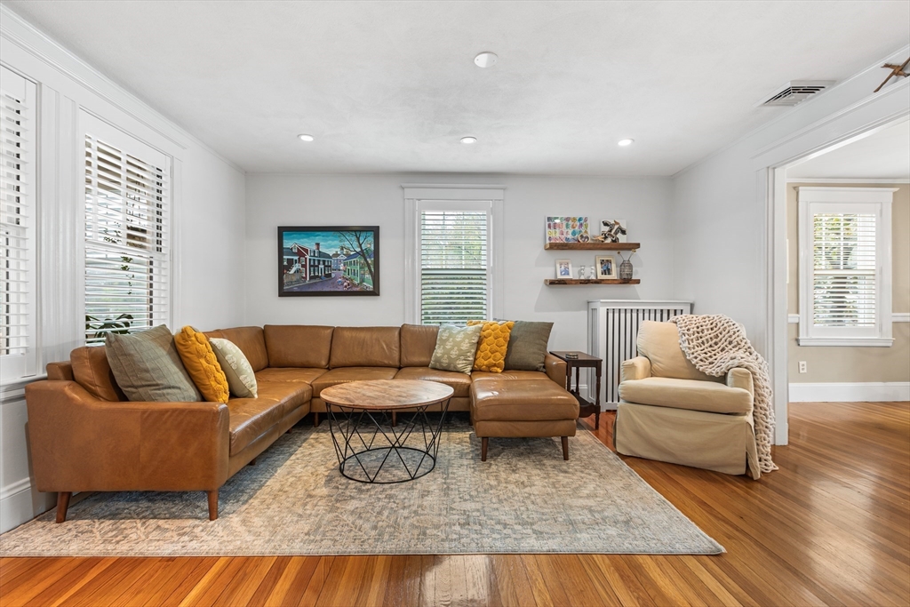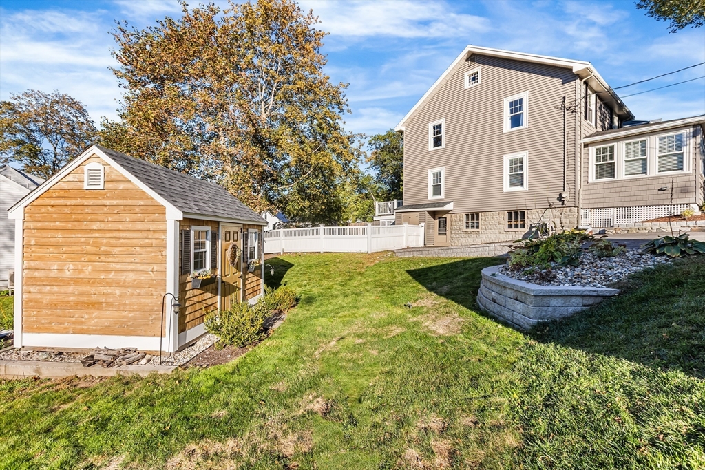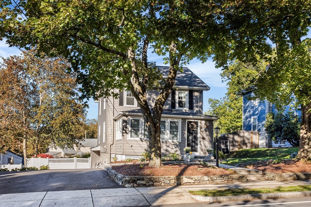 Pride of ownership is evident the moment you pull up & see this quintessential New England home. With amazing curb appeal, set on the corner of one of Reading’s favorite Birch Meadow neighborhoods, get ready to call this beauty yours. Upon entering, you’re greeted by a cozy family room w/window seat & charming built-ins. Fully renovated kitchen features center island & ample sunlight. Spacious living room open to the dining area sets the tone for the upcoming holidays, w/hardwood floors connecting all rooms on the main level. Upstairs are 4 BRS w/updated tiled BA & bonus walk-up attic, ideal for future expansion. The lower level offers plenty of storage & bonus gym. Enjoy the beautiful outdoor space w/new siding, shed, deck & masonry work. Located just minutes from the school complex & downtown Reading, offering train into Boston, coffee shops, trendy restaurants, fitness studios, & charming boutiques. Time to ditch the city hustle & set roots in a community where you’ll feel at home.