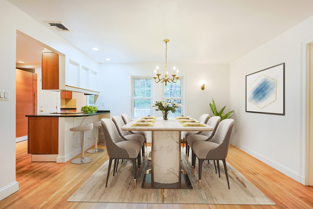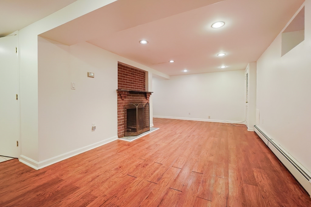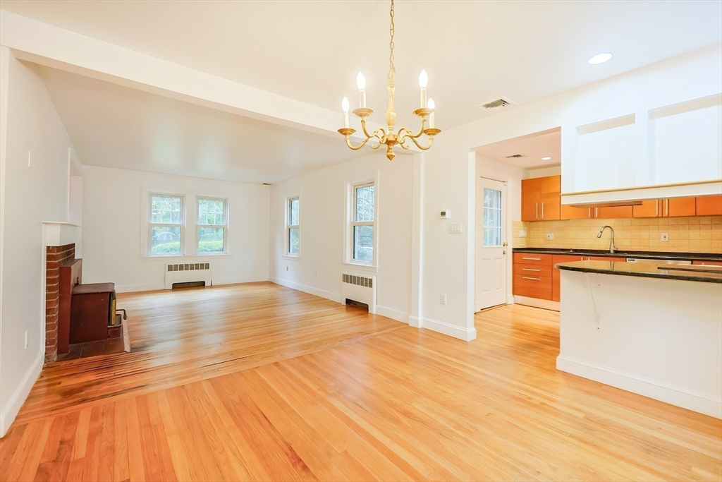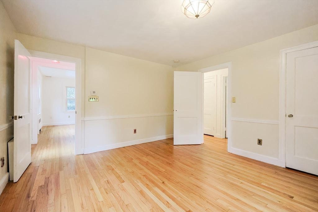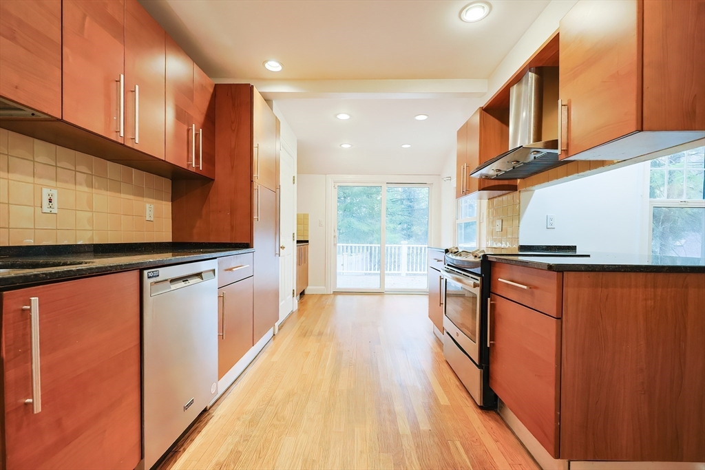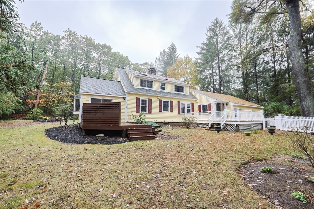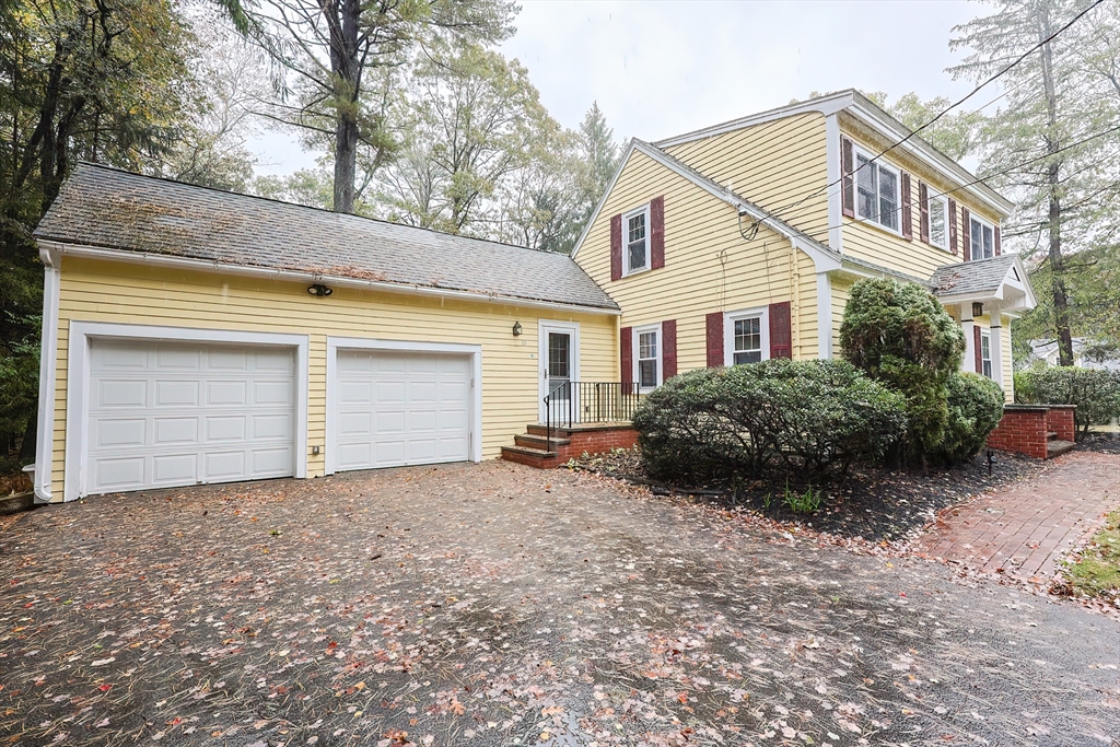 Beautifully maintained Colonial featuring 4 bedrooms, 4 full baths, and a 2-car garage, set in a leafy, sought-after neighborhood with exceptional convenience. Freshly painted interior and newly refinished hardwood floors extend throughout the home. The first floor offers a spacious living room with a wood stove, a dining room, and a large family room with direct access to the deck. The updated kitchen, with granite countertops and contemporary cabinetry, opens to a second deck, perfect for outdoor dining and entertaining. A first-floor bedroom and full bath provide flexibility for guests or multigenerational living. Upstairs, the primary suite includes a private full bath, accompanied by two additional bedrooms and a family bath. The finished lower level features a generous playroom, ample closet space, storage, and utilities. Ideally located near conservation land, the Rail Trail, and major routes, this home blends comfort, style, and convenience.