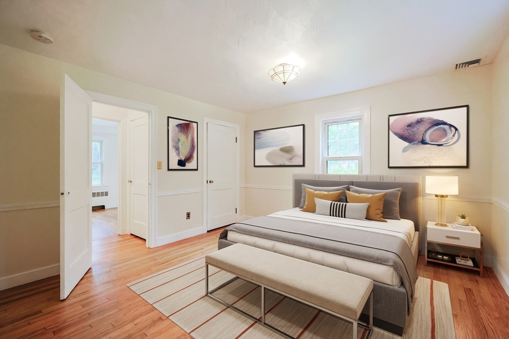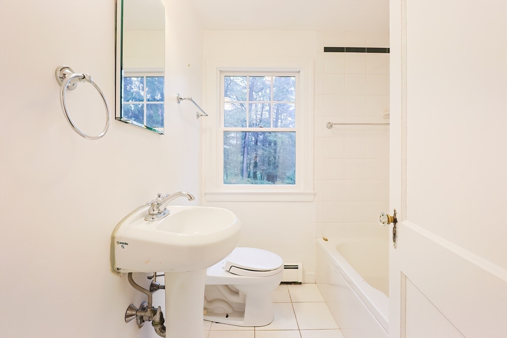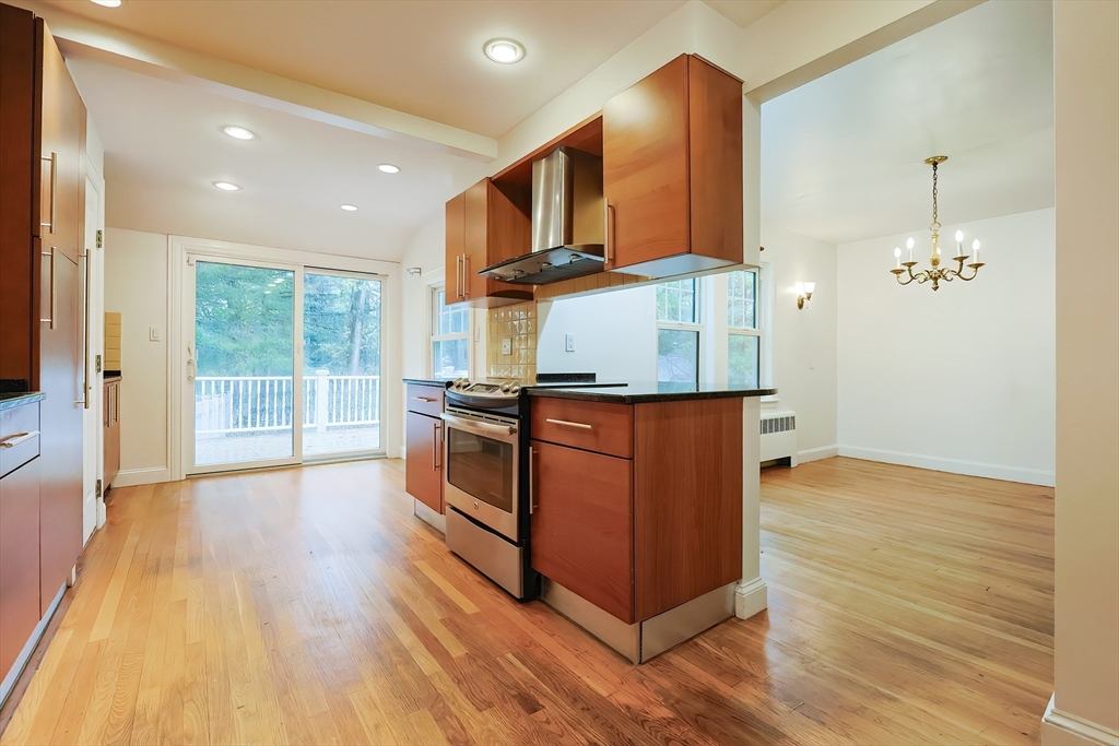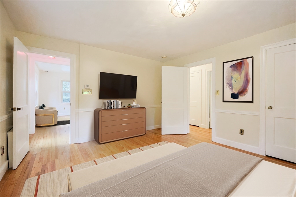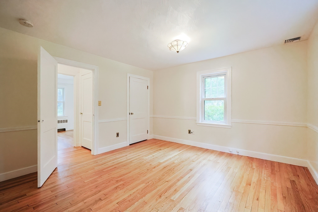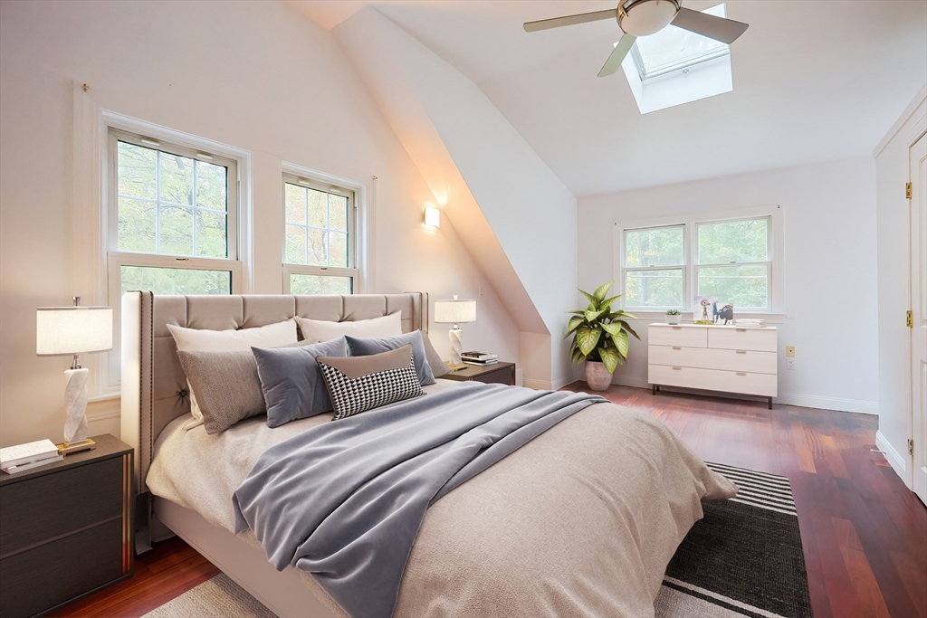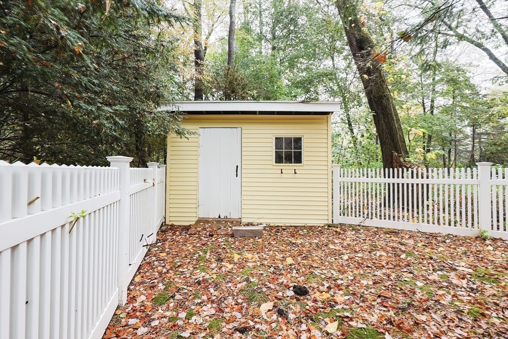 Beautifully maintained Colonial featuring 4 bedrooms, 4 full baths, and a 2-car garage, set in a leafy, sought-after neighborhood with exceptional convenience. Freshly painted interior and newly refinished hardwood floors extend throughout the home. The first floor offers a spacious living room with a wood stove, a dining room, and a large family room with direct access to the deck. The updated kitchen, with granite countertops and contemporary cabinetry, opens to a second deck, perfect for outdoor dining and entertaining. A first-floor bedroom and full bath provide flexibility for guests or multigenerational living. Upstairs, the primary suite includes a private full bath, accompanied by two additional bedrooms and a family bath. The finished lower level features a generous playroom, ample closet space, storage, and utilities. Ideally located near conservation land, the Rail Trail, and major routes, this home blends comfort, style, and convenience.
